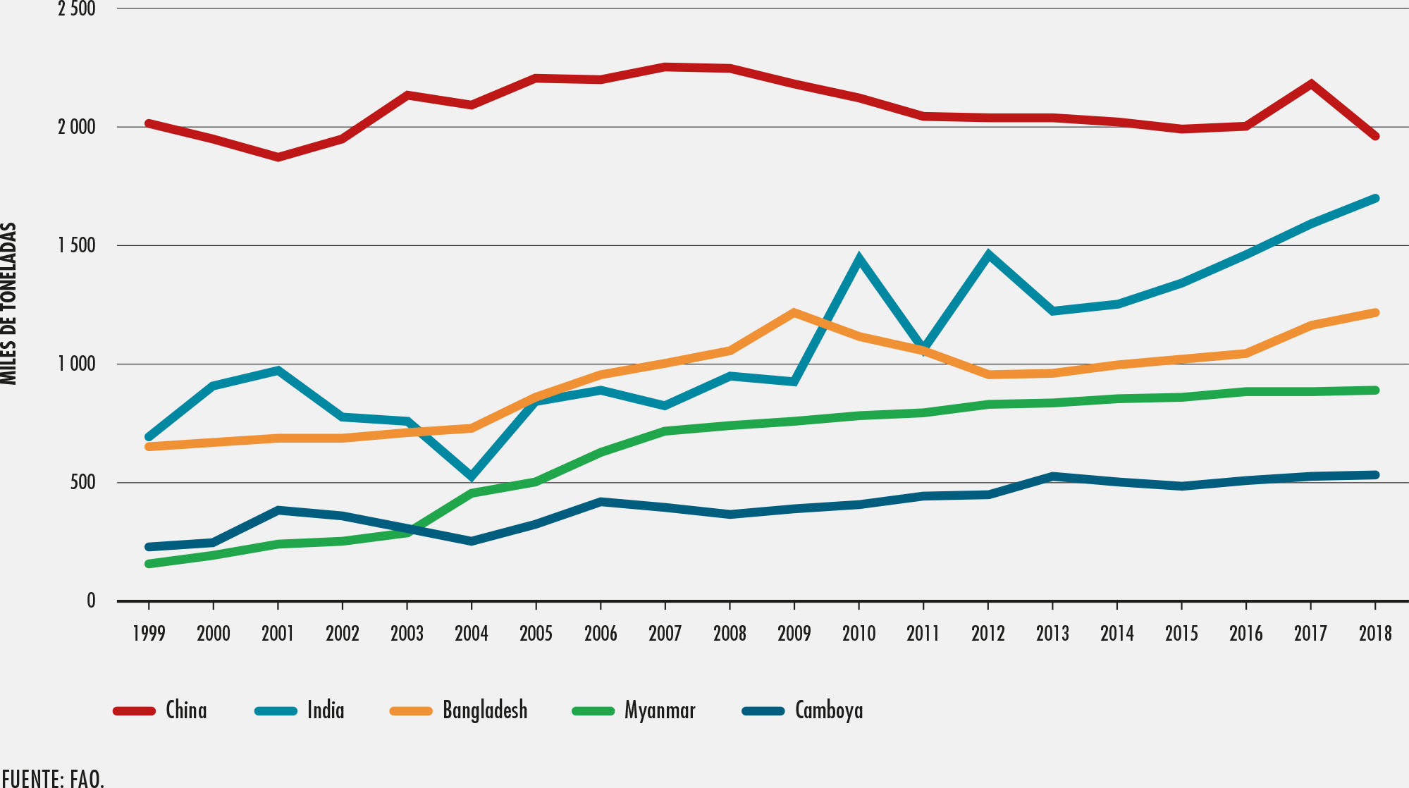 5. Producción de la pesca de captura en aguas continentales: principales países productores