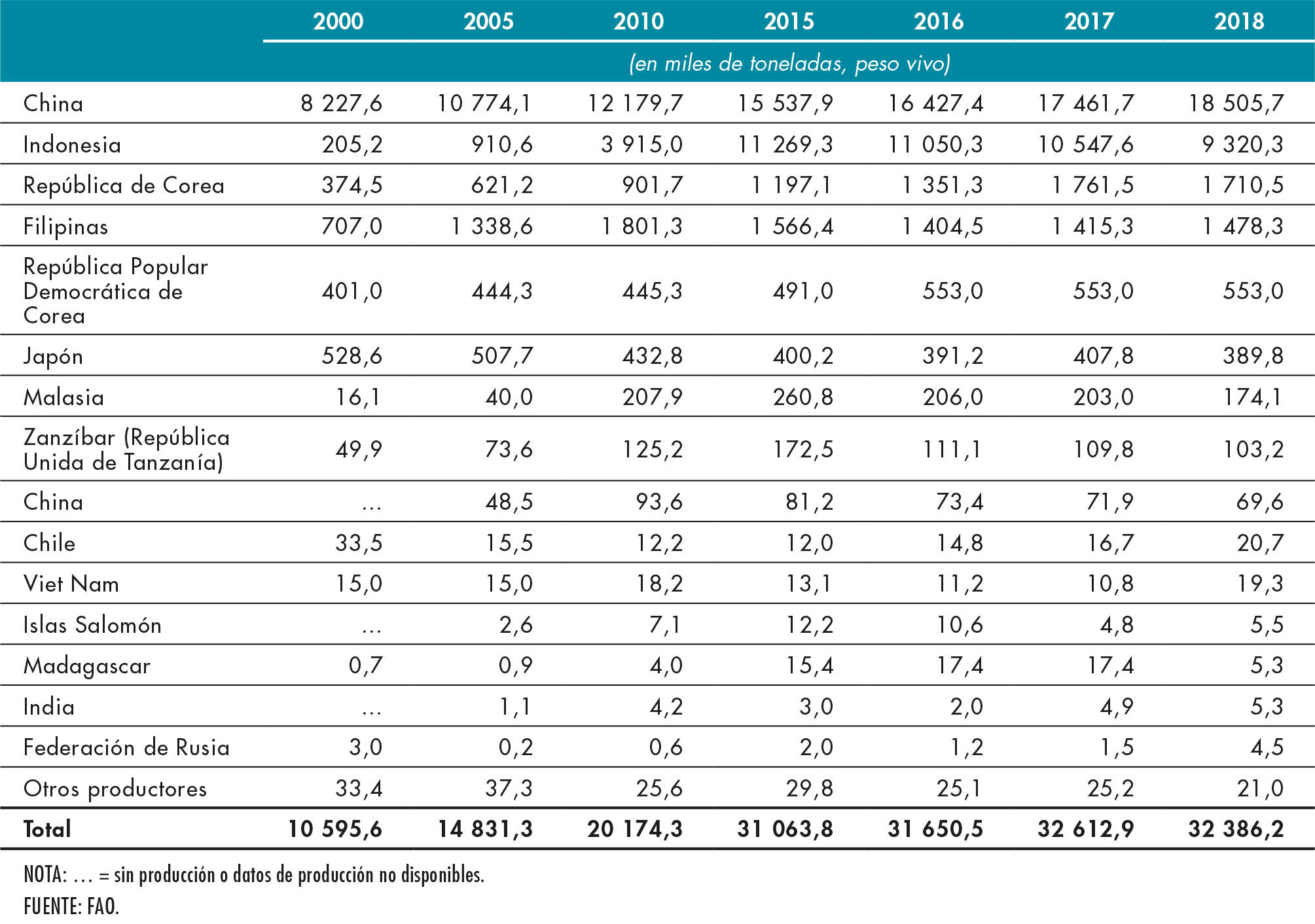 1. Revisión de las estadísticas de la FAO sobre la producción de la pesca y la acuicultura