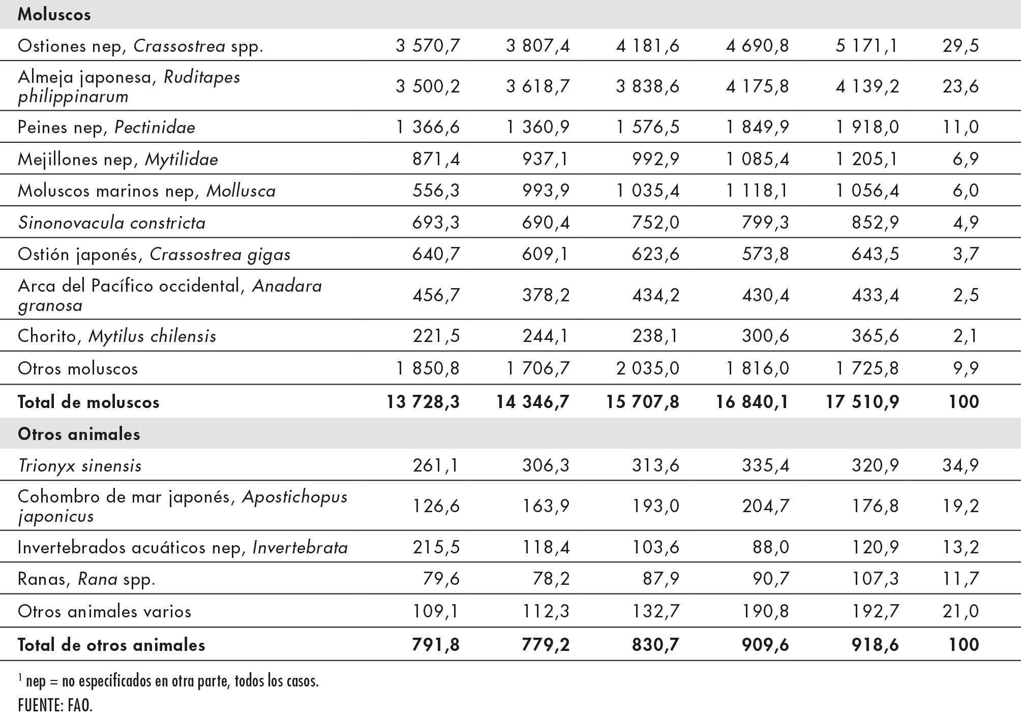 10. Contribución de la acuicultura a la producción total de animales acuáticos