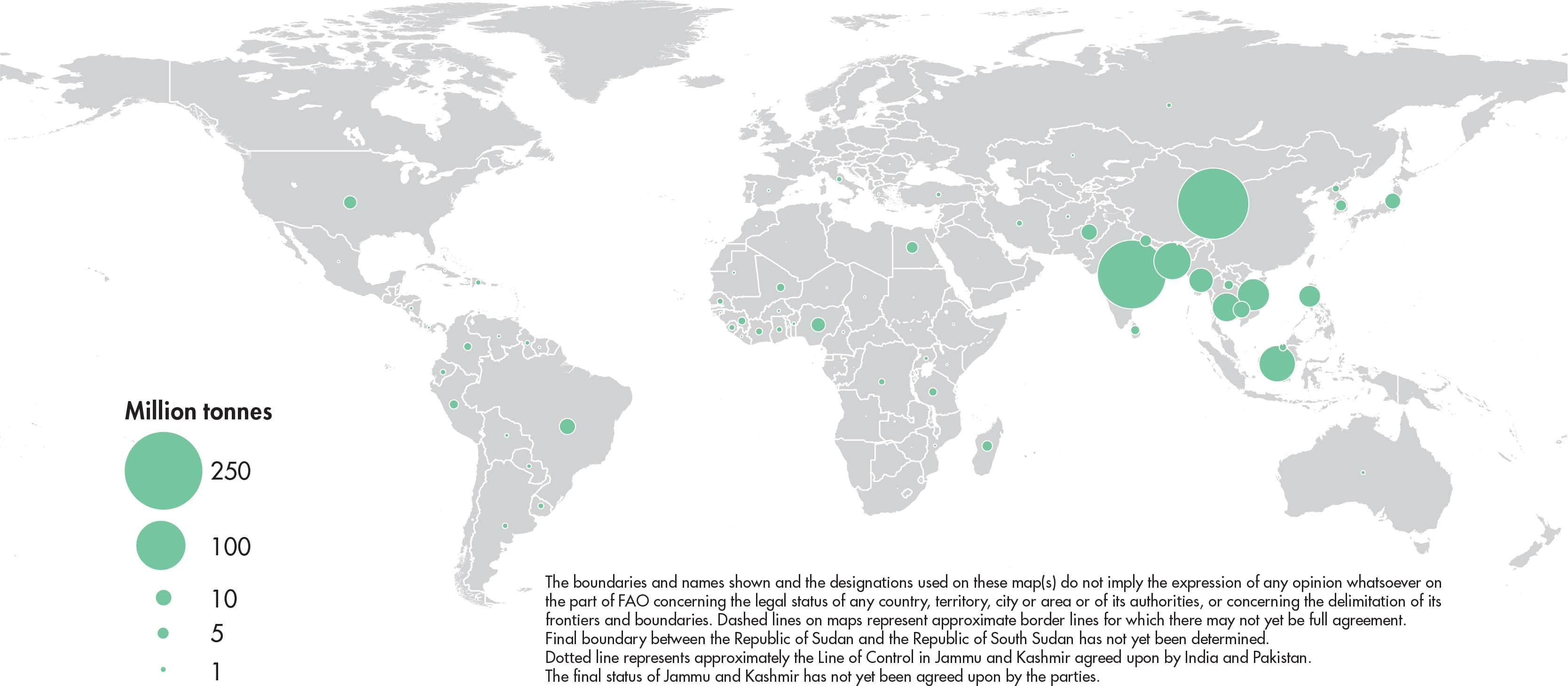 The designations employed and the presentation of material in this information product do not imply the expression of any opinion whatsoever on the part of the Food and Agriculture Organization of the United Nations (FAO) concerning the legal or development status of any country, territory, city or area or of its authorities, or concerning the delimitation of its frontiers or boundaries. Dashed lines on maps represent approximate border lines for which there may not yet be full agreement. The mention of specific companies or products of manufacturers, whether or not these have been patented, does not imply that these have been endorsed or recommended by FAO in preference to others of a similar nature that are not mentioned.