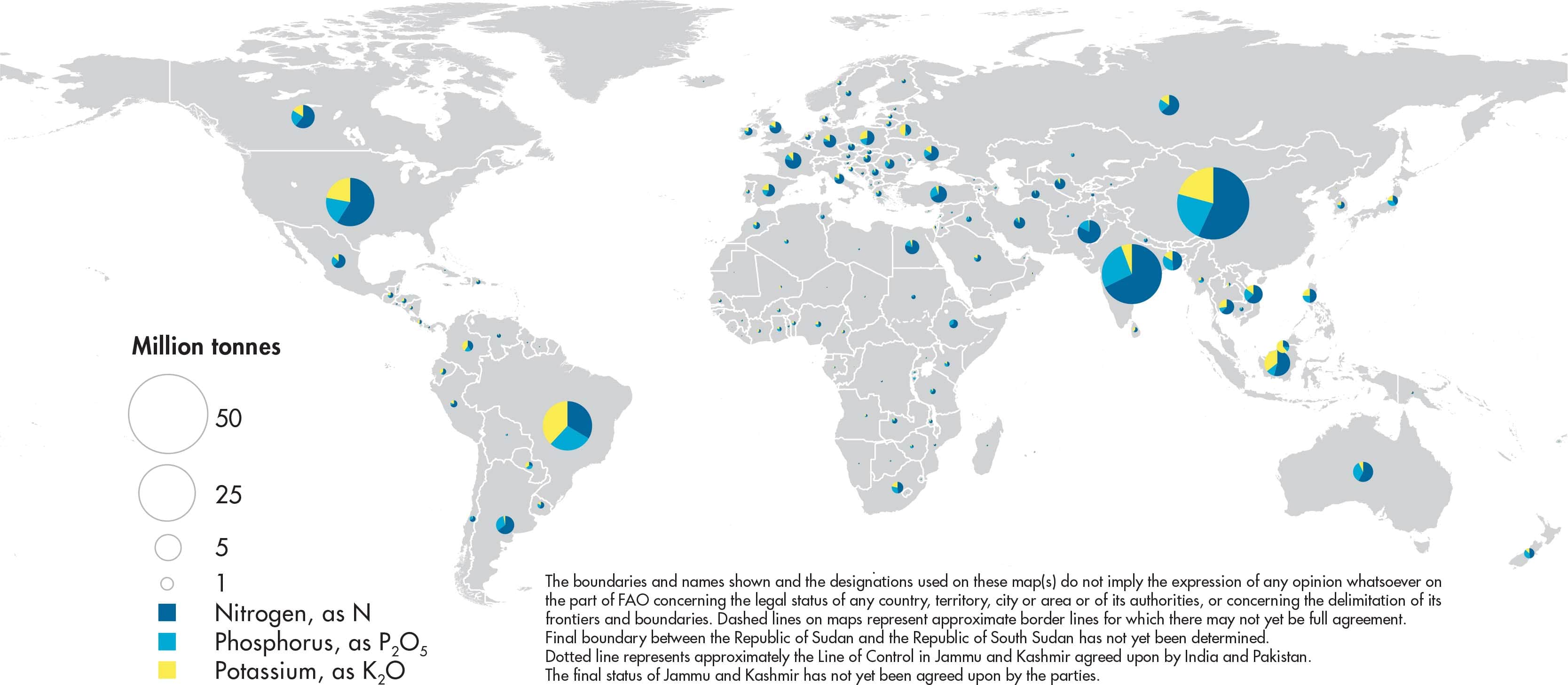 The use of fertilizers refers to agricultural use of inorganic (mineral or chemical) fertilizers for the three main plant nutrients: nitrogen (N), phosphorus (expressed as P2O5) and potassium (expressed as K2O). It includes both straight fertilizers (those containing only one of the three primary plant nutrients) and compound fertilizers (those containing more than one of the three primary plant nutrients; they may be NP, NK, PK or NPK). Agricultural use refers to the use for crops, livestock, forestry, fisheries and aquaculture, excluding use for animal feed.