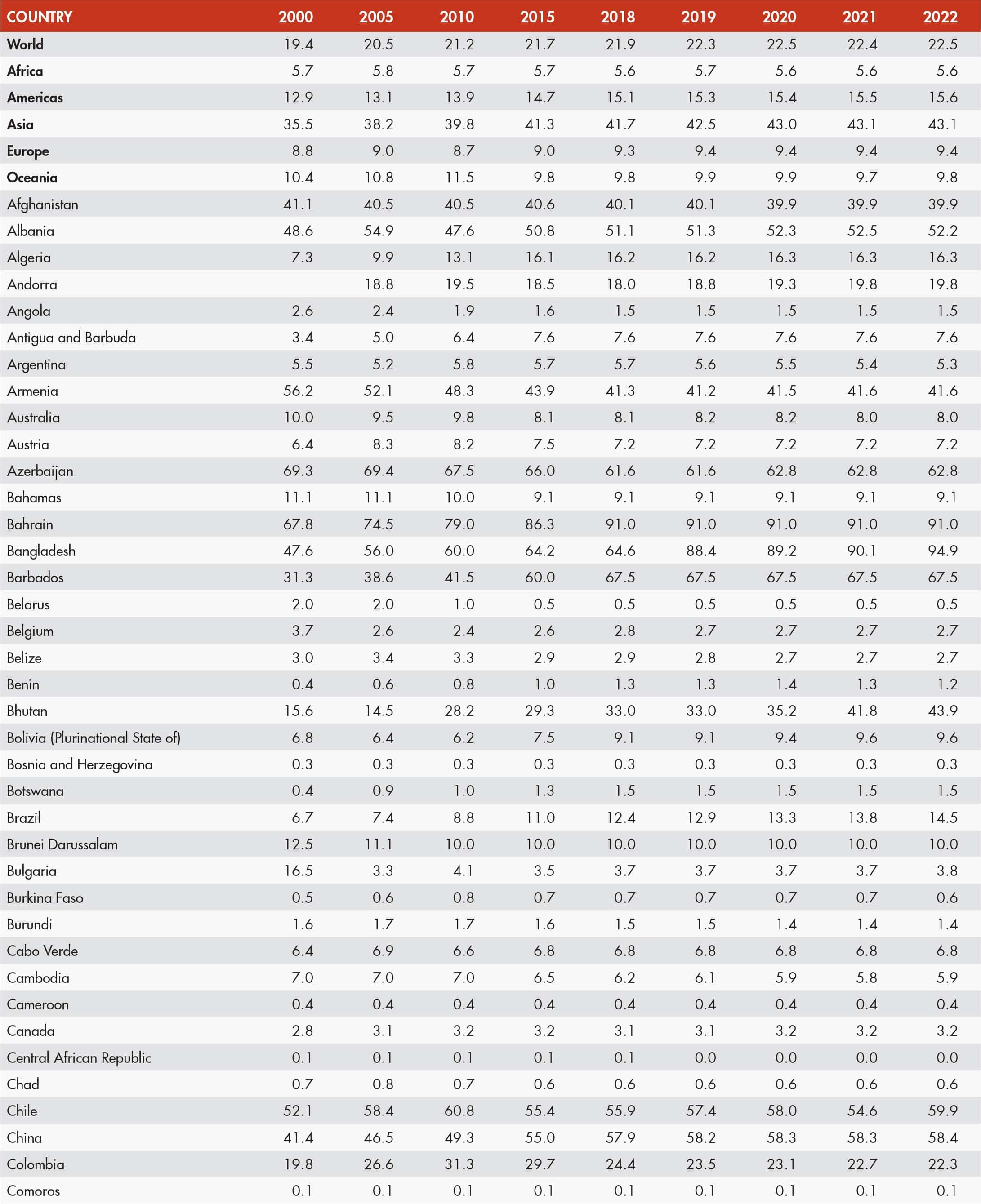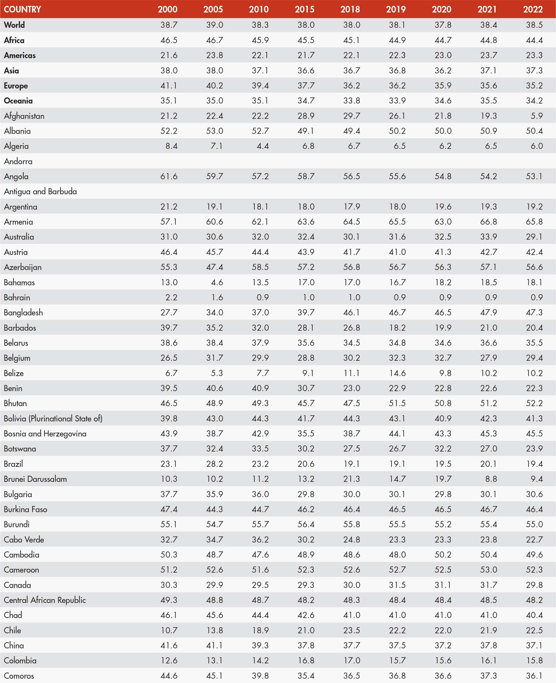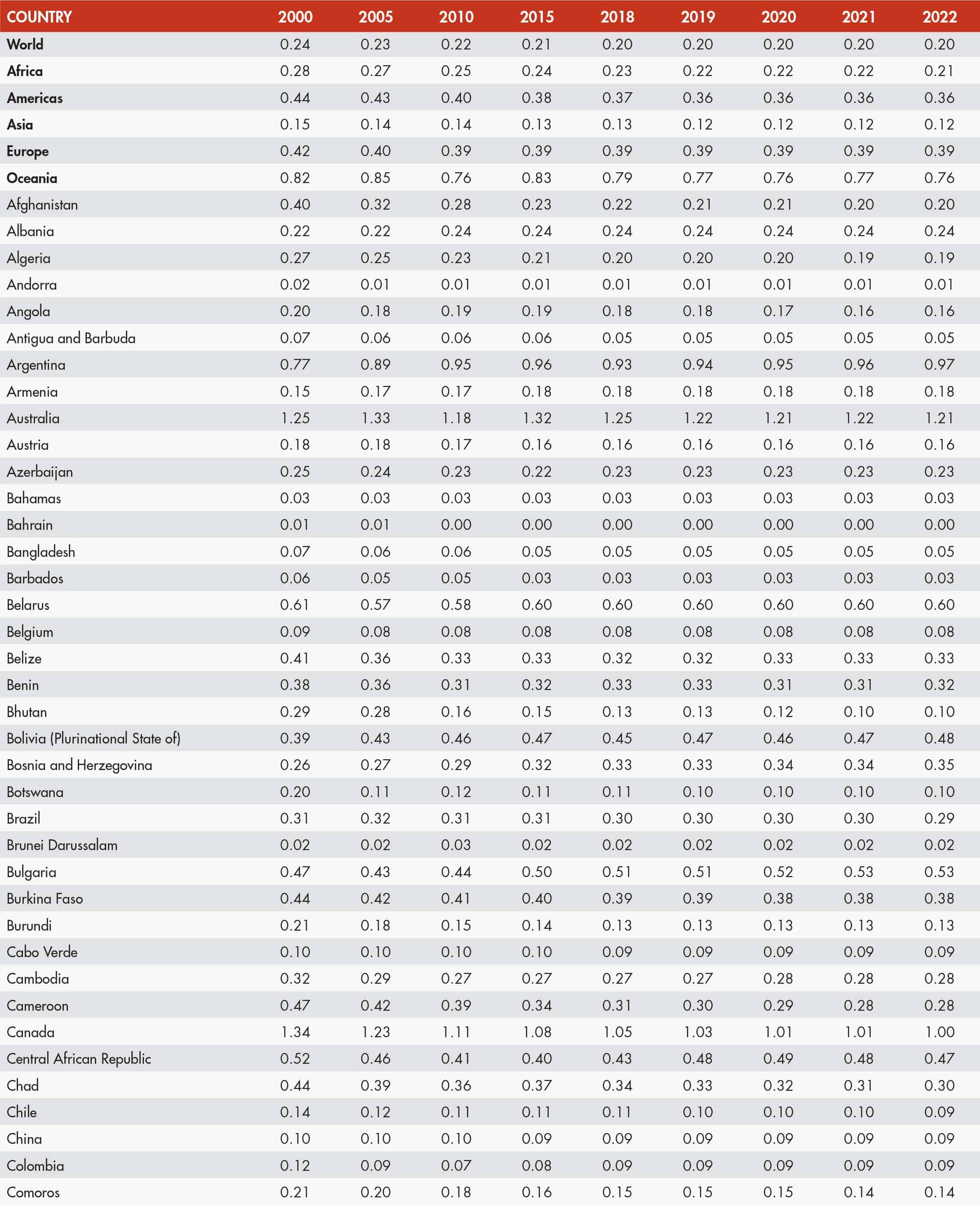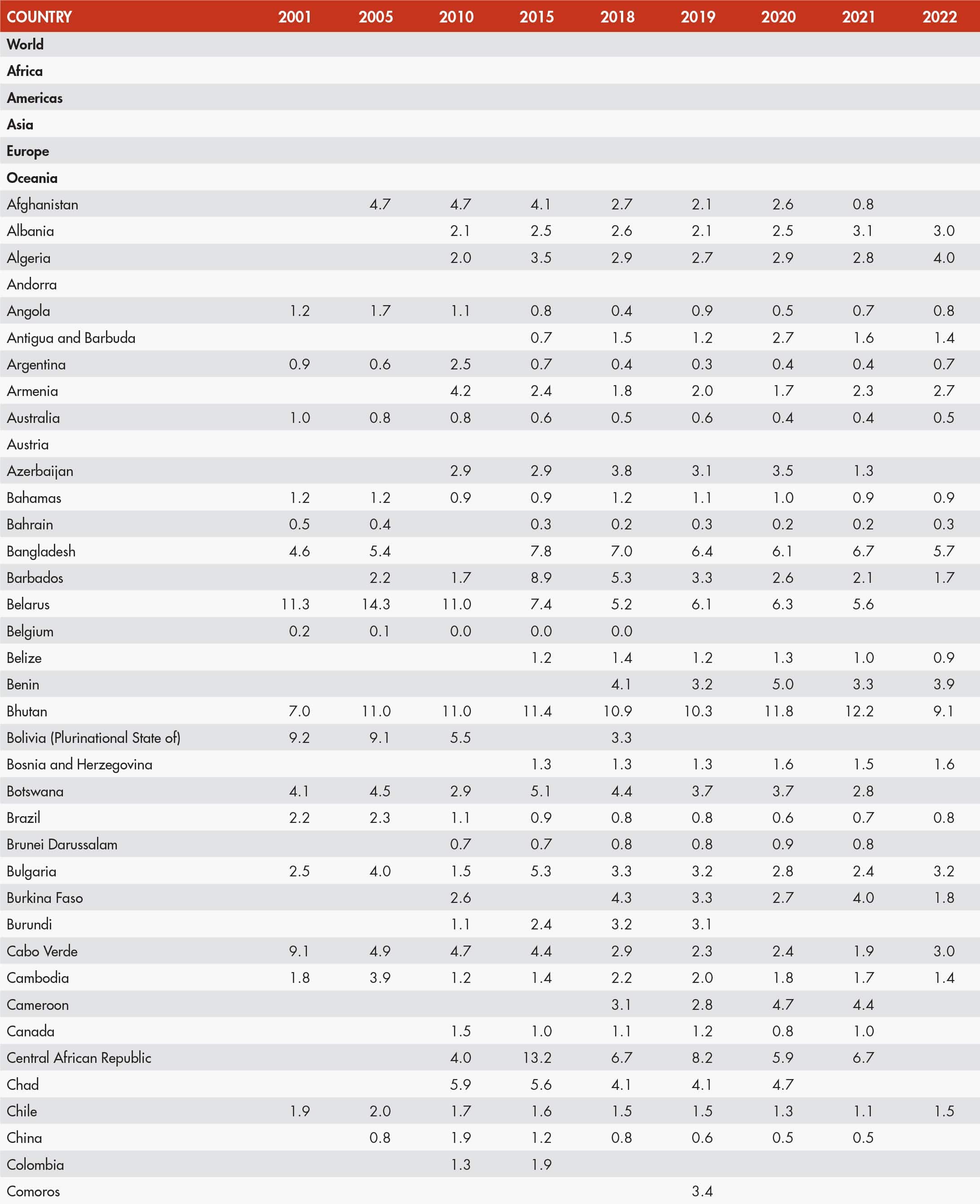 • When country data have not been reported for the reference year, an asterisk (*) on the year label indicates that the value for the most recent year available is shown. For example, 2020–2022* means that the most recent value for the period from 2020 to 2022 is shown.