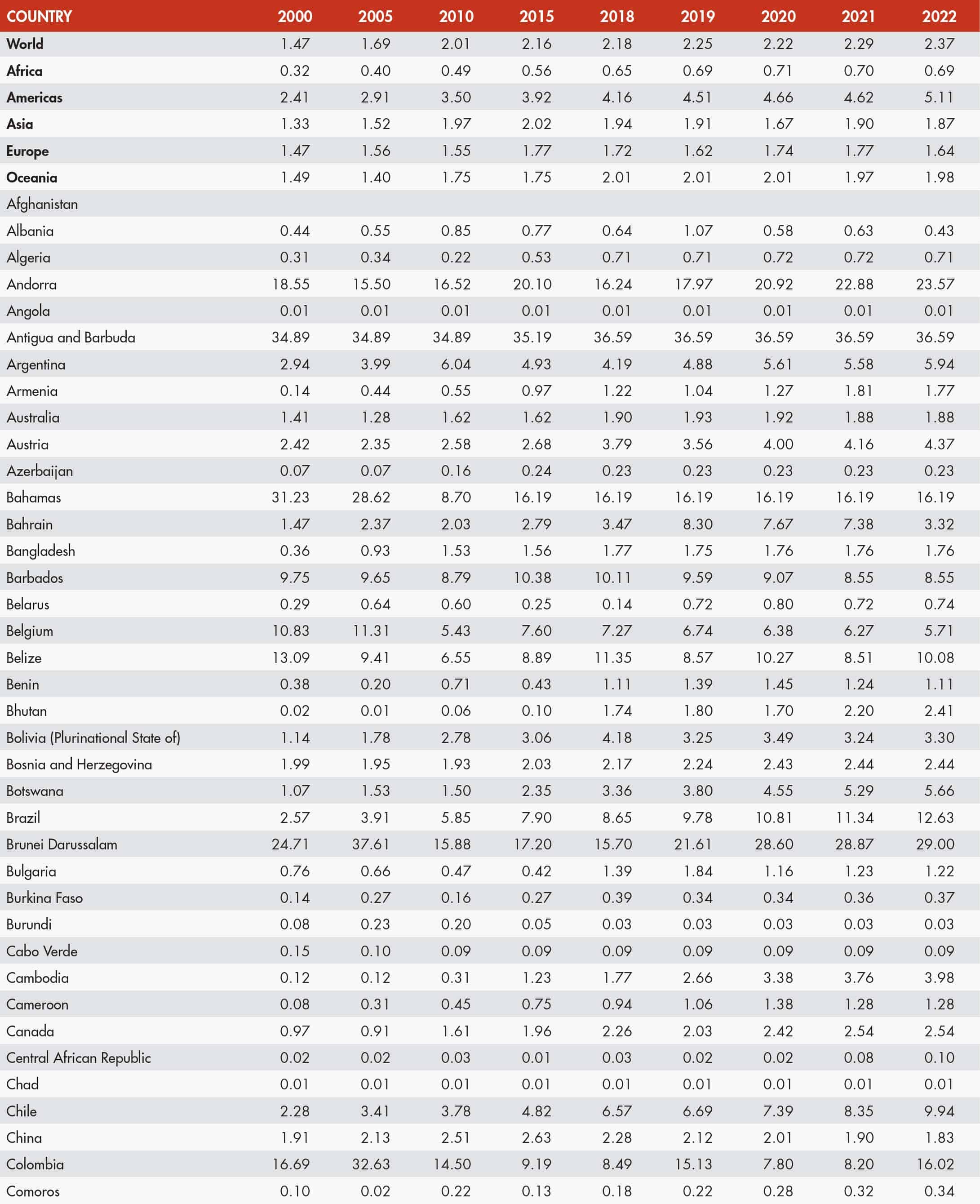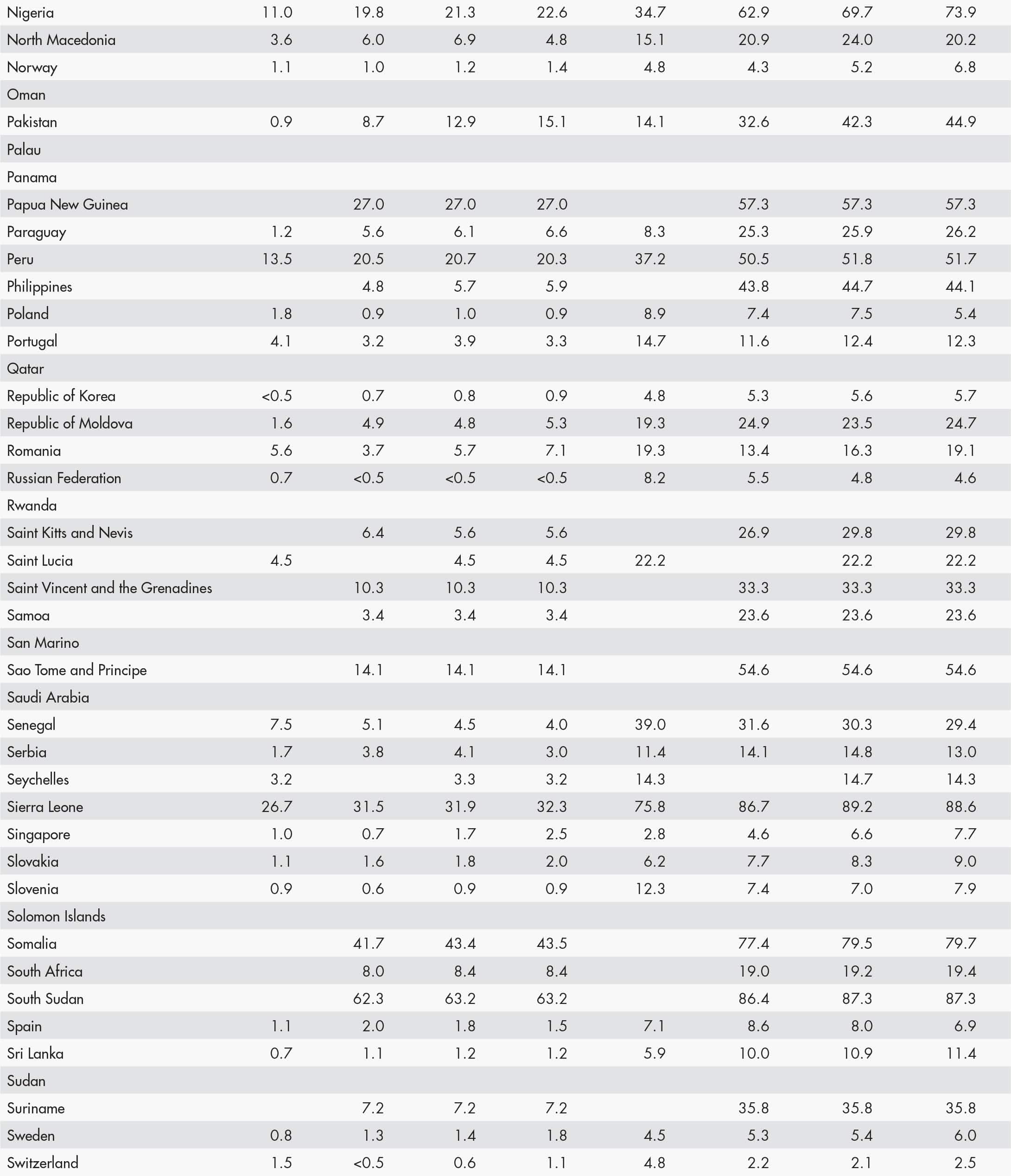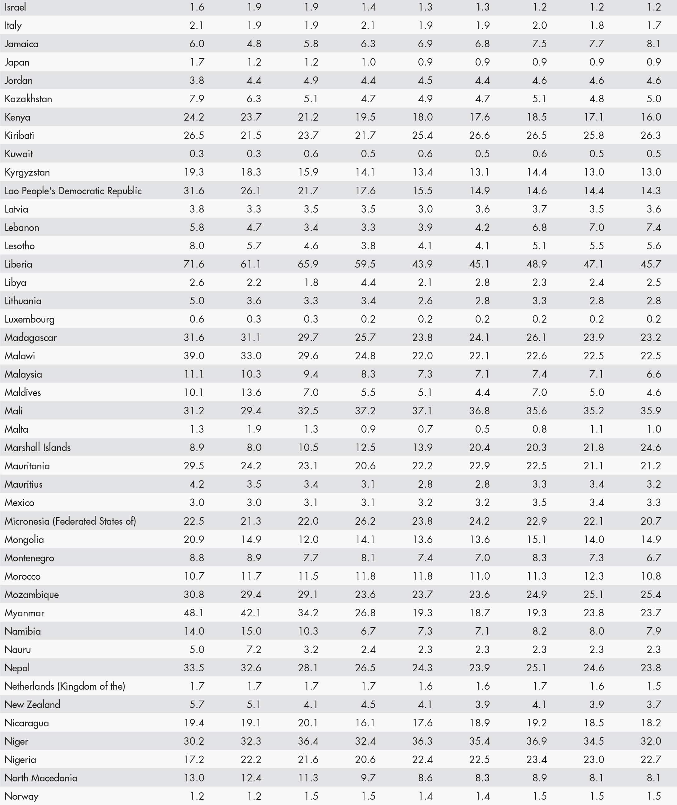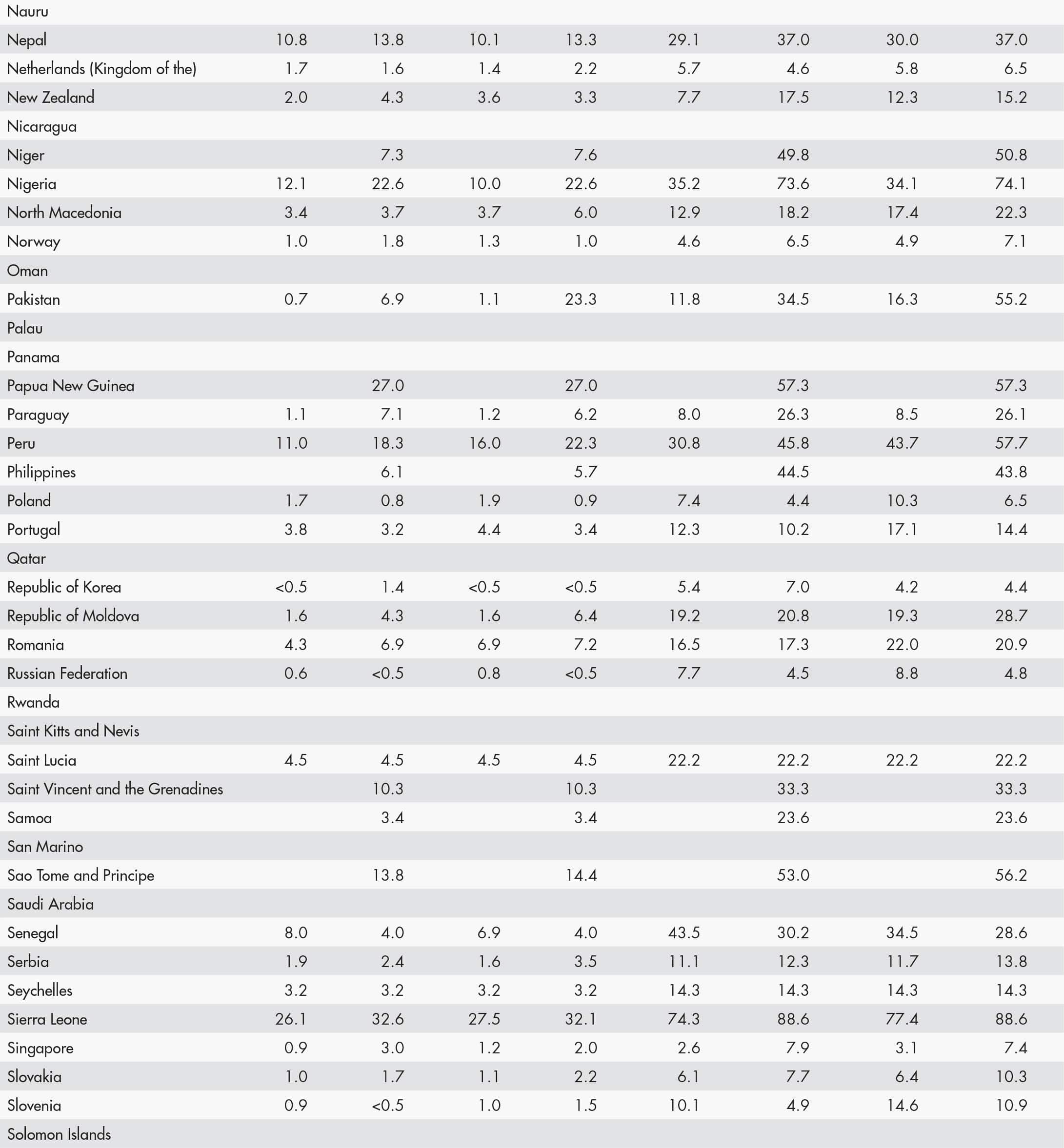 • When country data have not been reported for the reference year, an asterisk (*) on the year label indicates that the value for the most recent year available is shown. For example, 2020–2022* means that the most recent value for the period from 2020 to 2022 is shown.