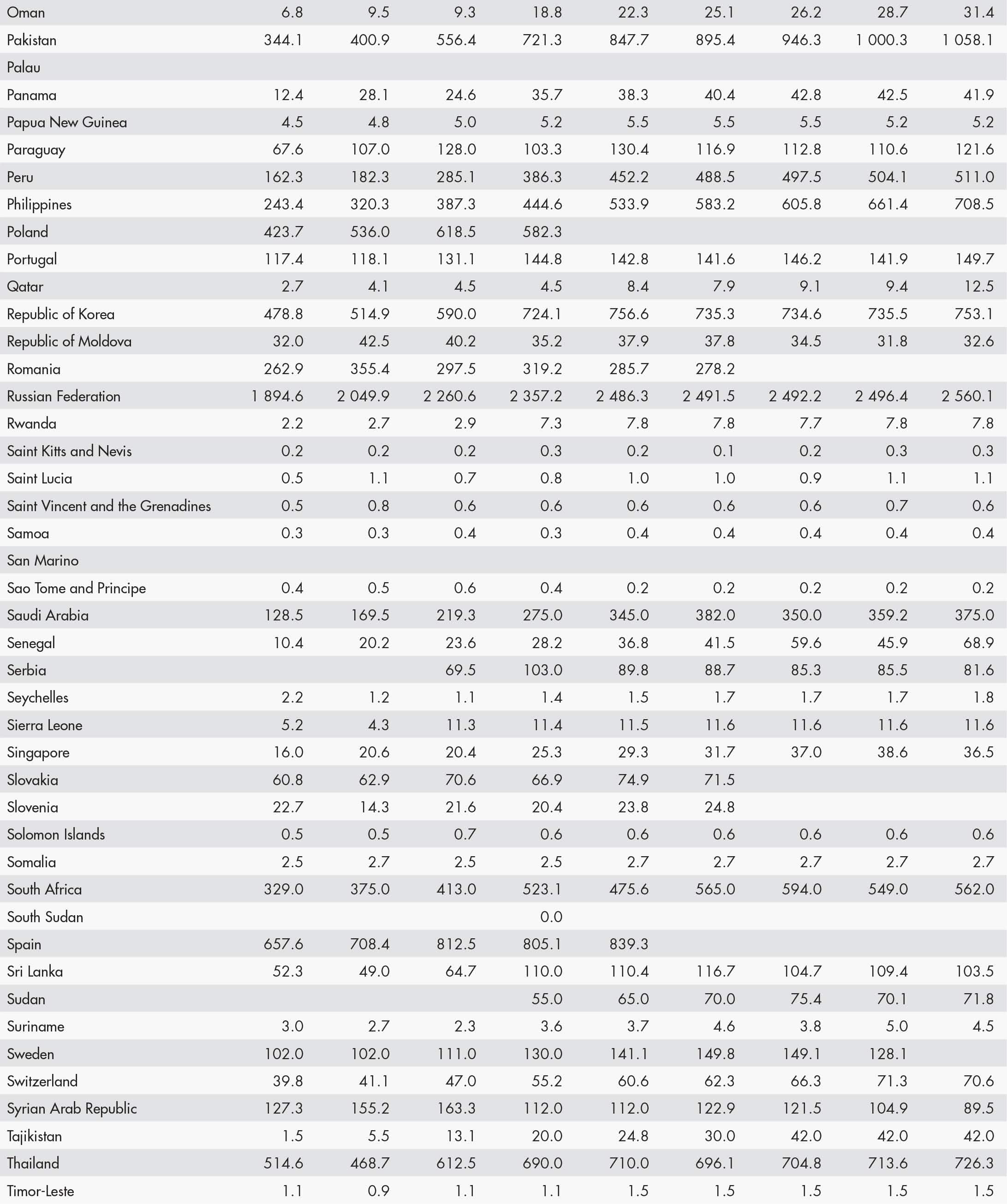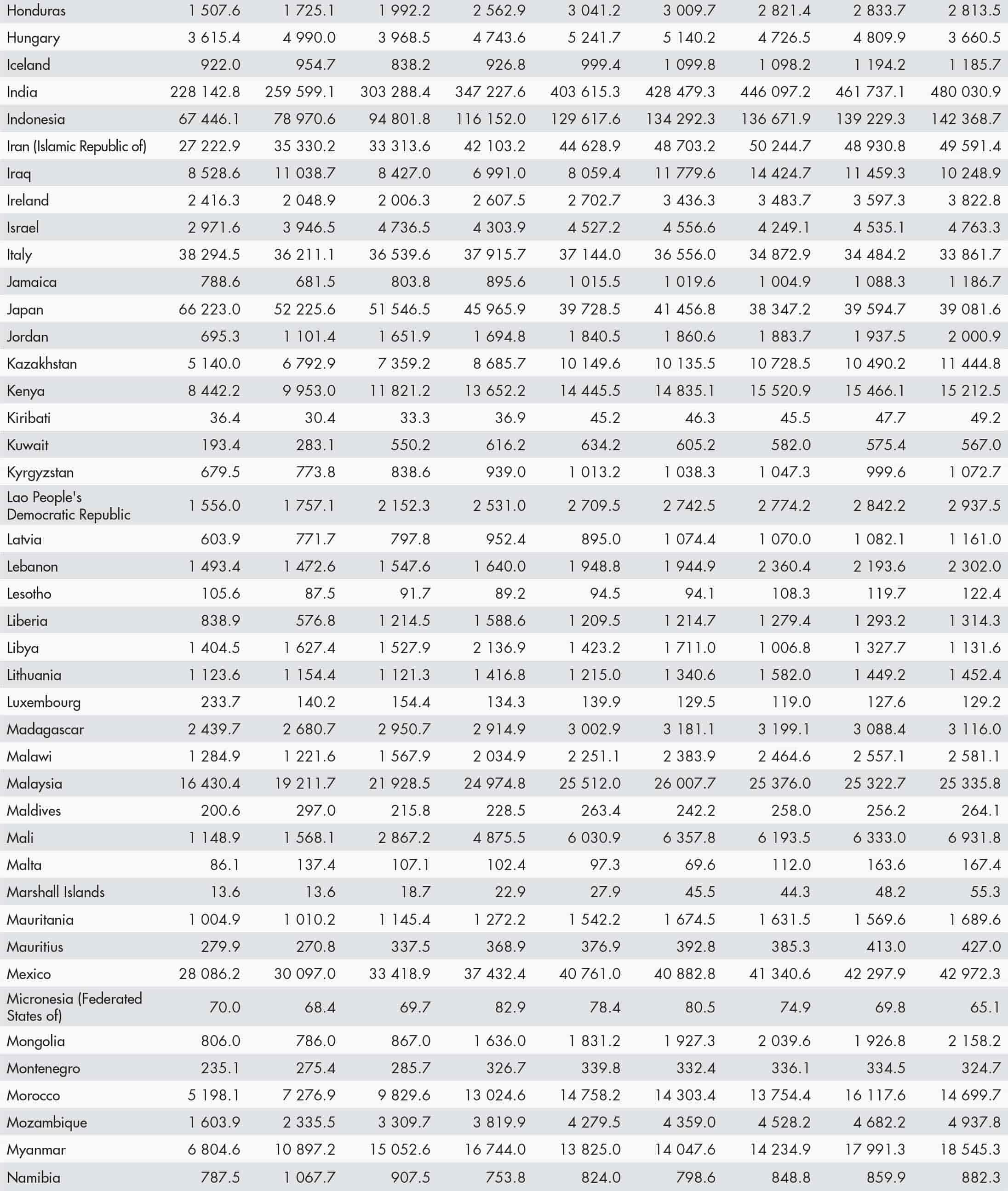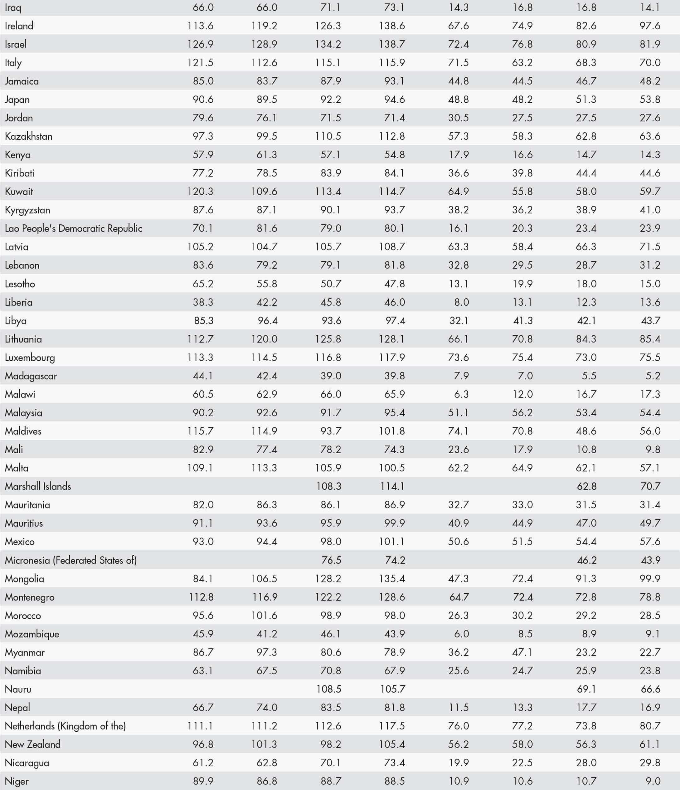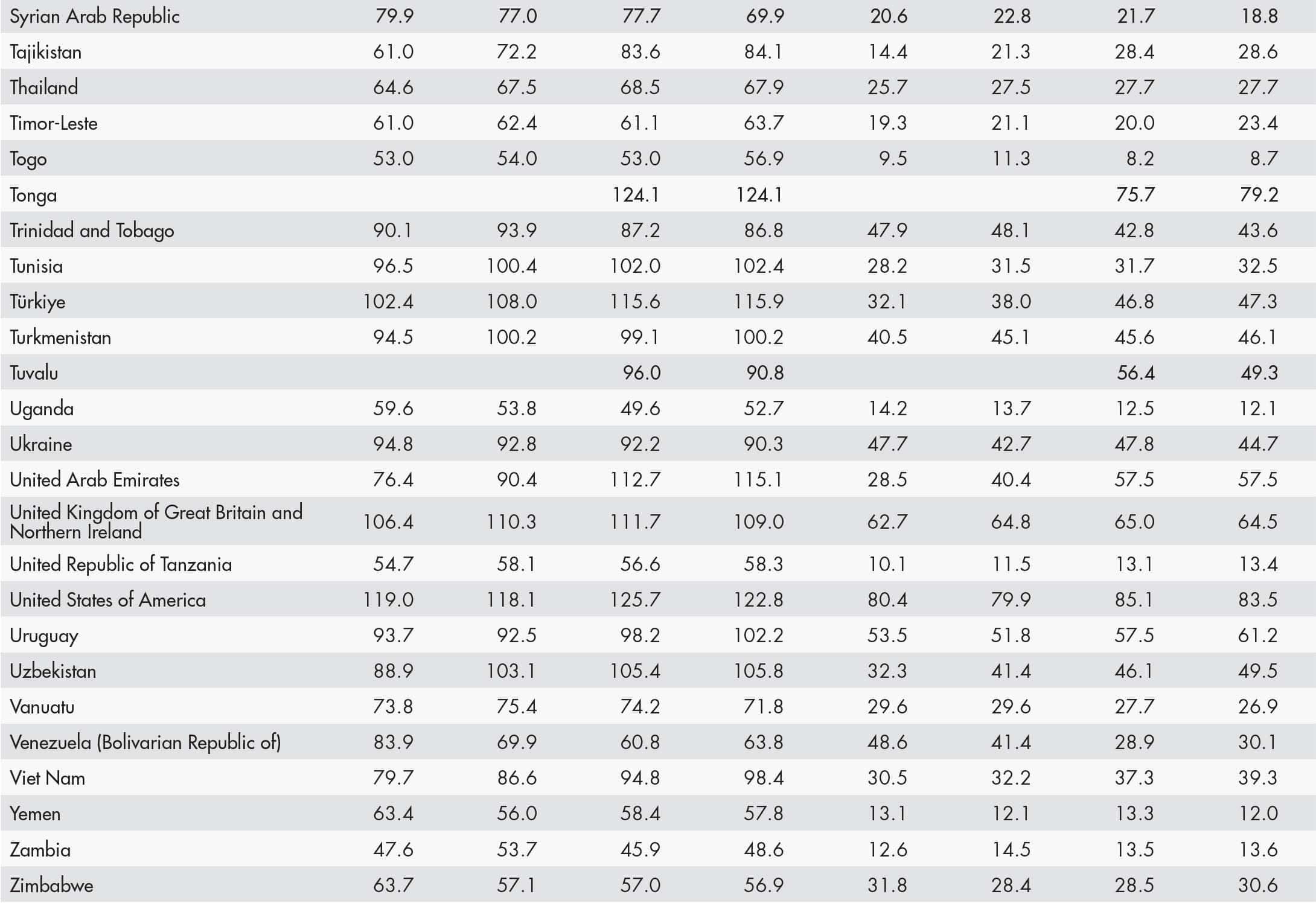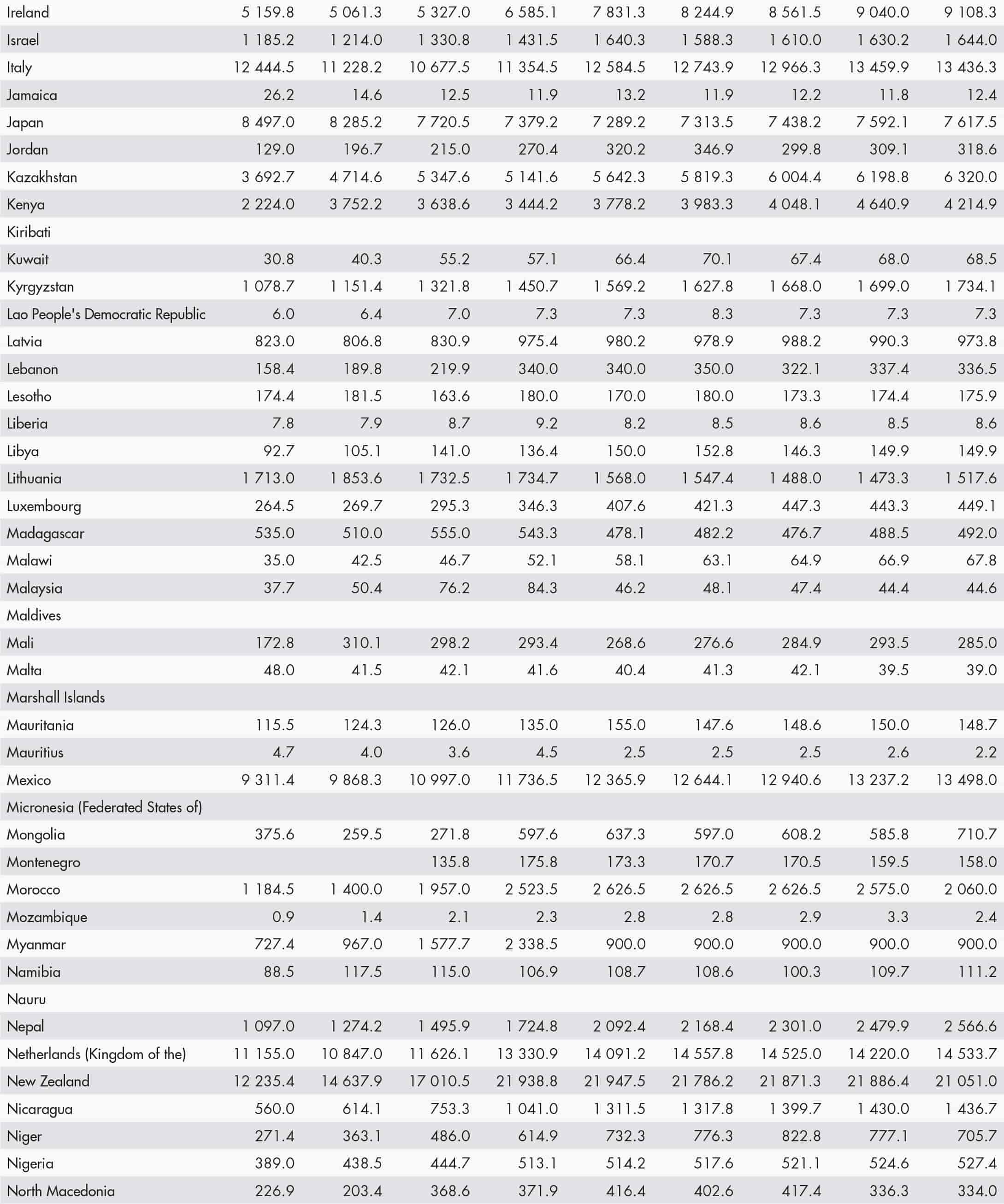 • a blank means that data are not available or that aggregates cannot be calculated because of missing data for the years shown;