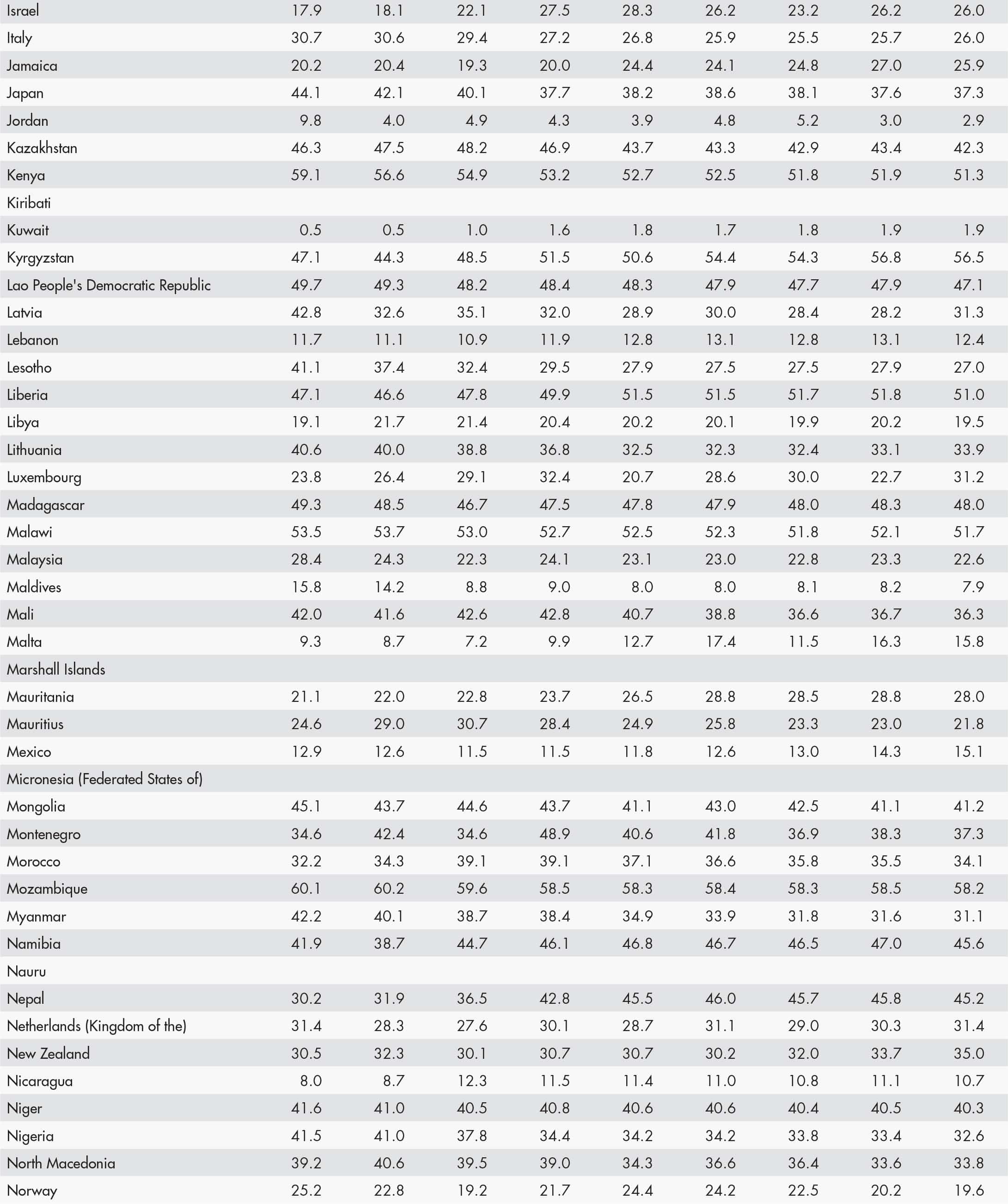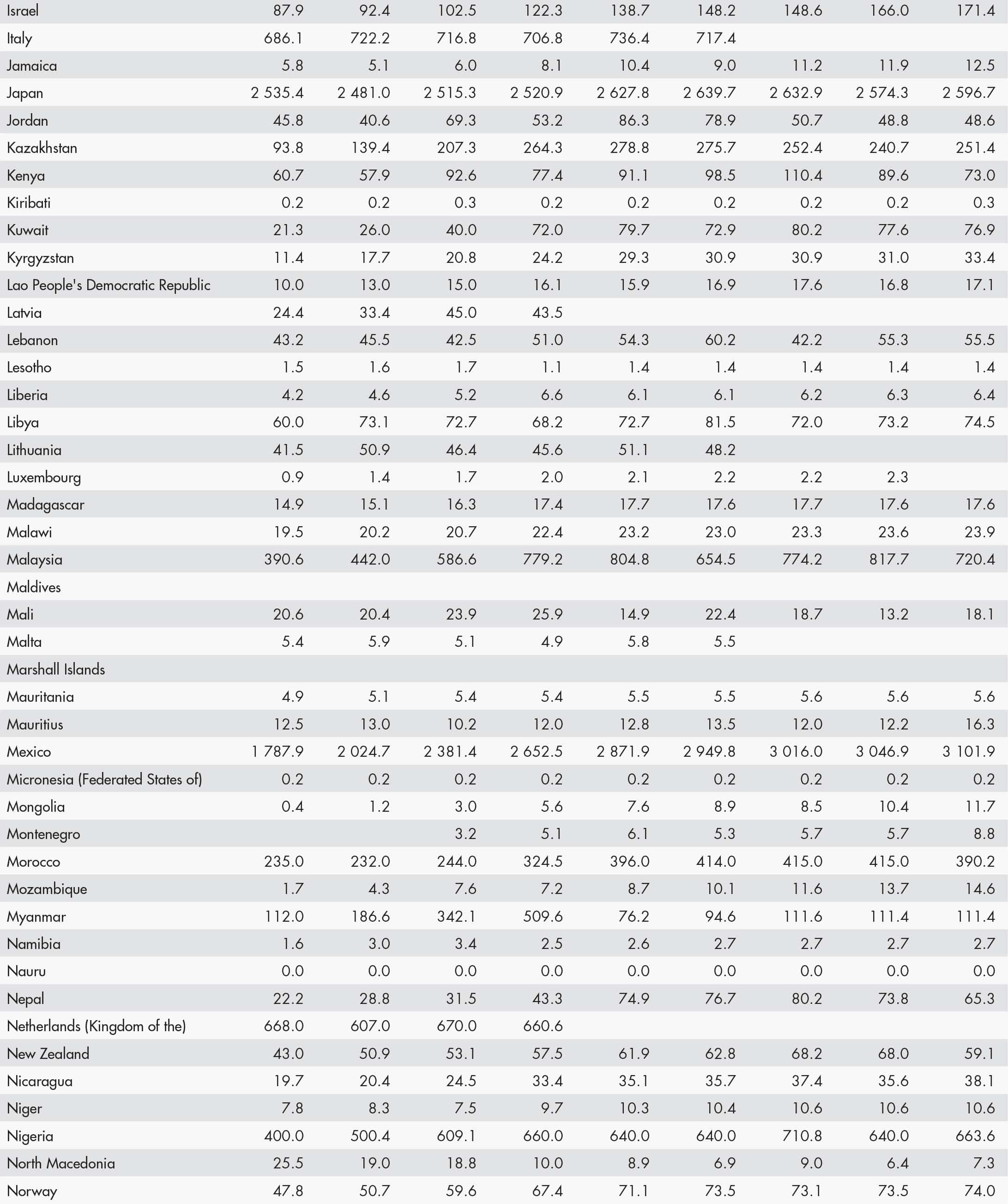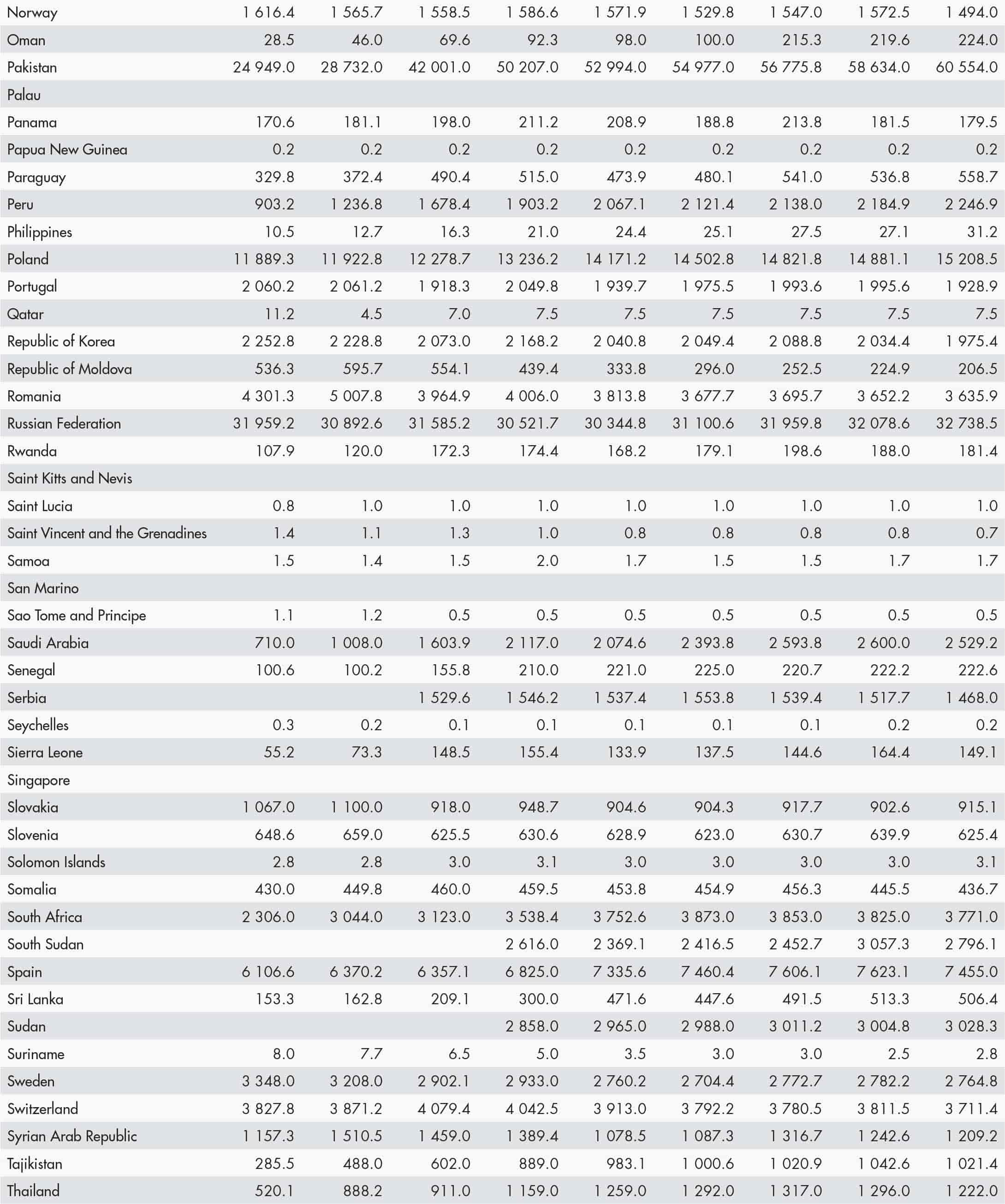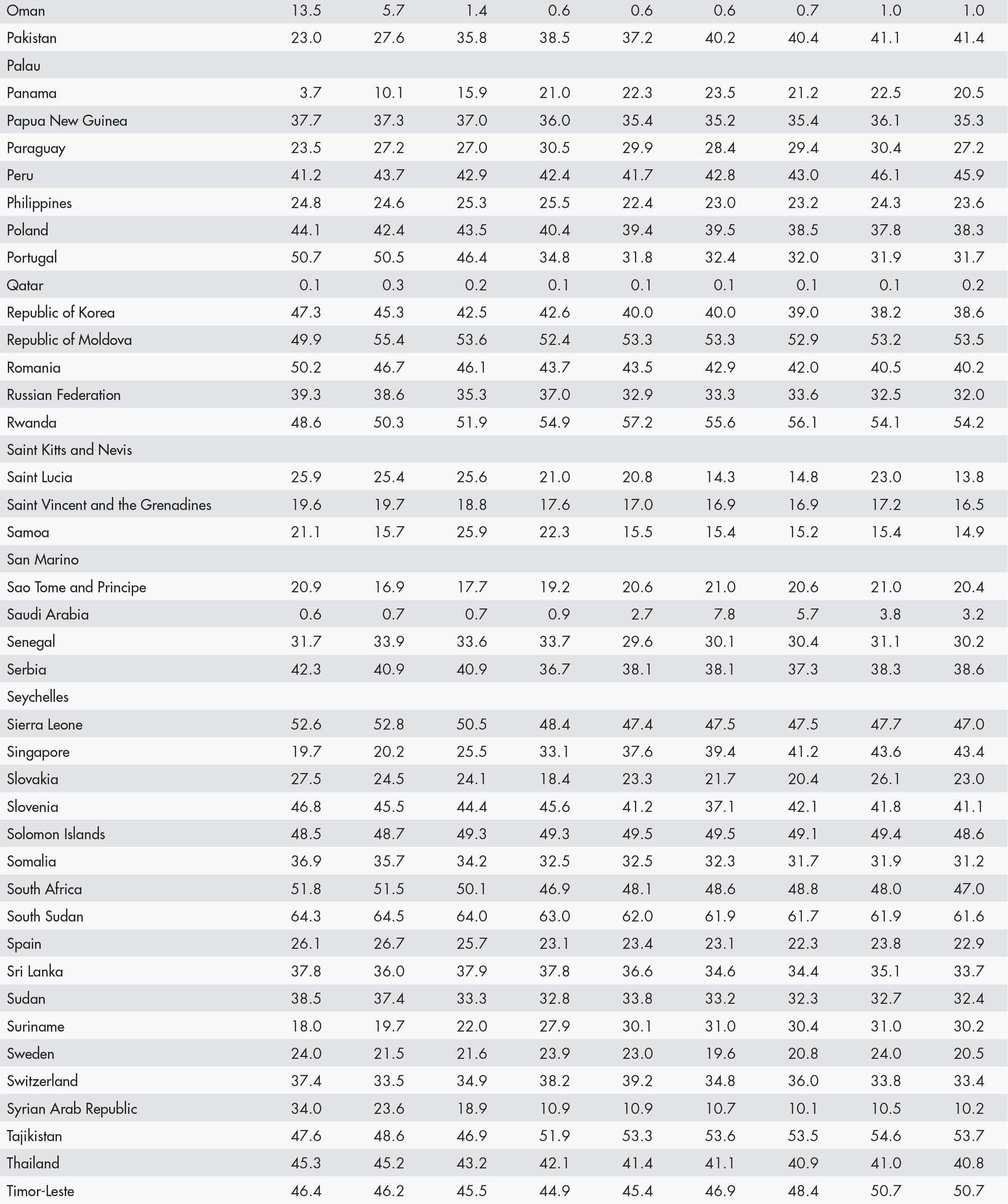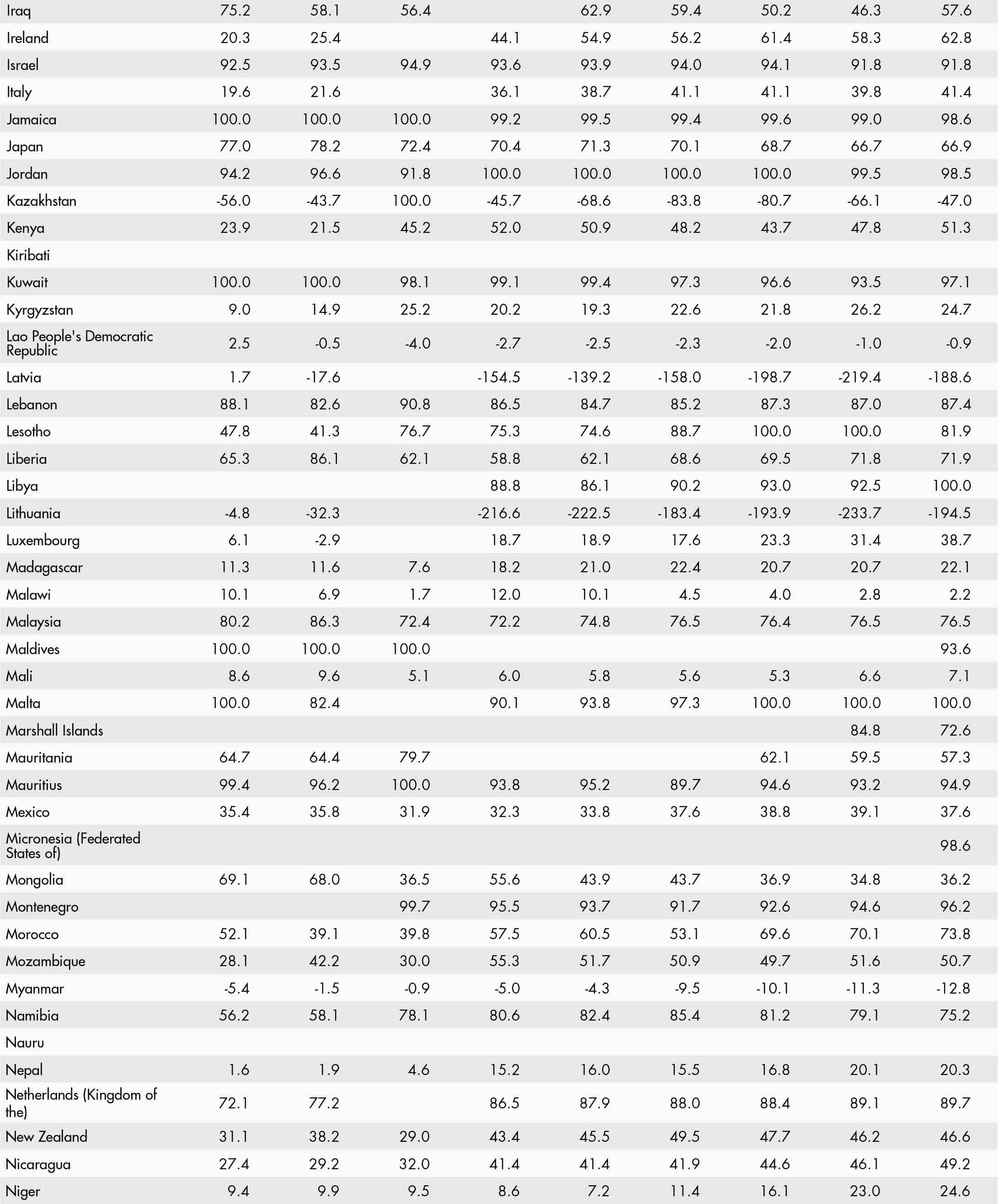 • a blank means that data are not available or that aggregates cannot be calculated because of missing data for the years shown;