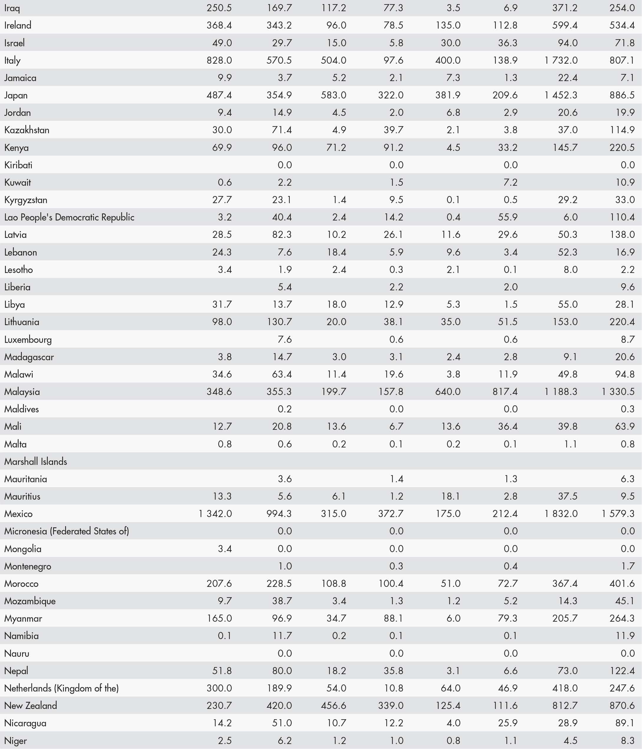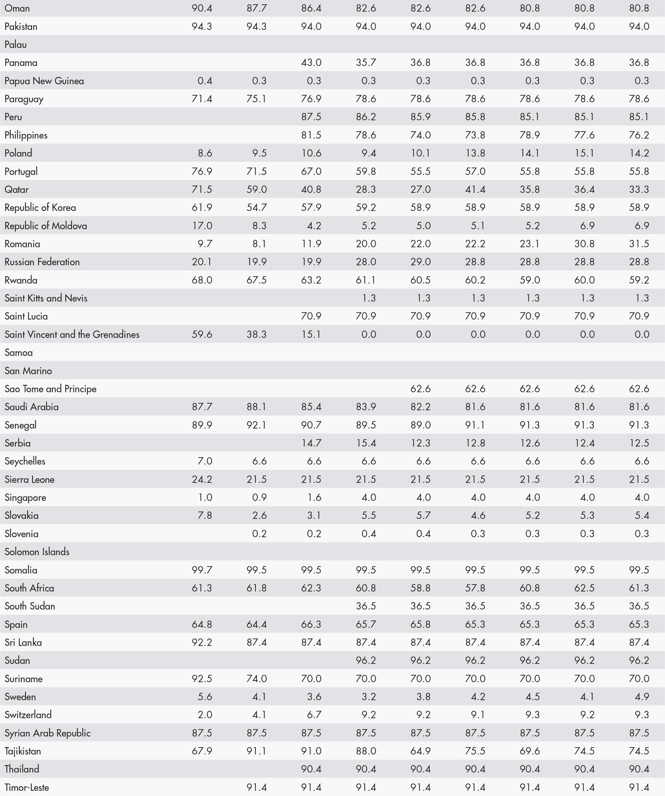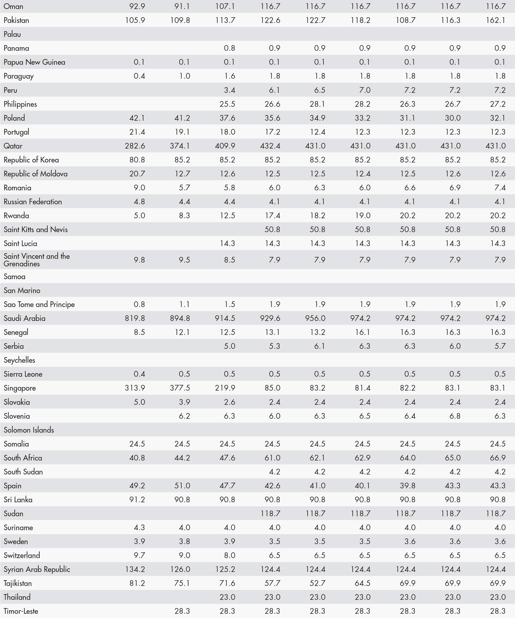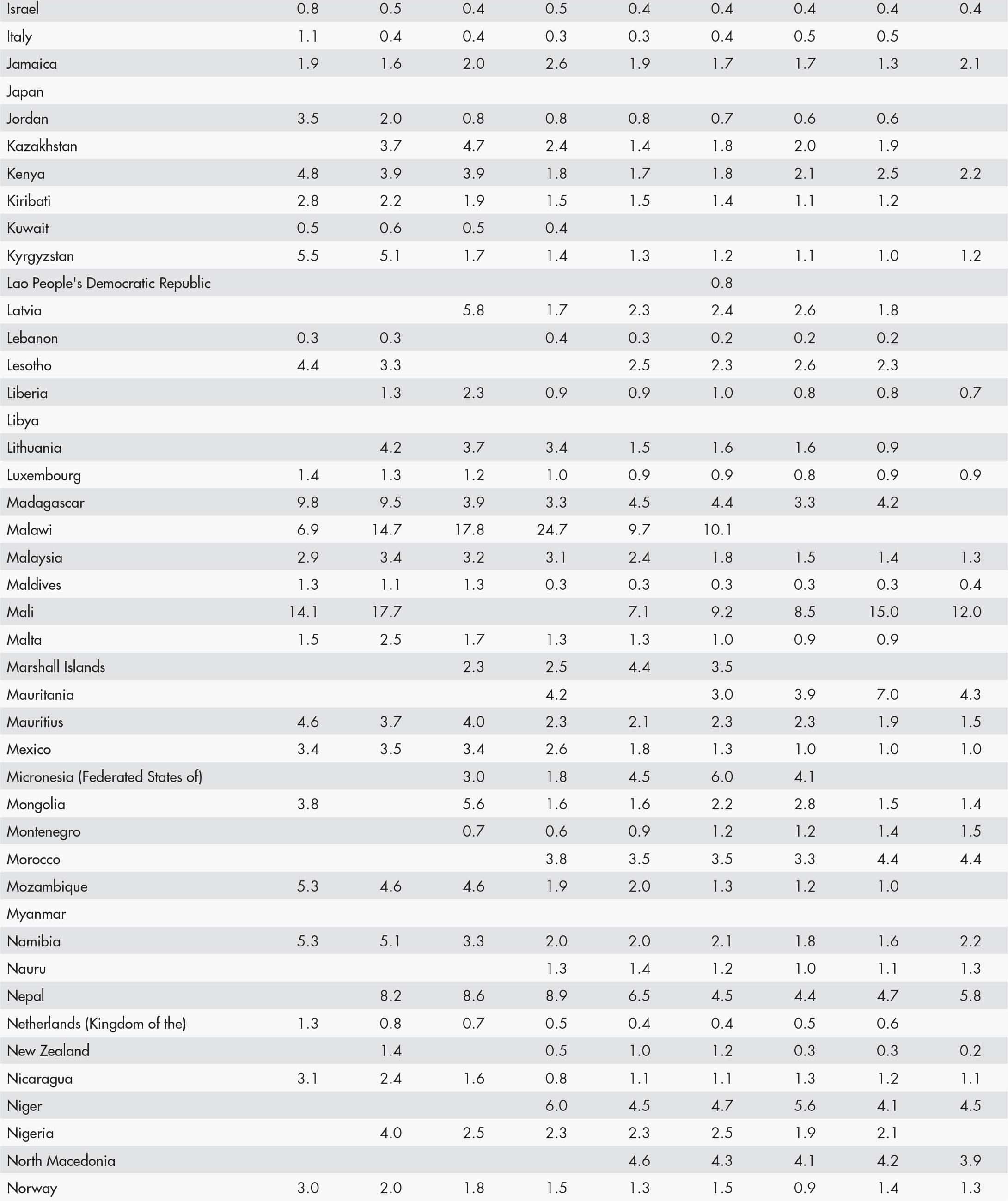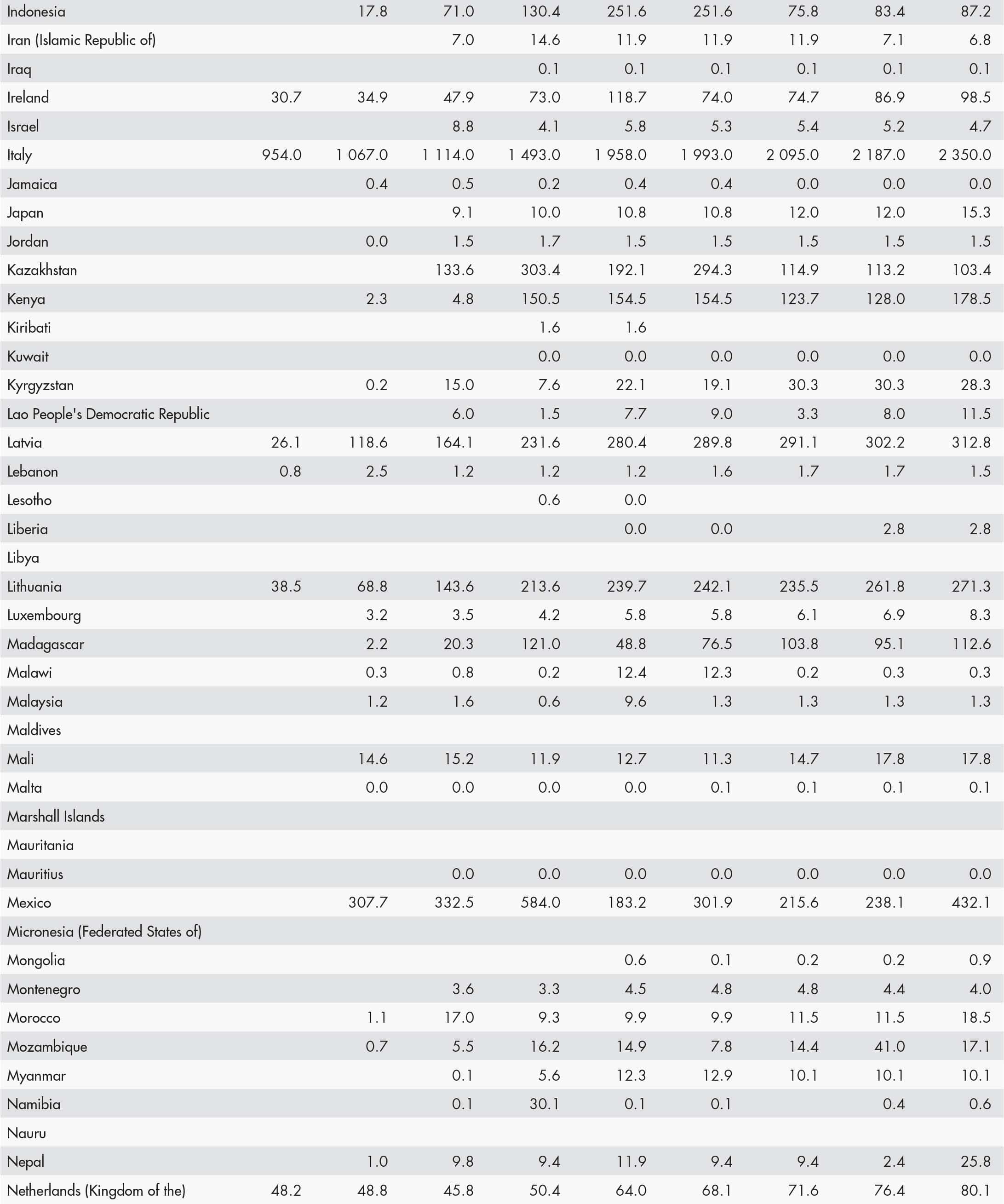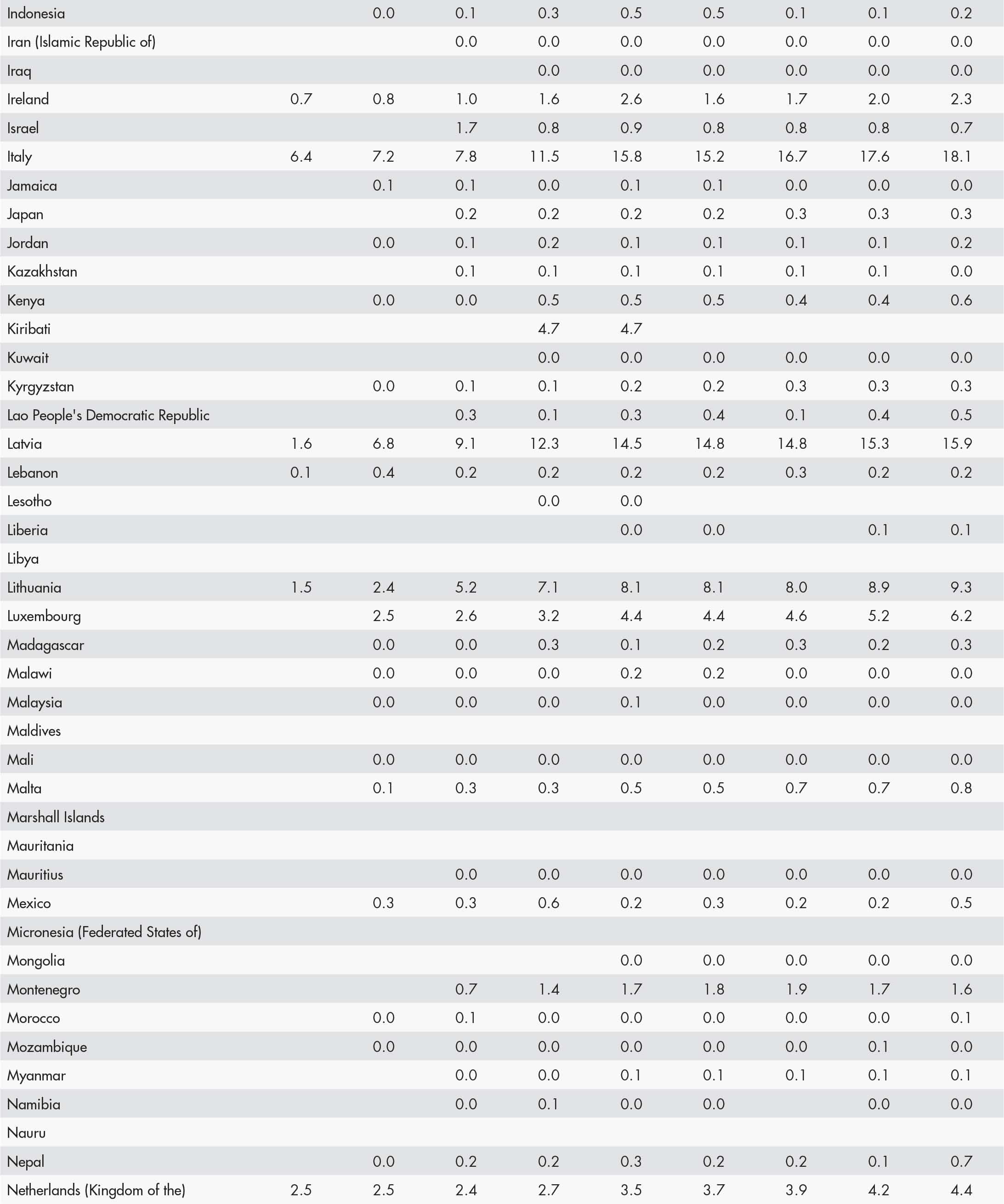 • a blank means that data are not available or that aggregates cannot be calculated because of missing data for the years shown;