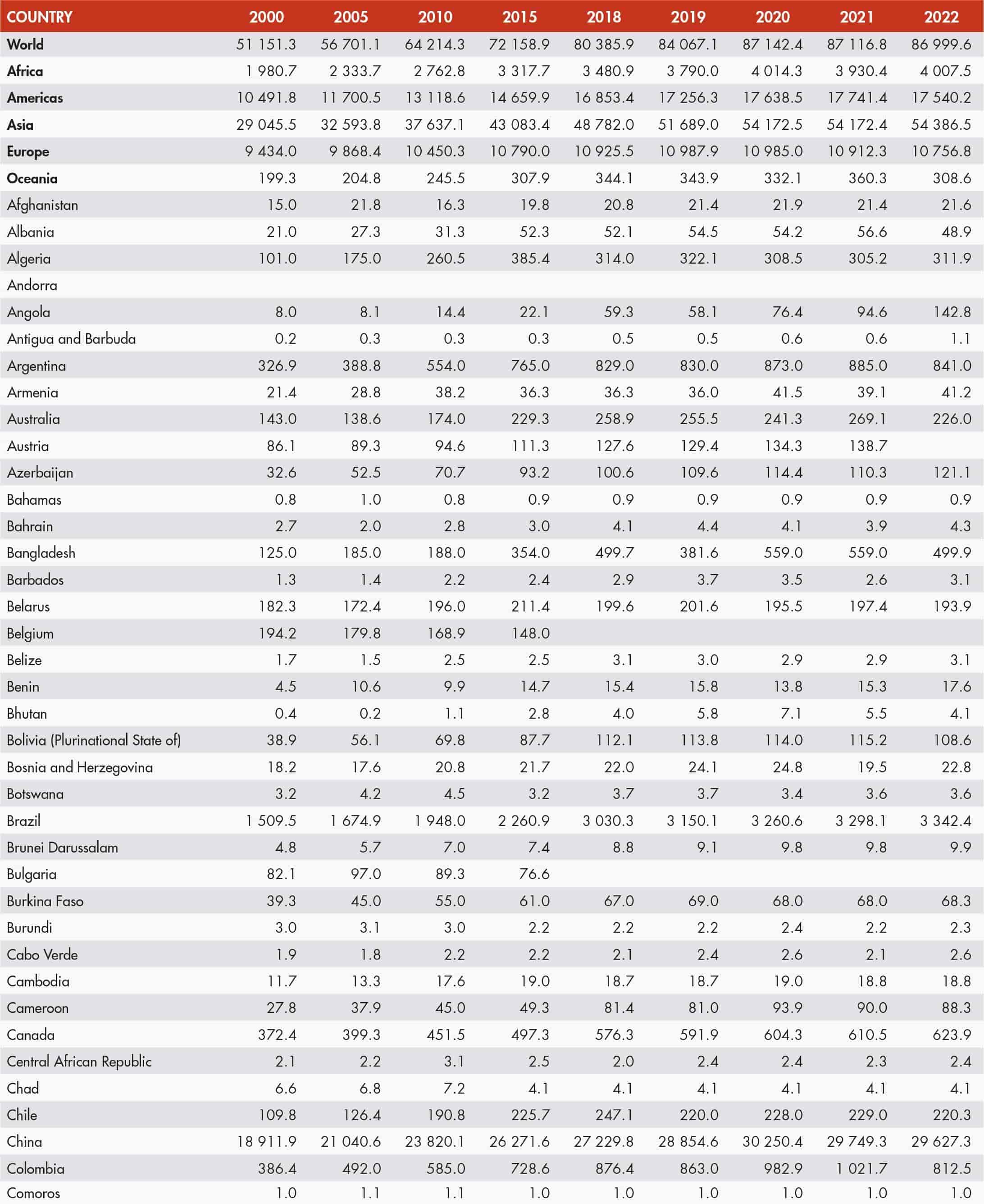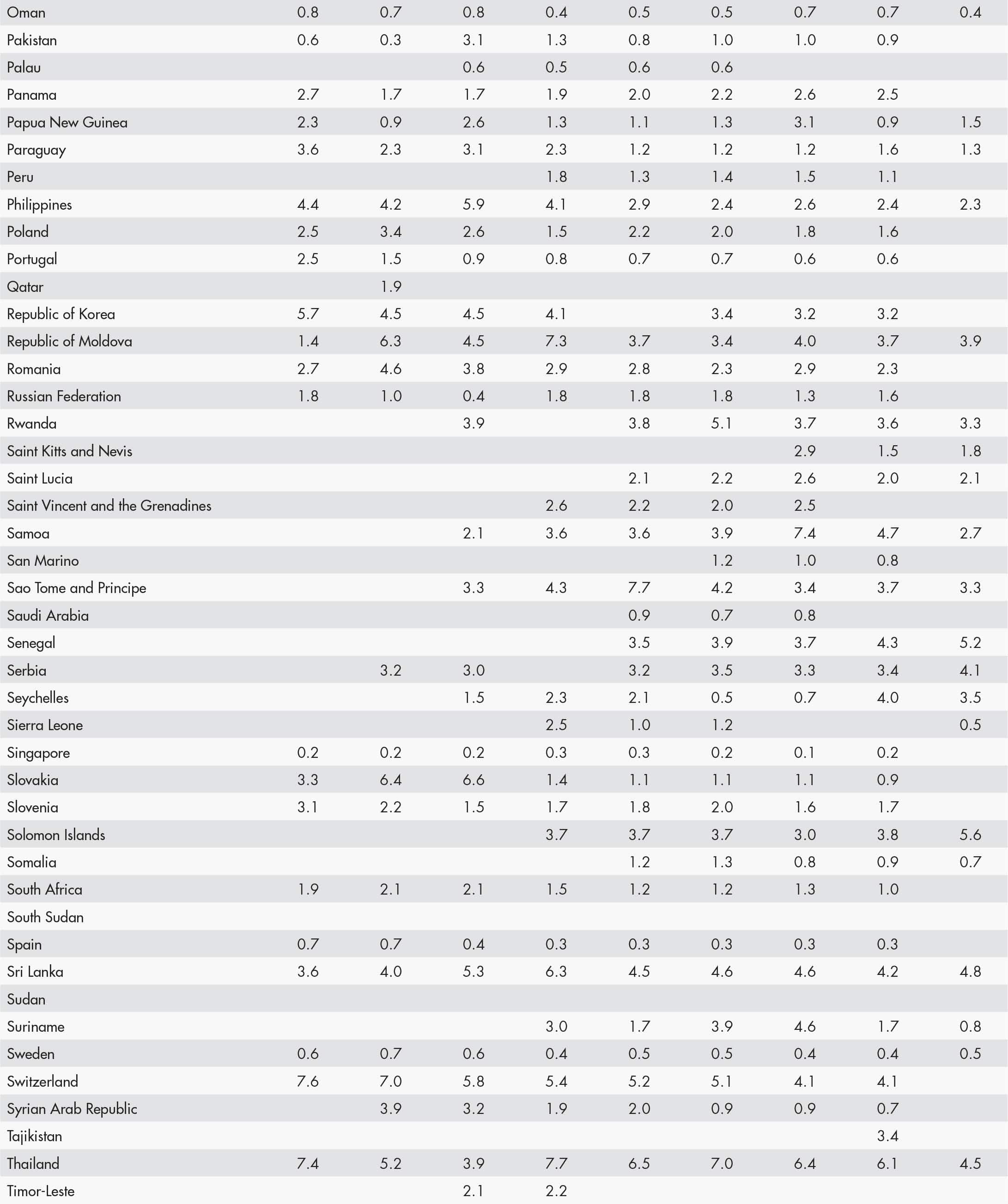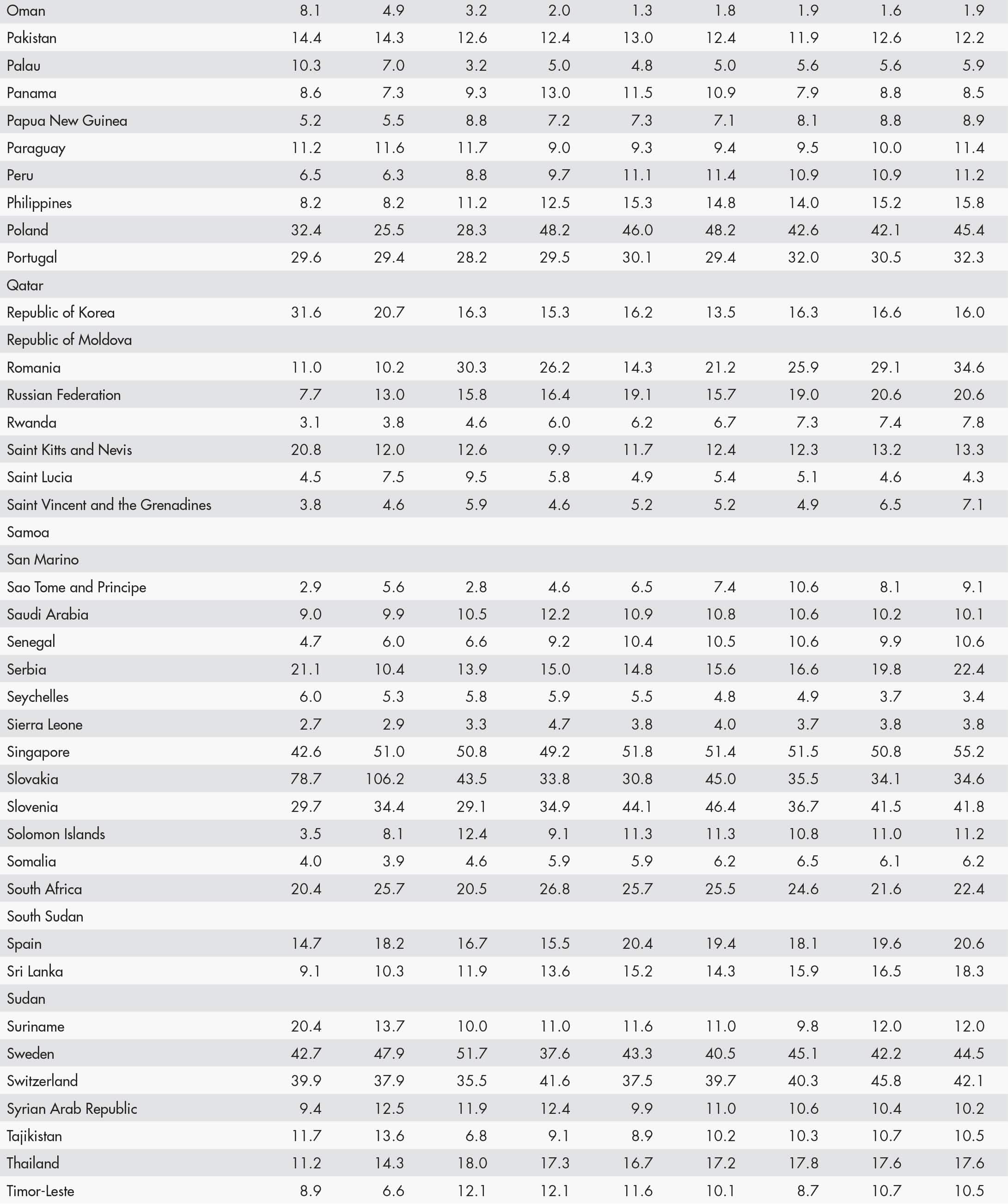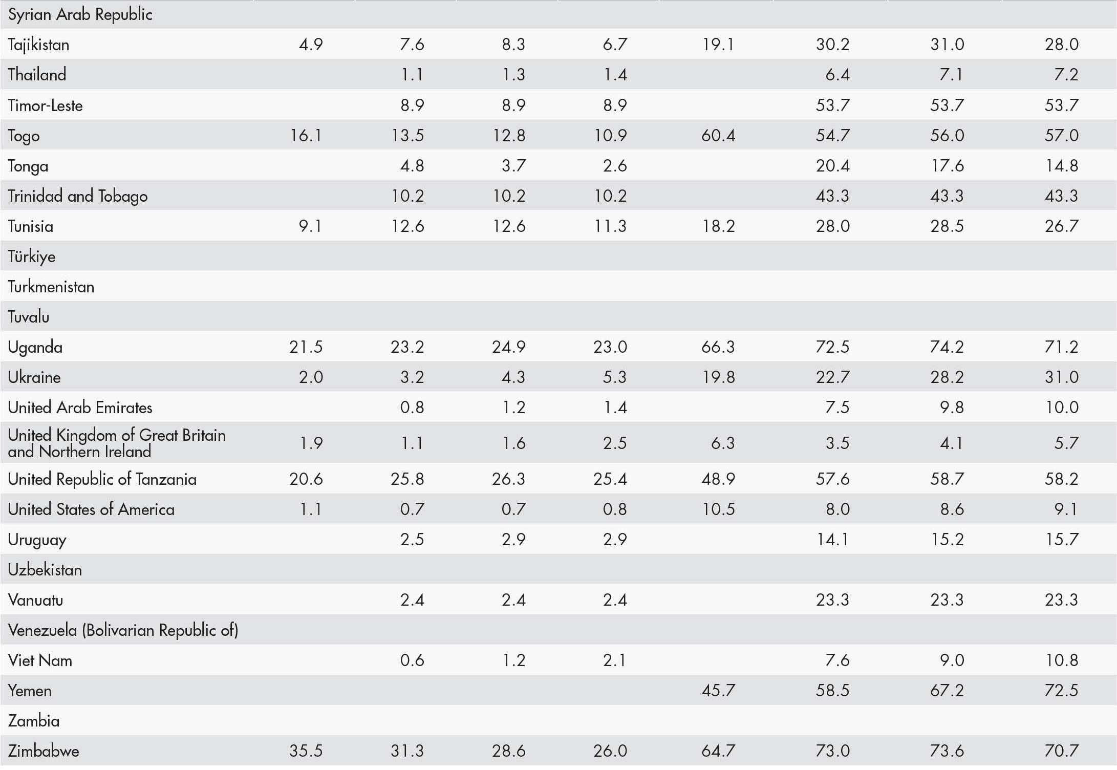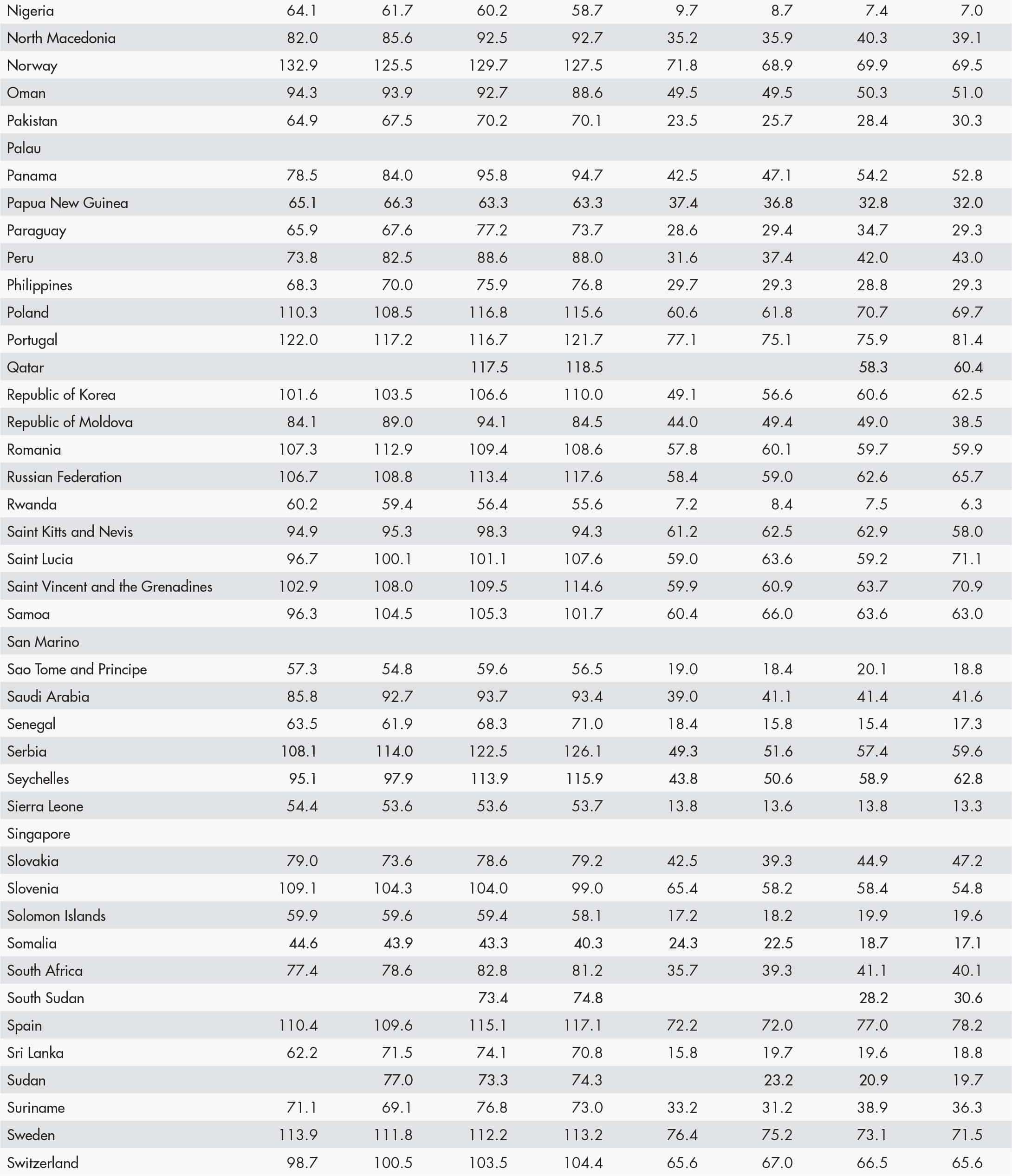 • a blank means that data are not available or that aggregates cannot be calculated because of missing data for the years shown;