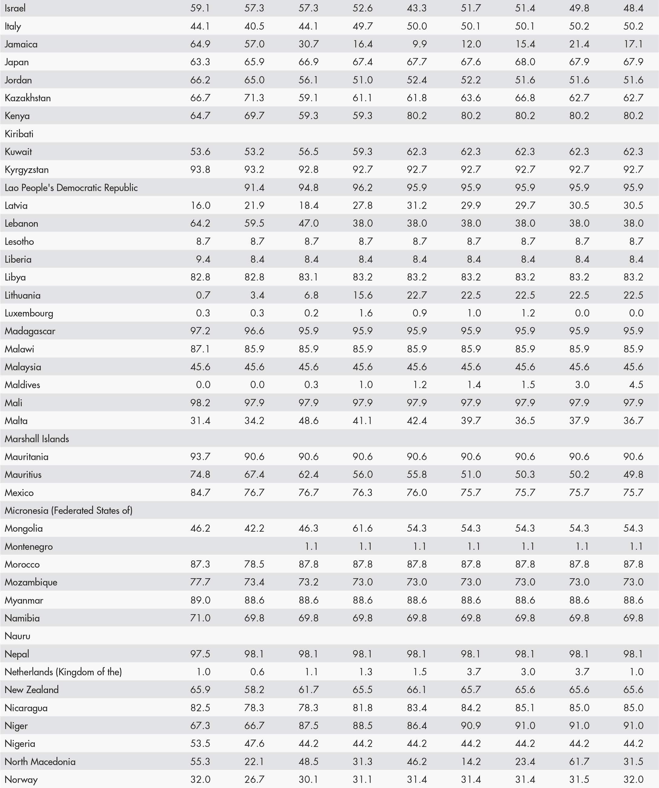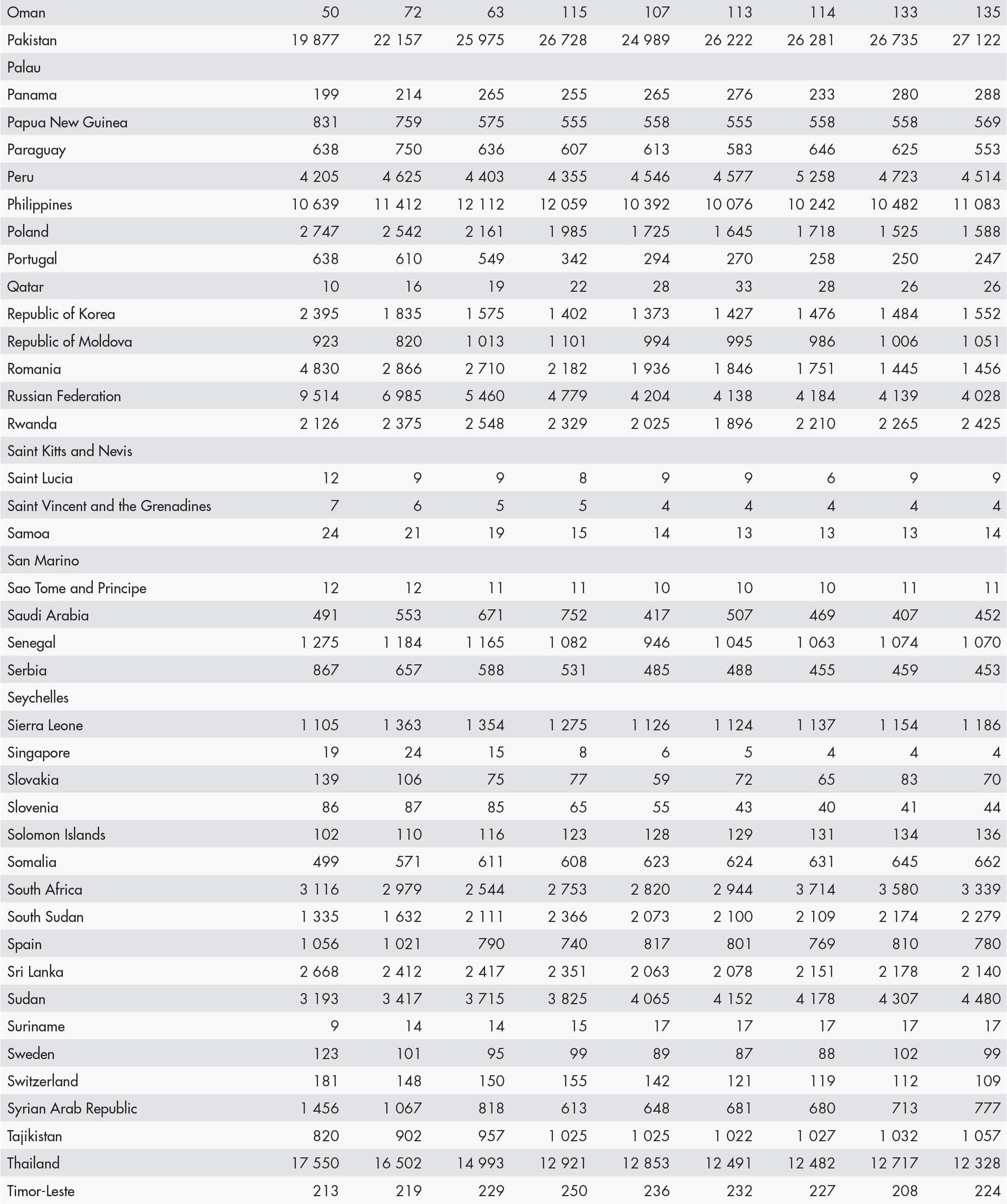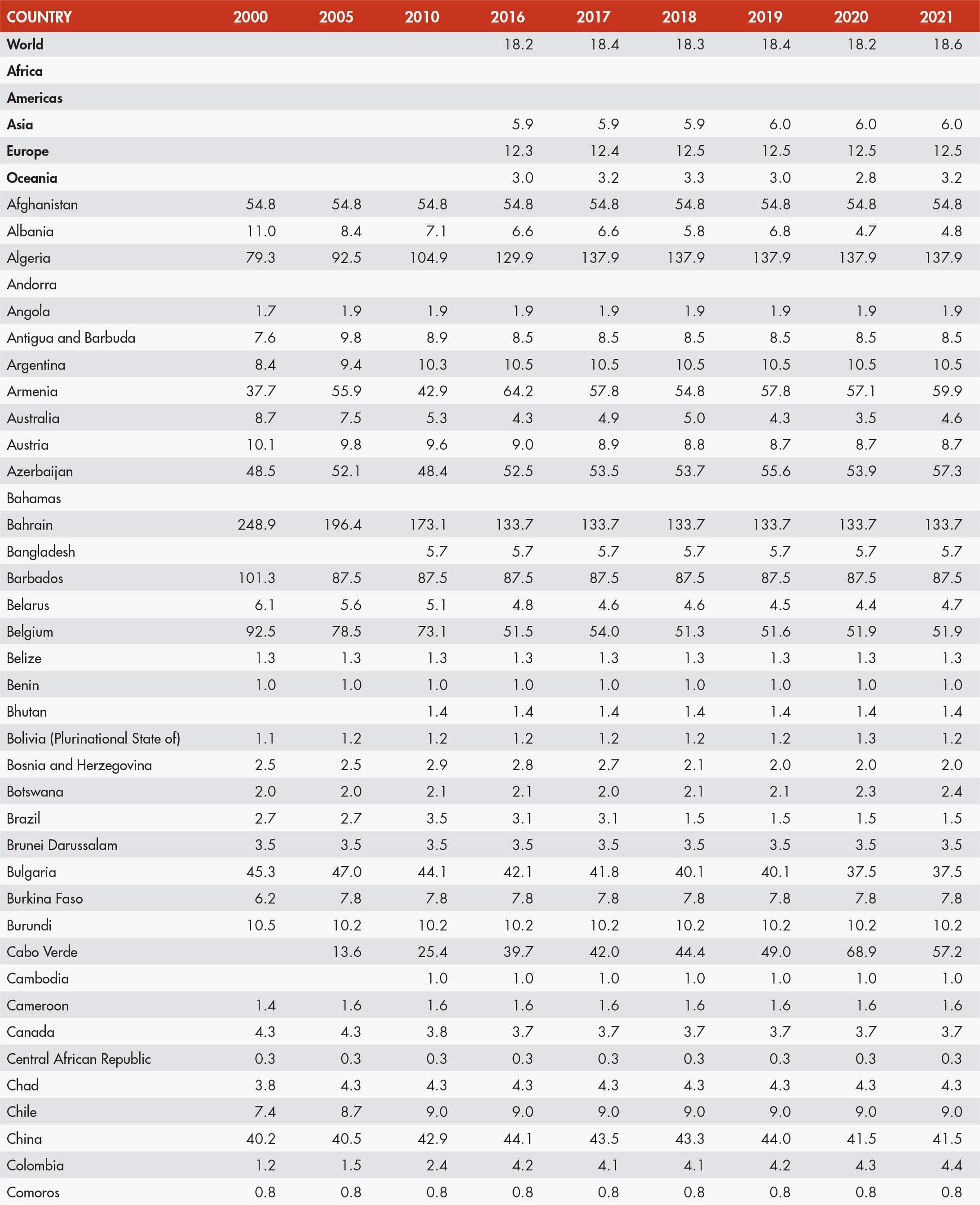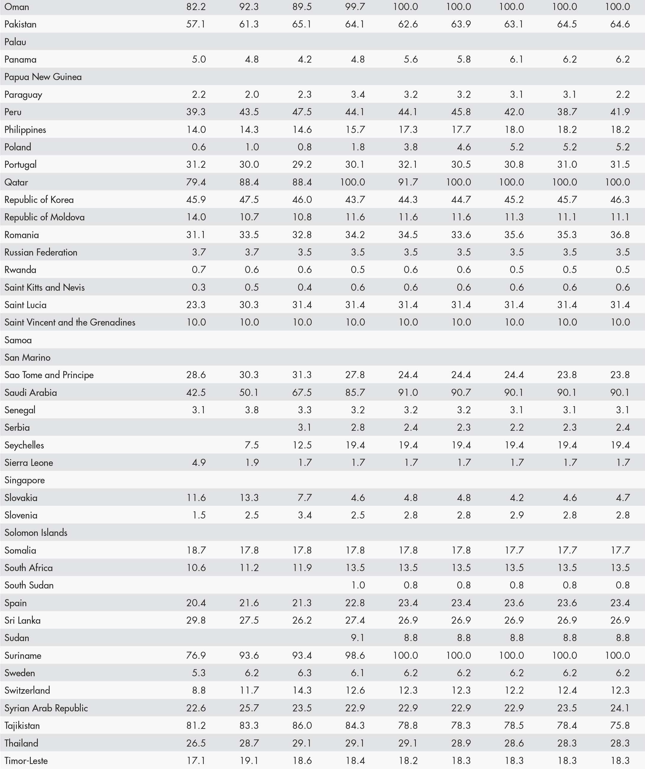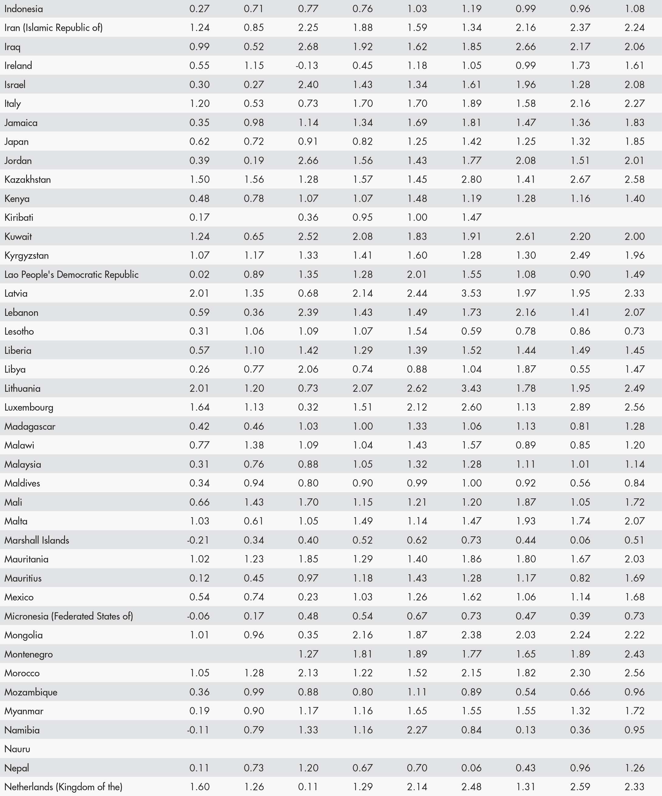 • a blank means that data are not available or that aggregates cannot be calculated because of missing data for the years shown;