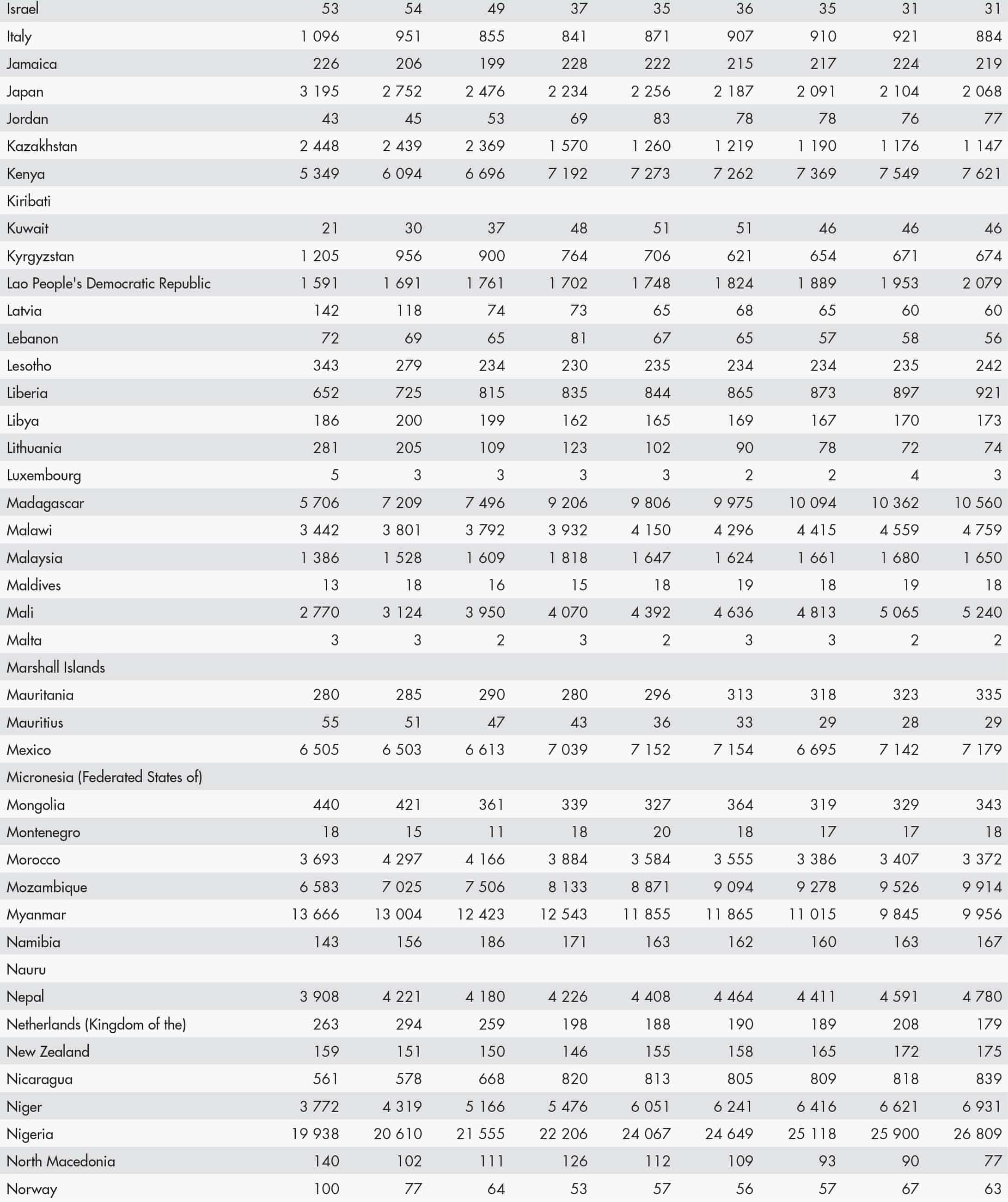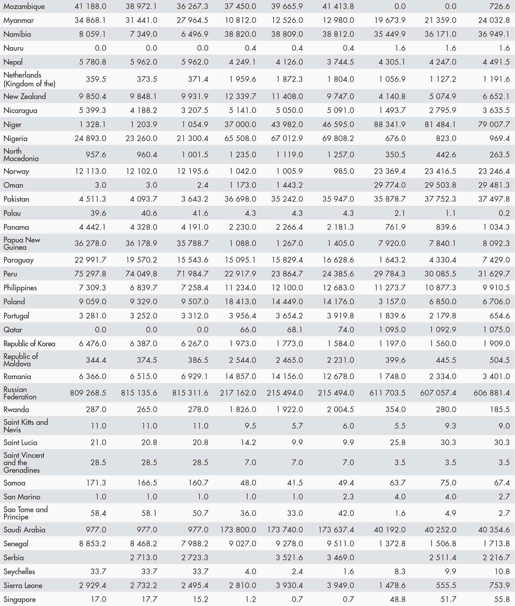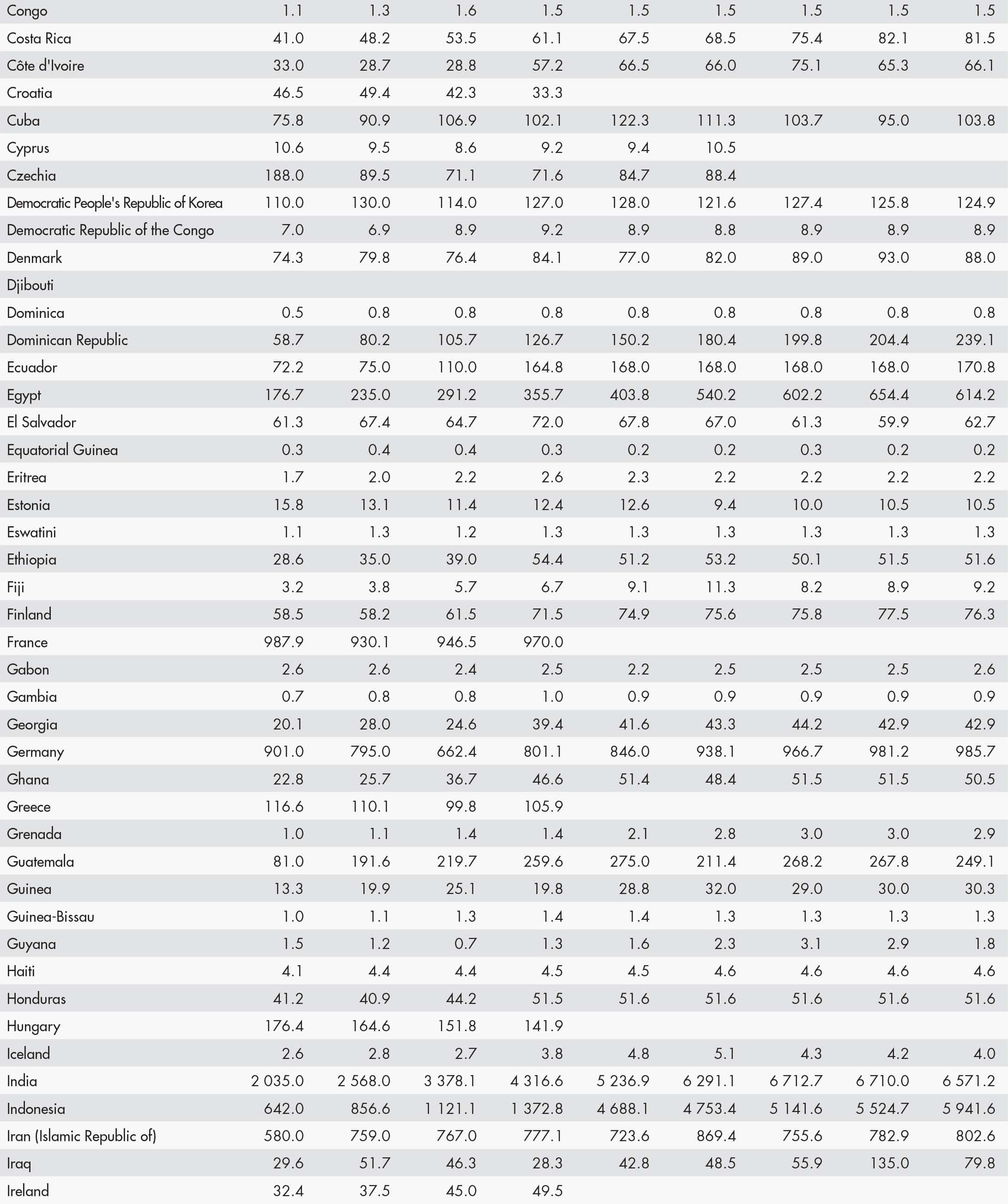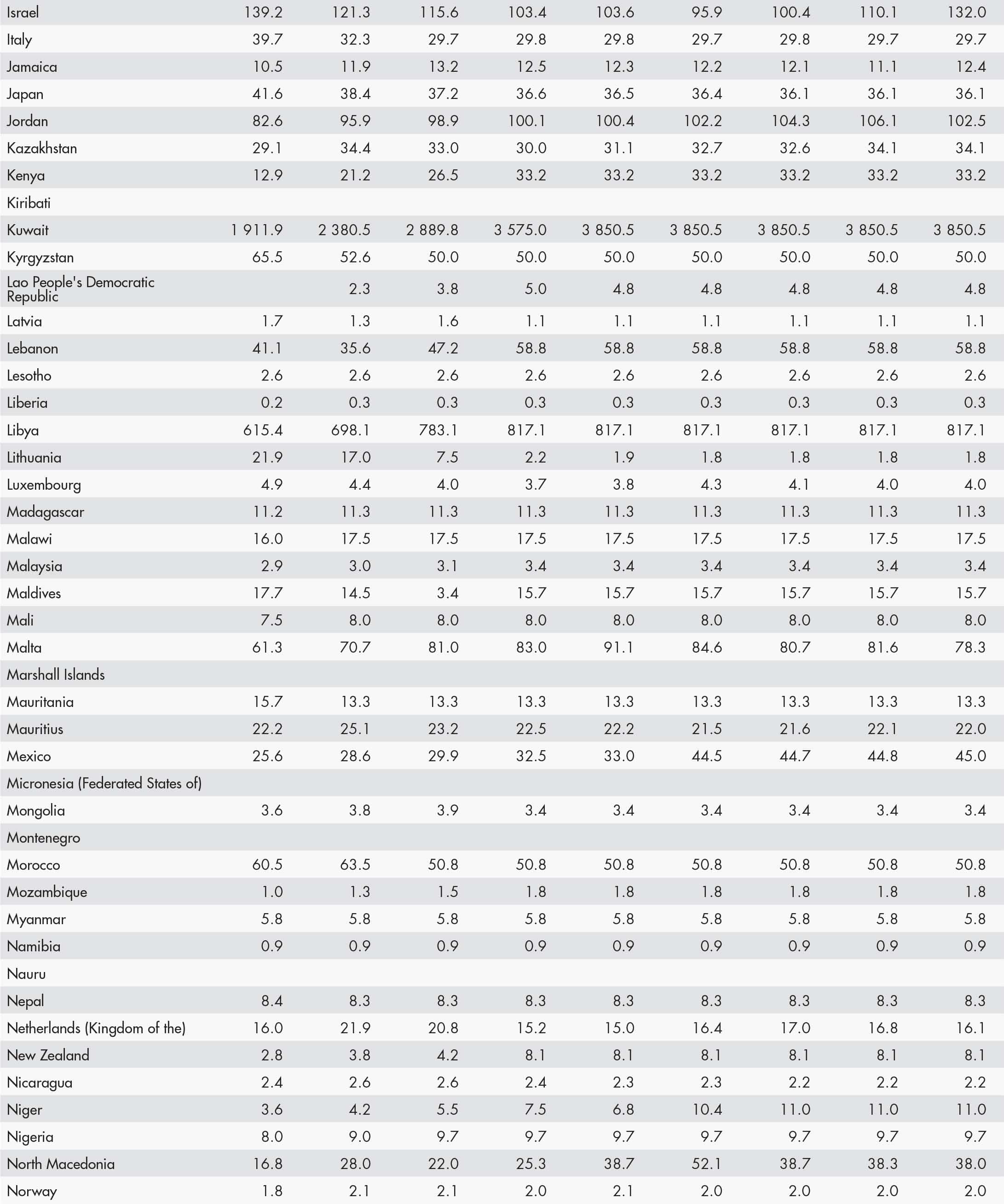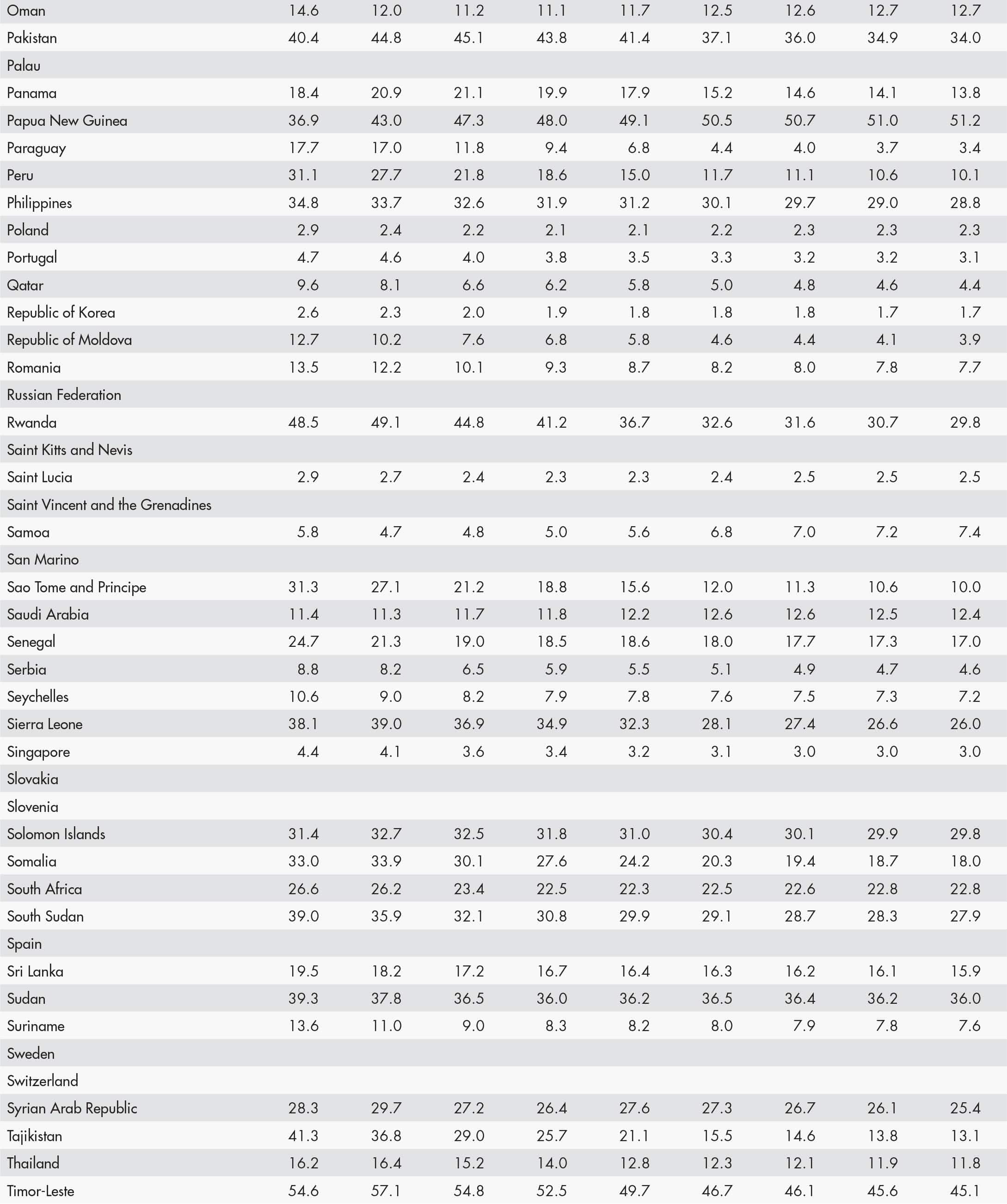 • a blank means that data are not available or that aggregates cannot be calculated because of missing data for the years shown;