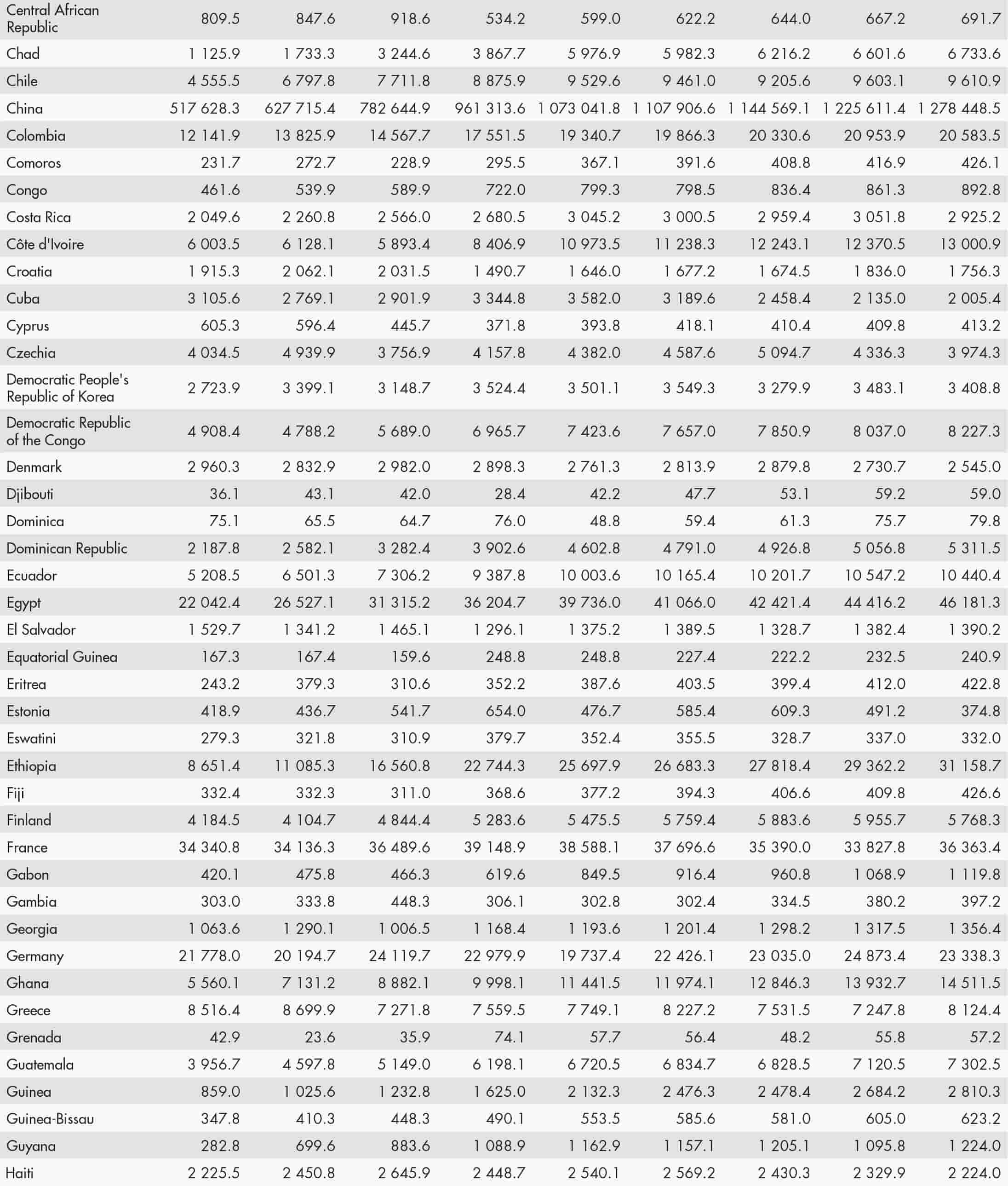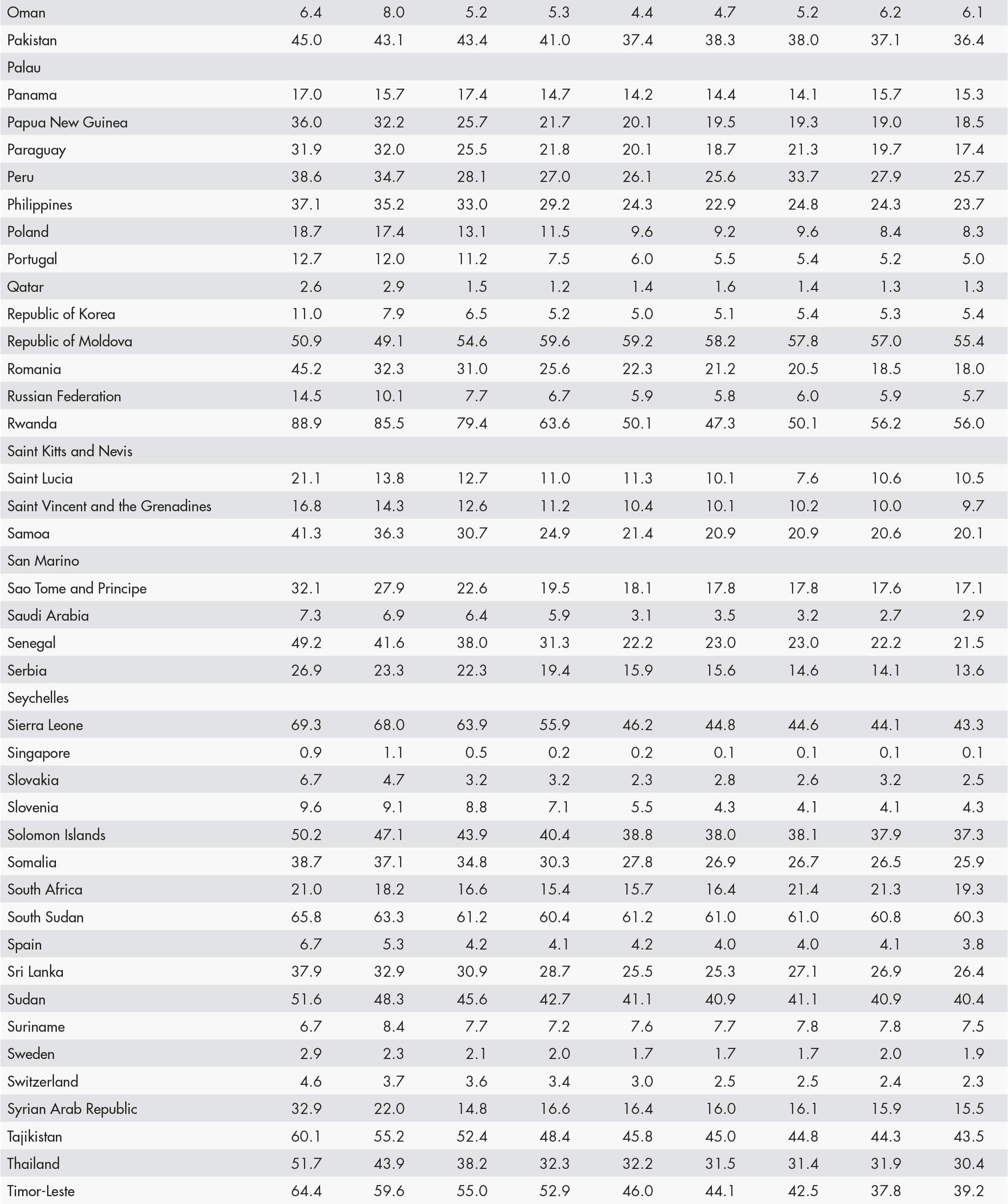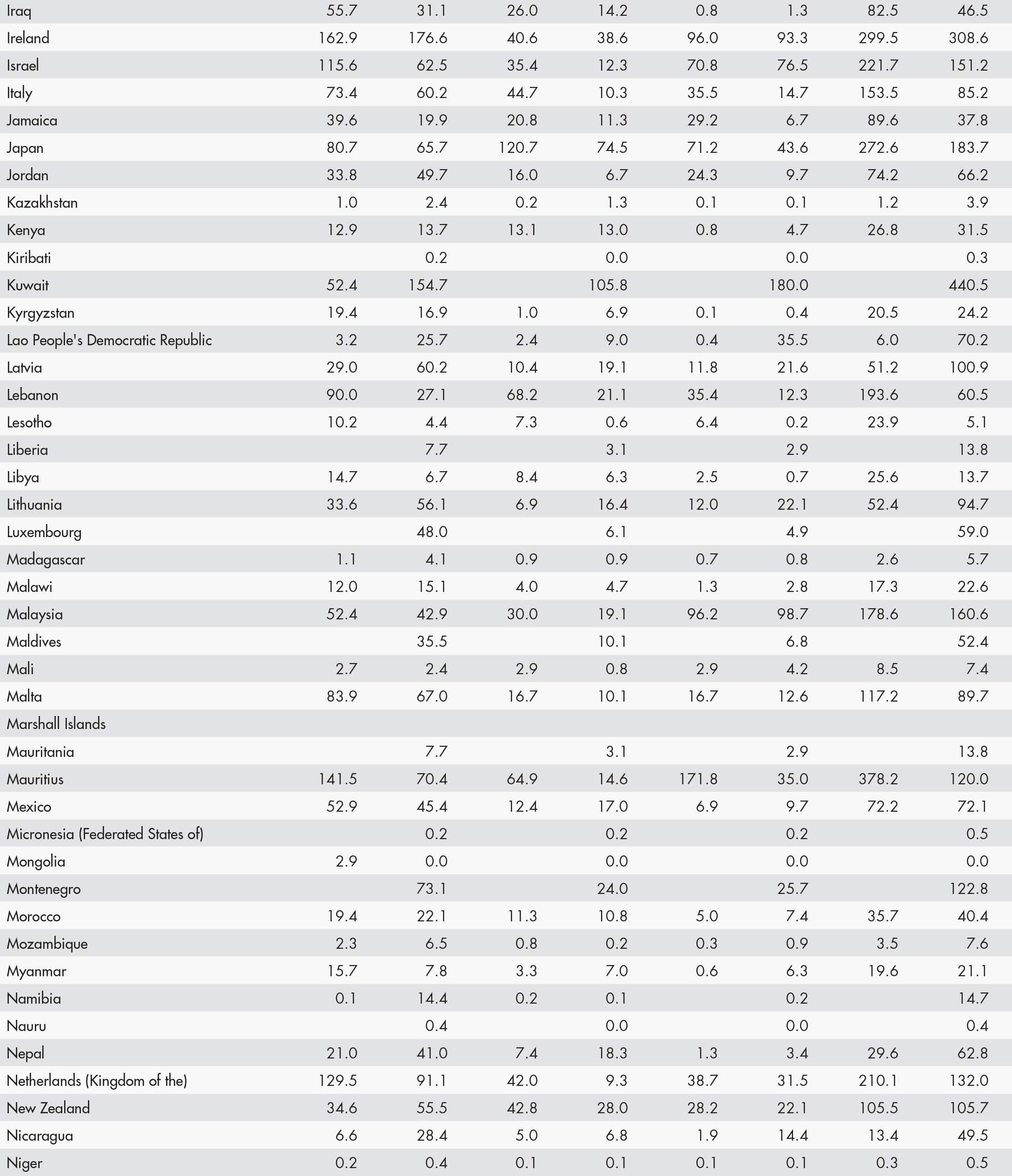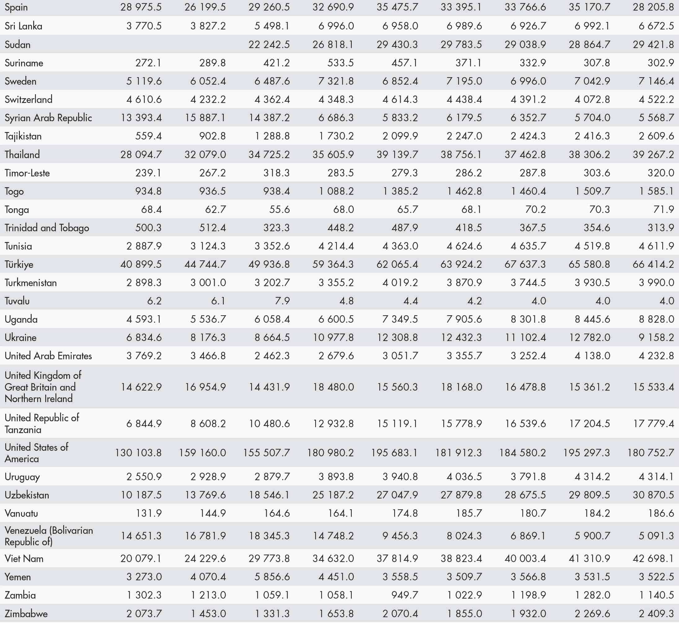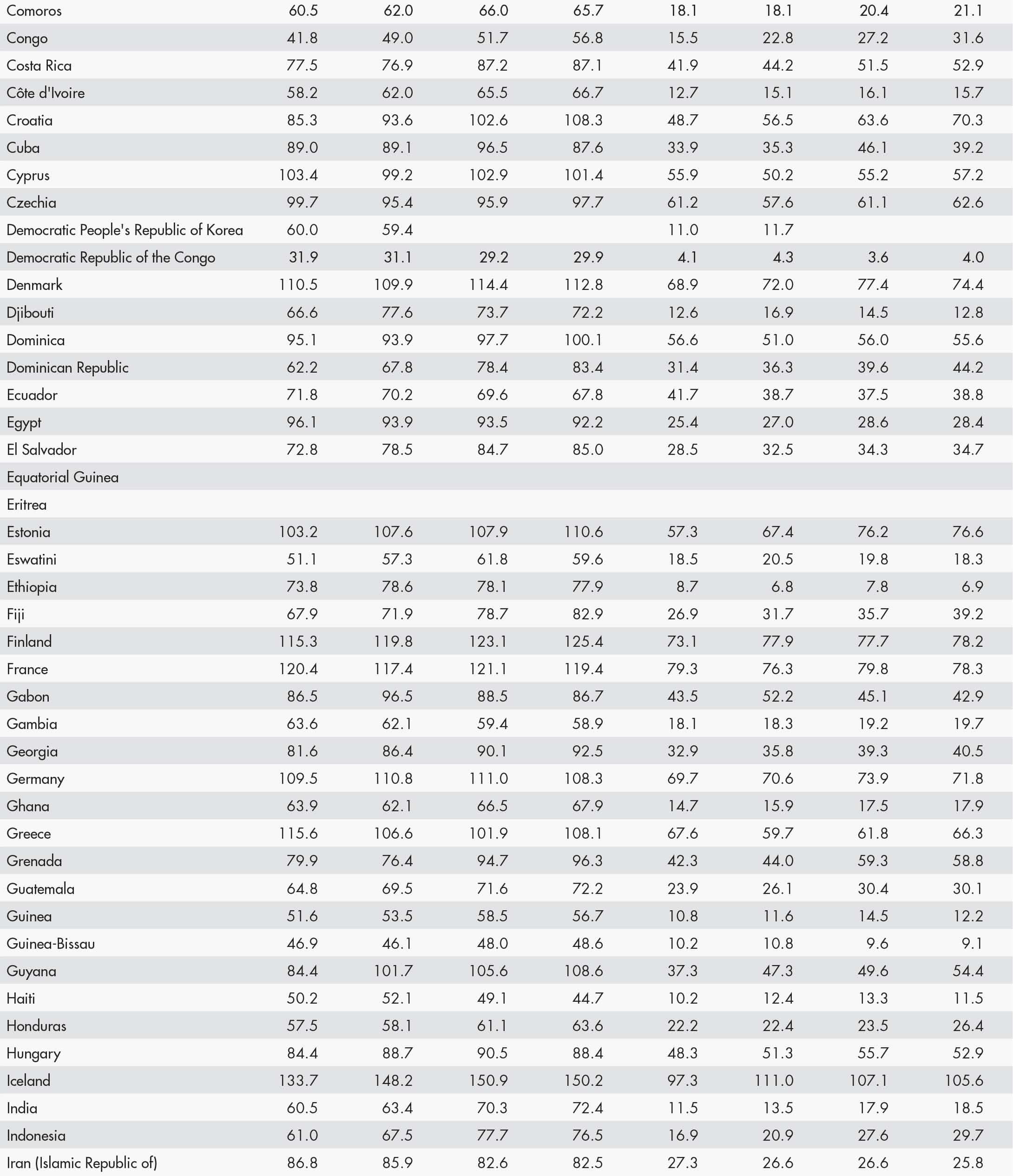 • a blank means that data are not available or that aggregates cannot be calculated because of missing data for the years shown;