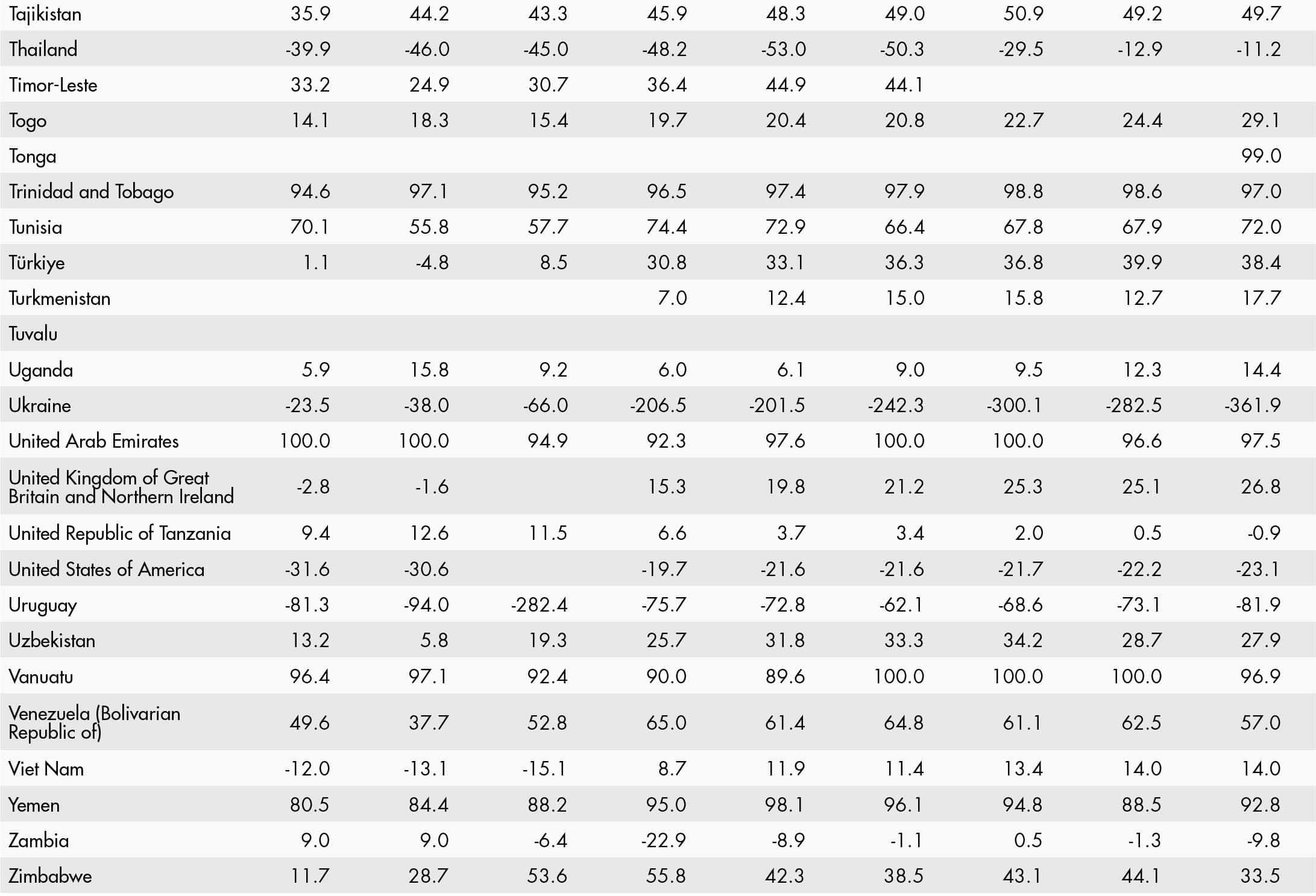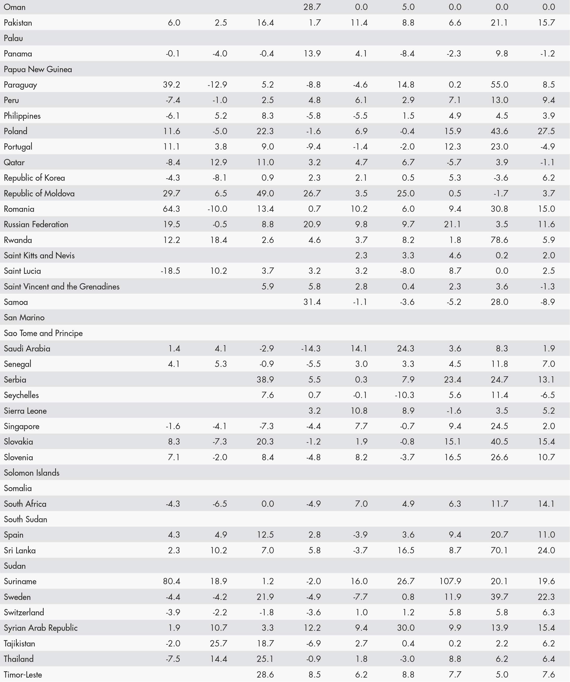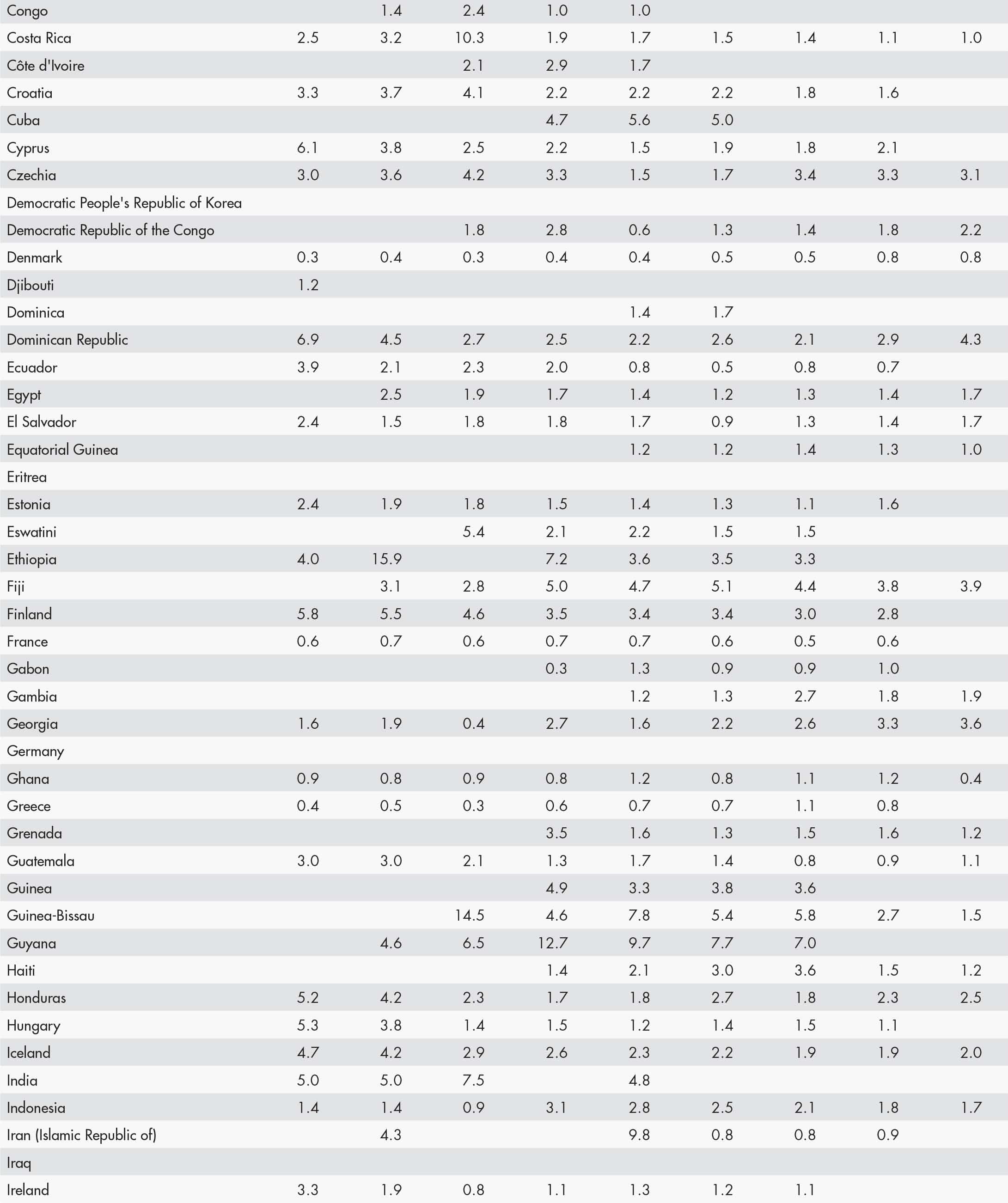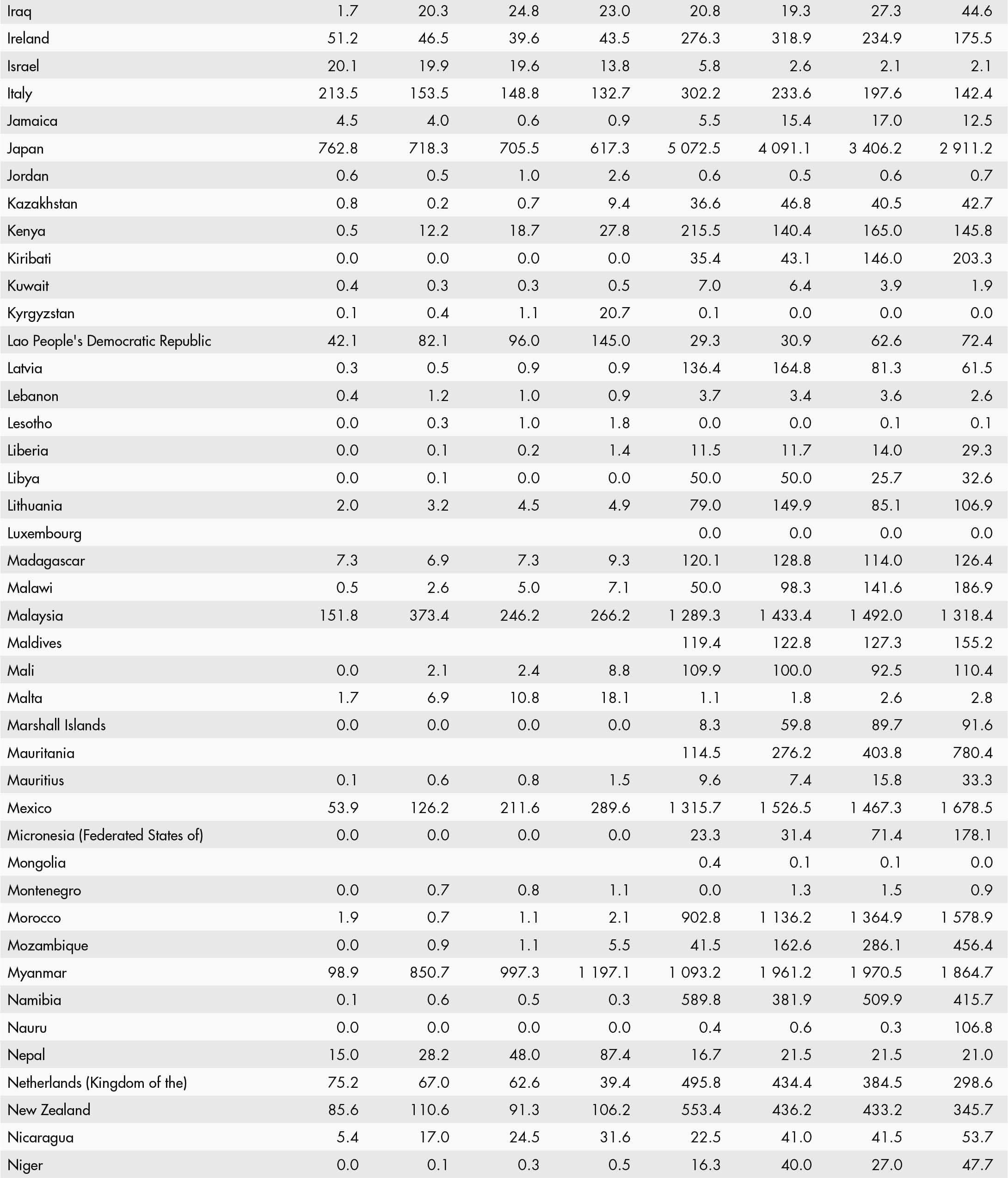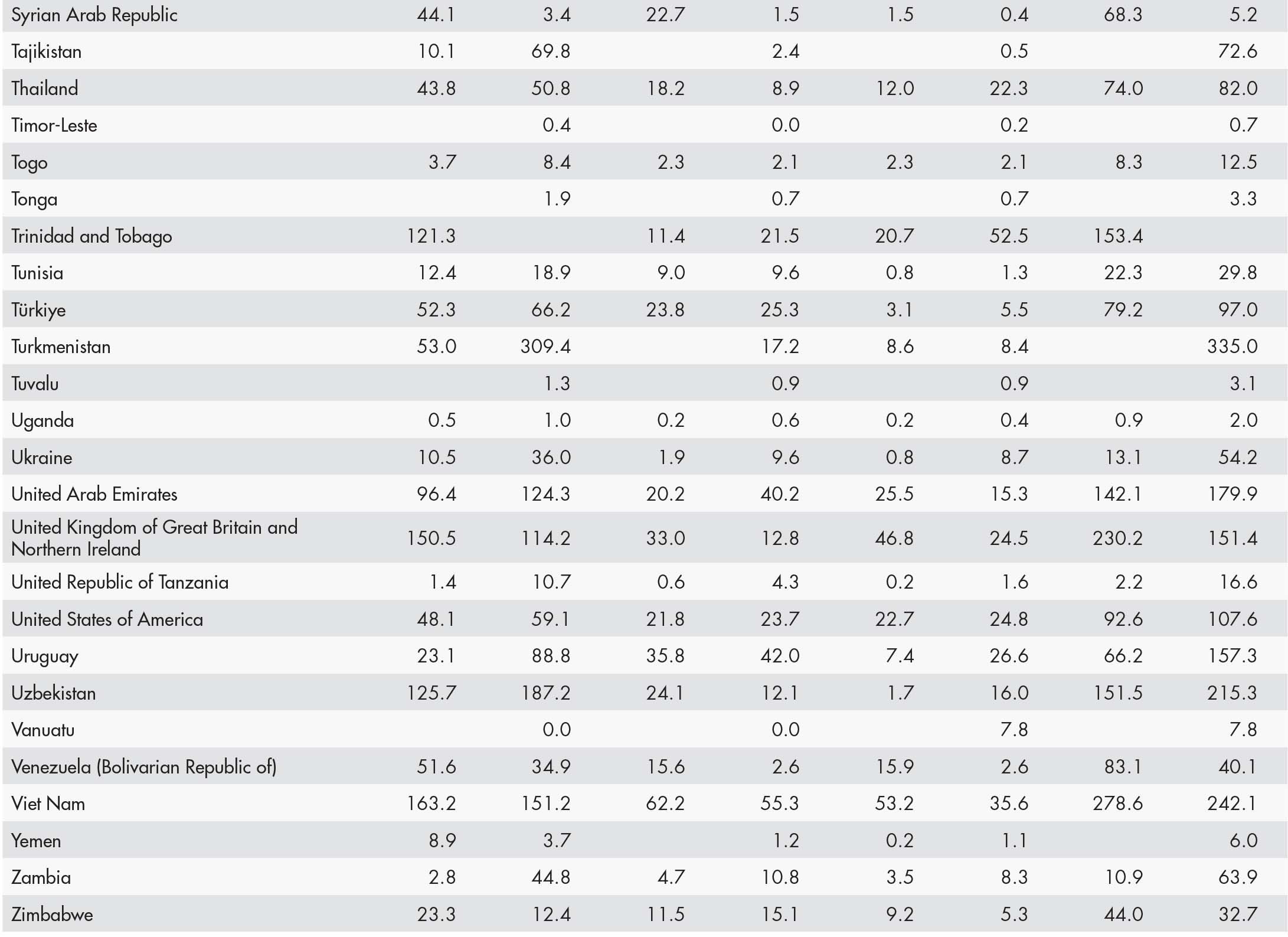 • a blank means that data are not available or that aggregates cannot be calculated because of missing data for the years shown;