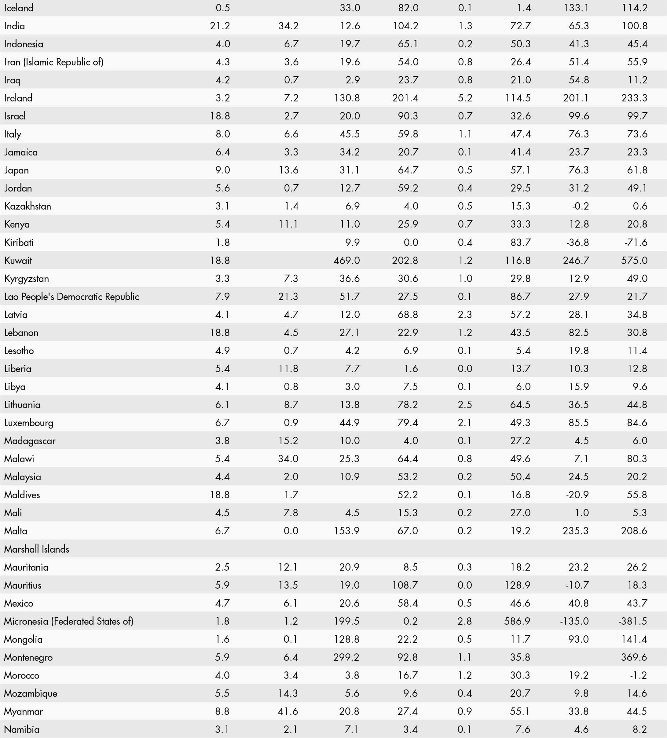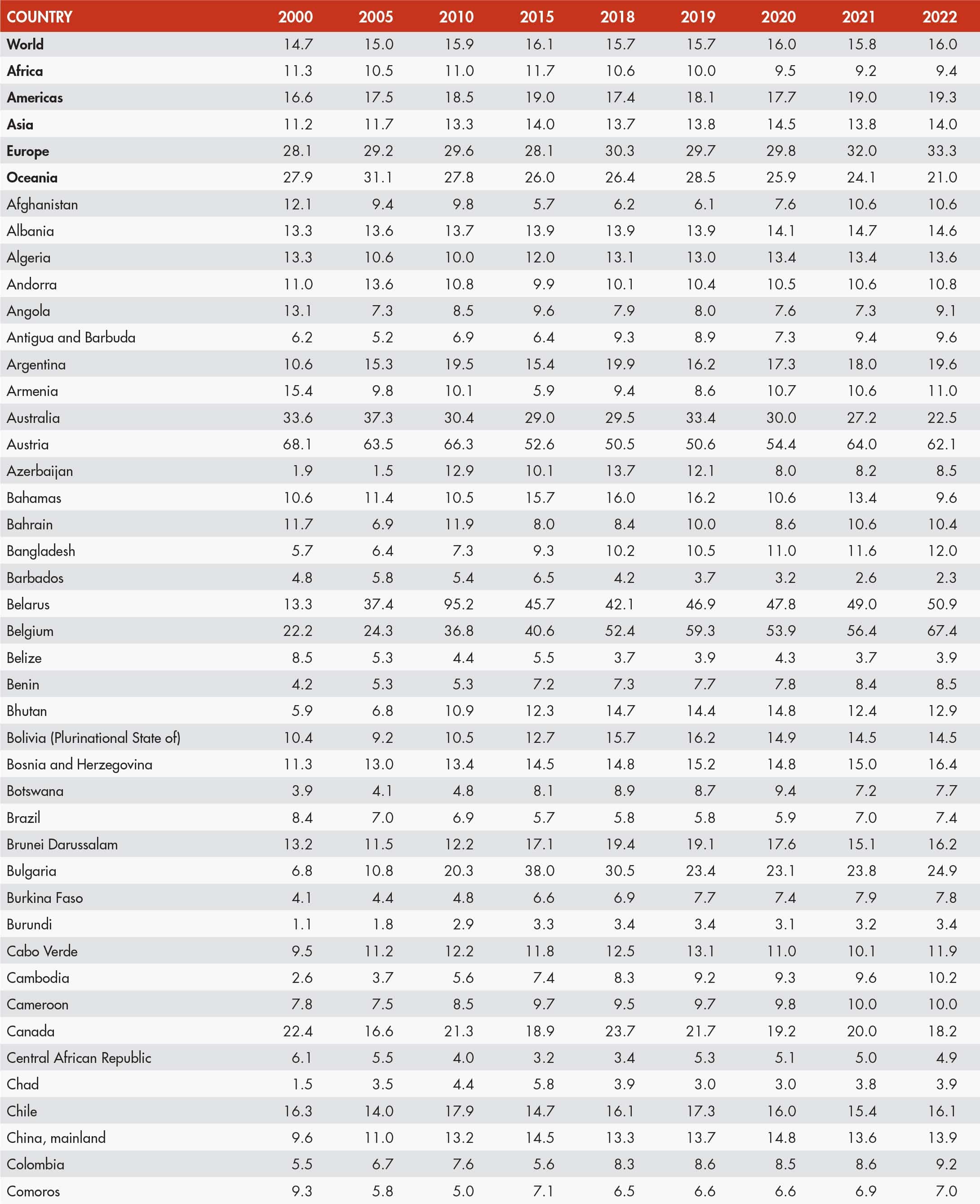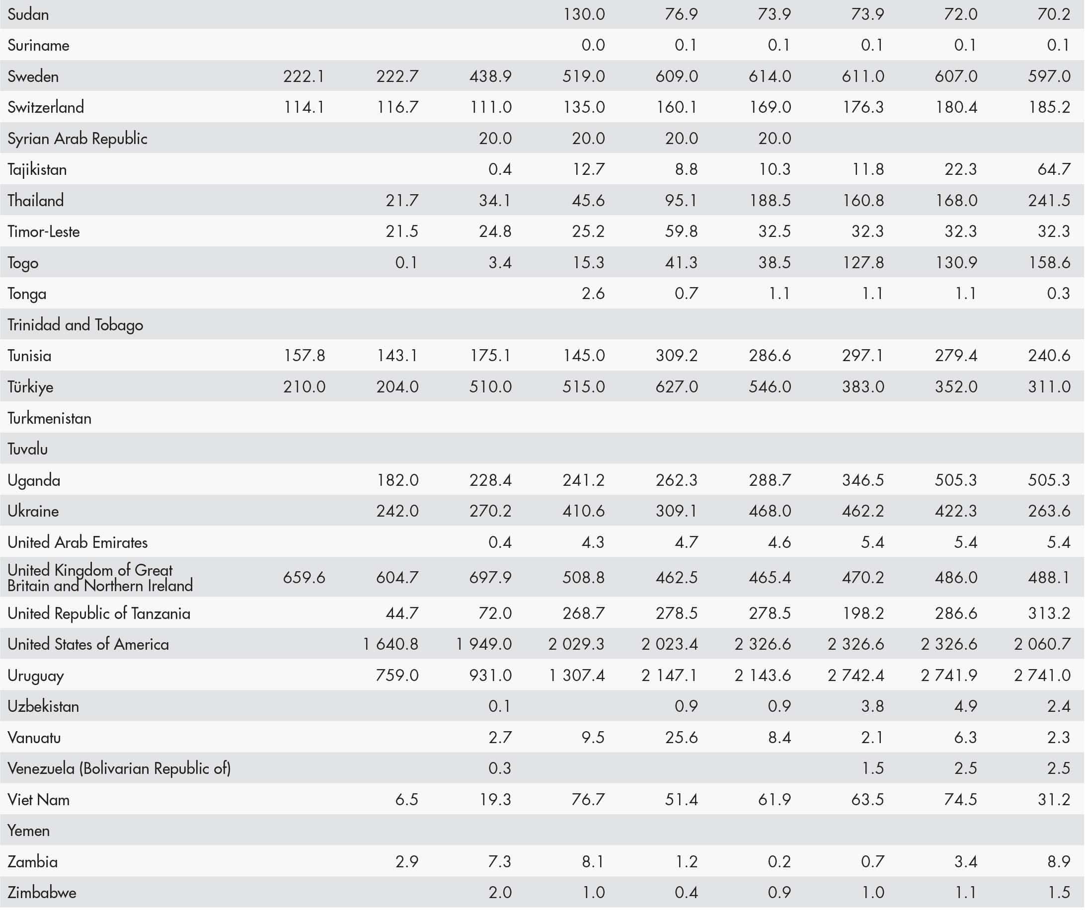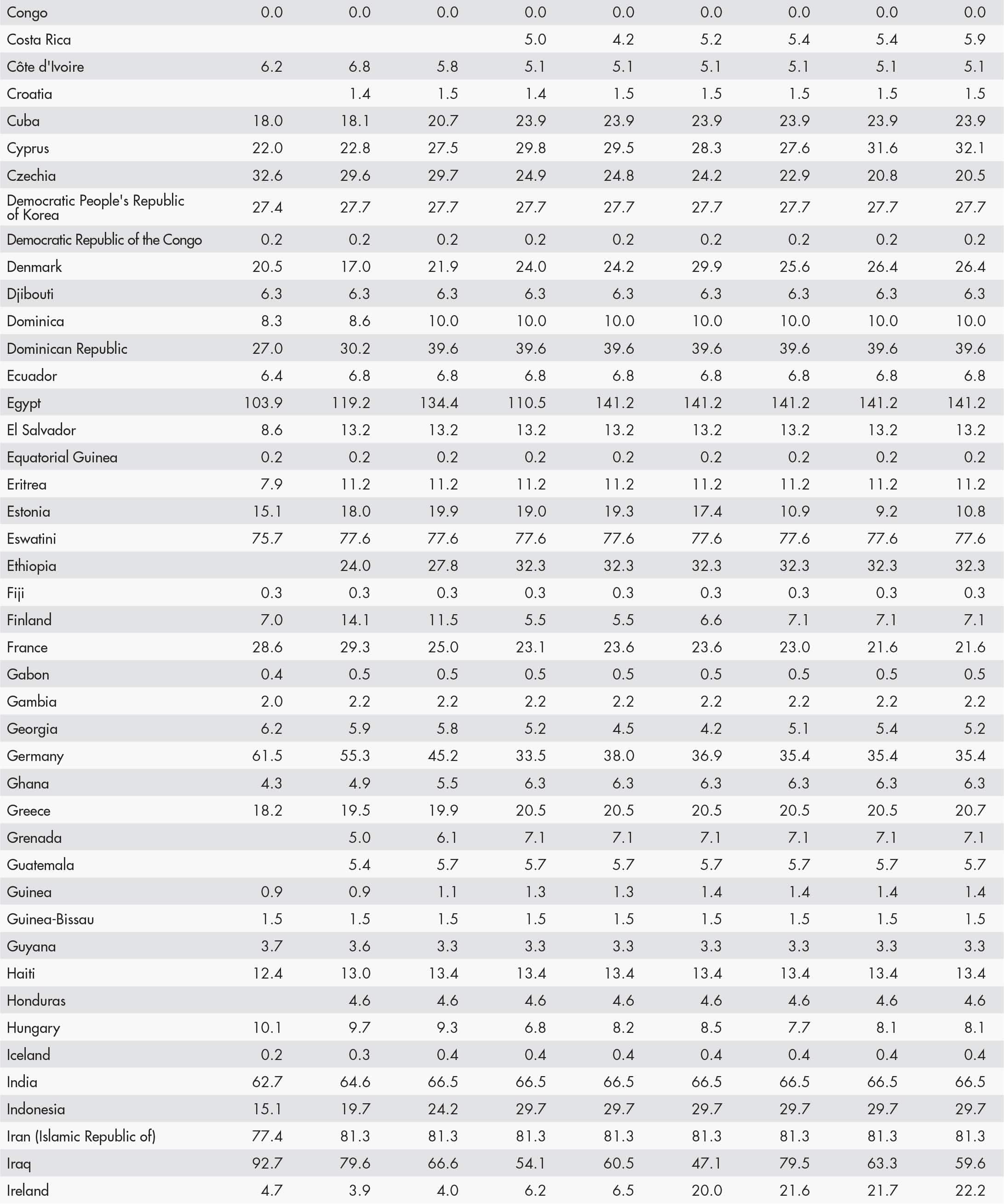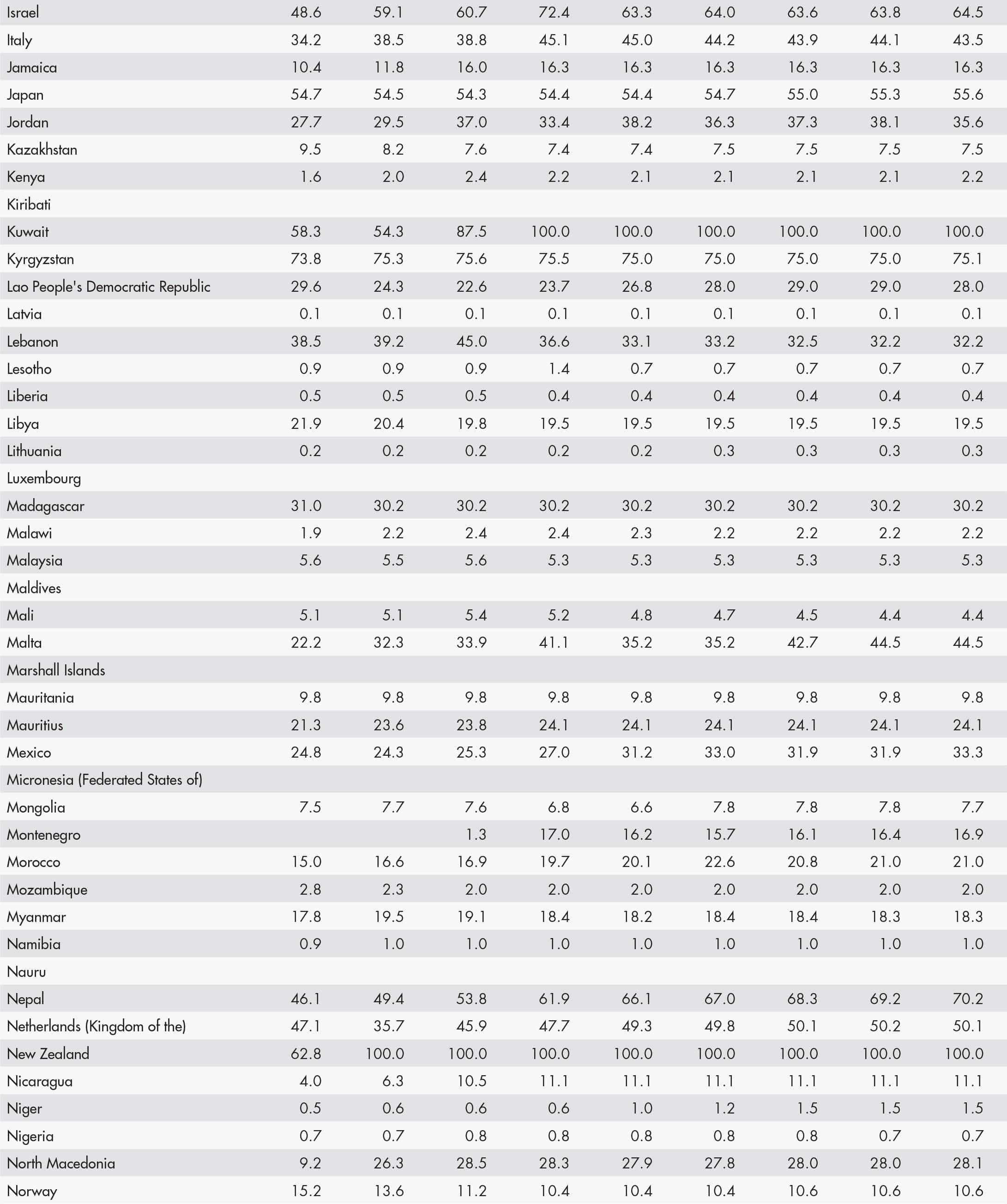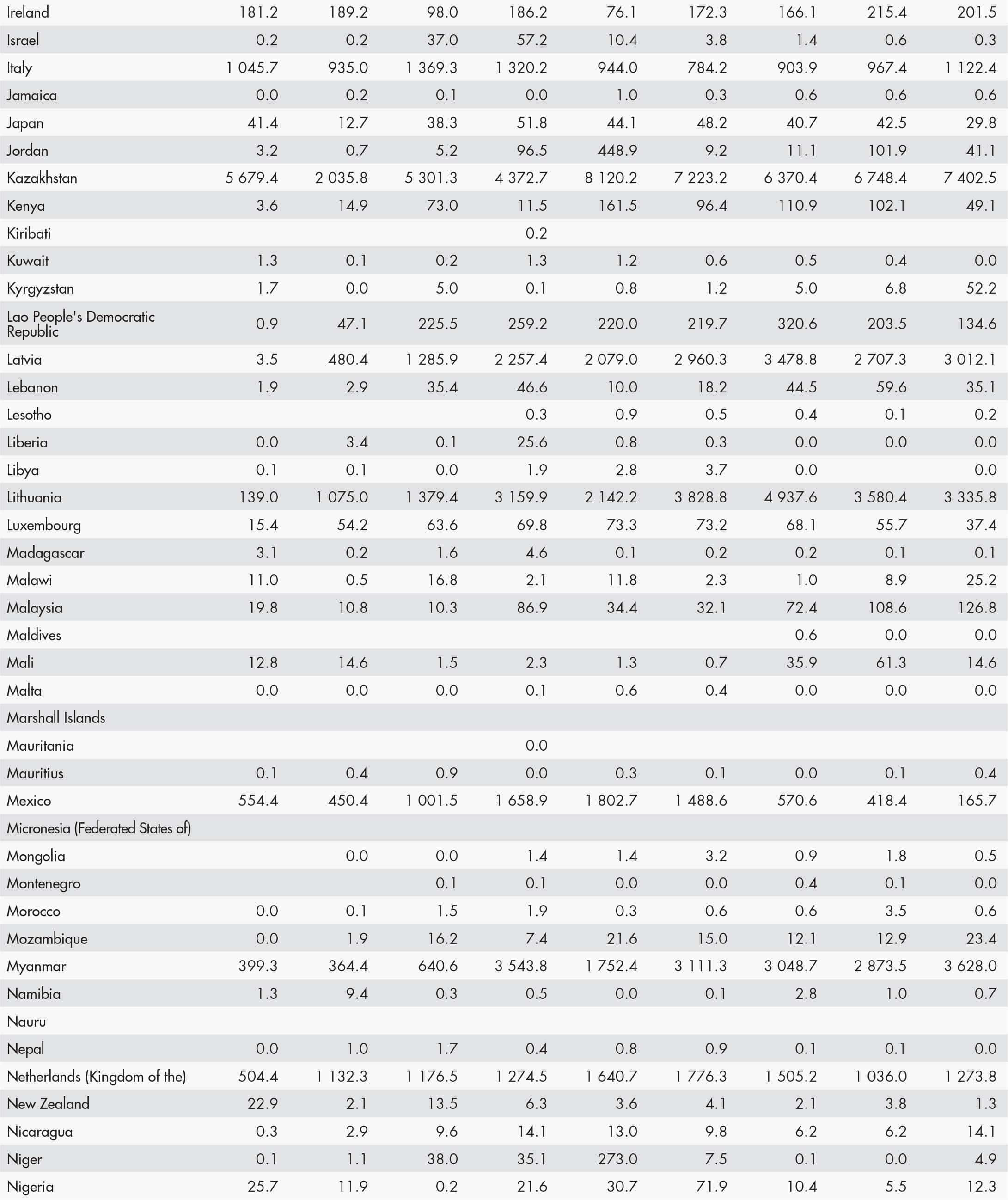 • a blank means that data are not available or that aggregates cannot be calculated because of missing data for the years shown;