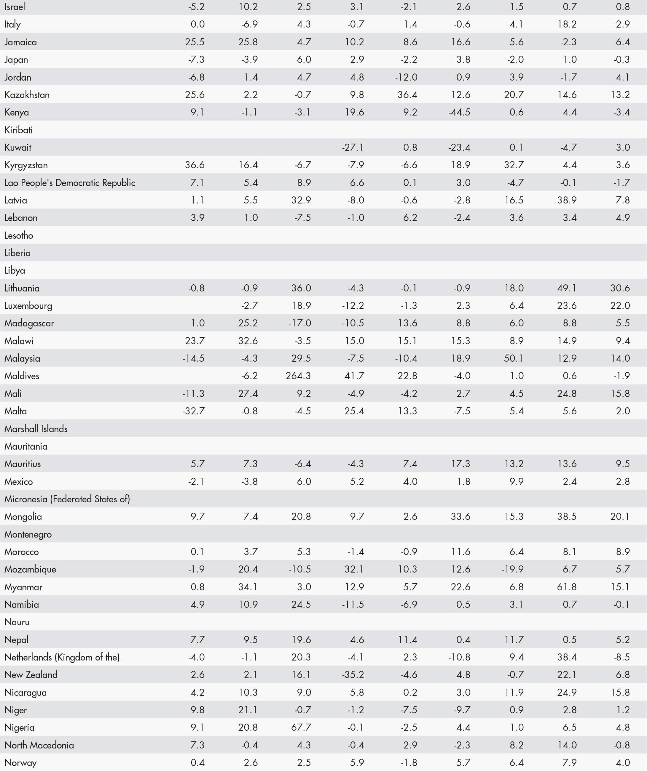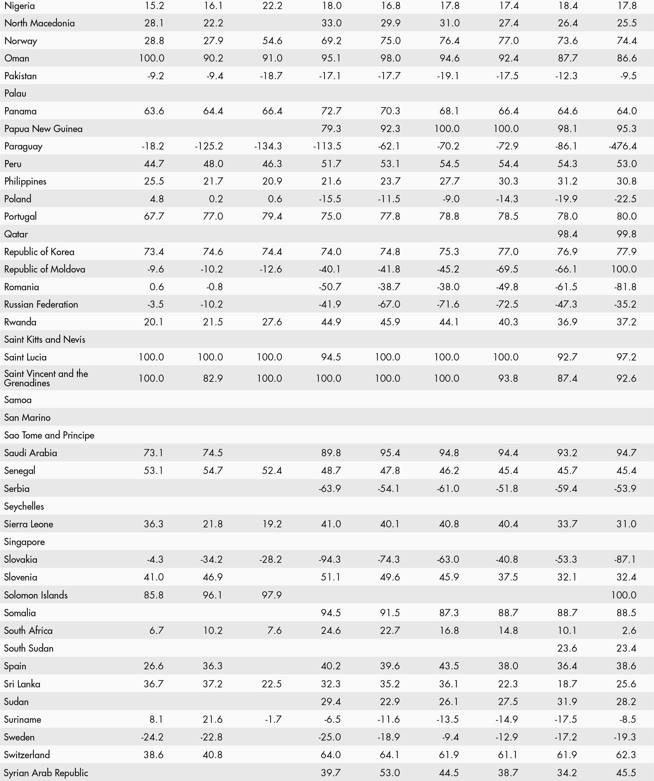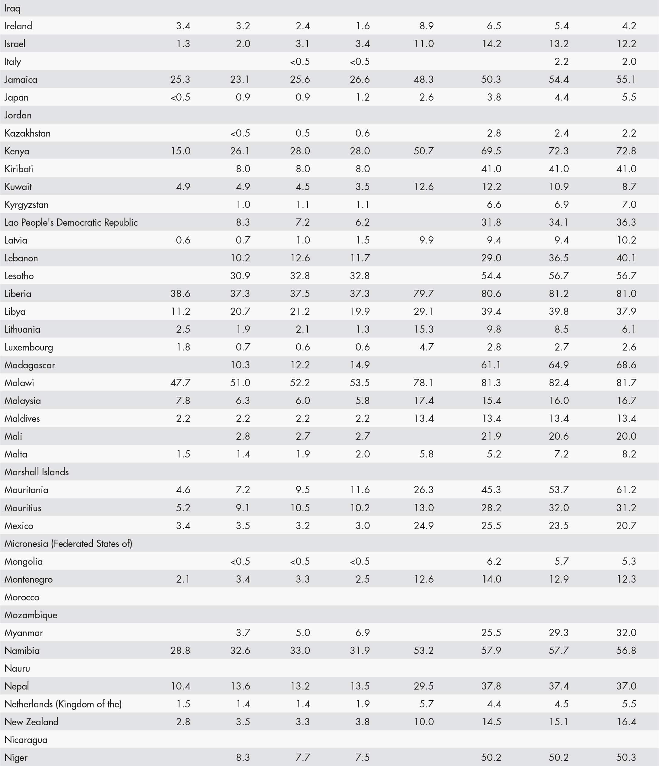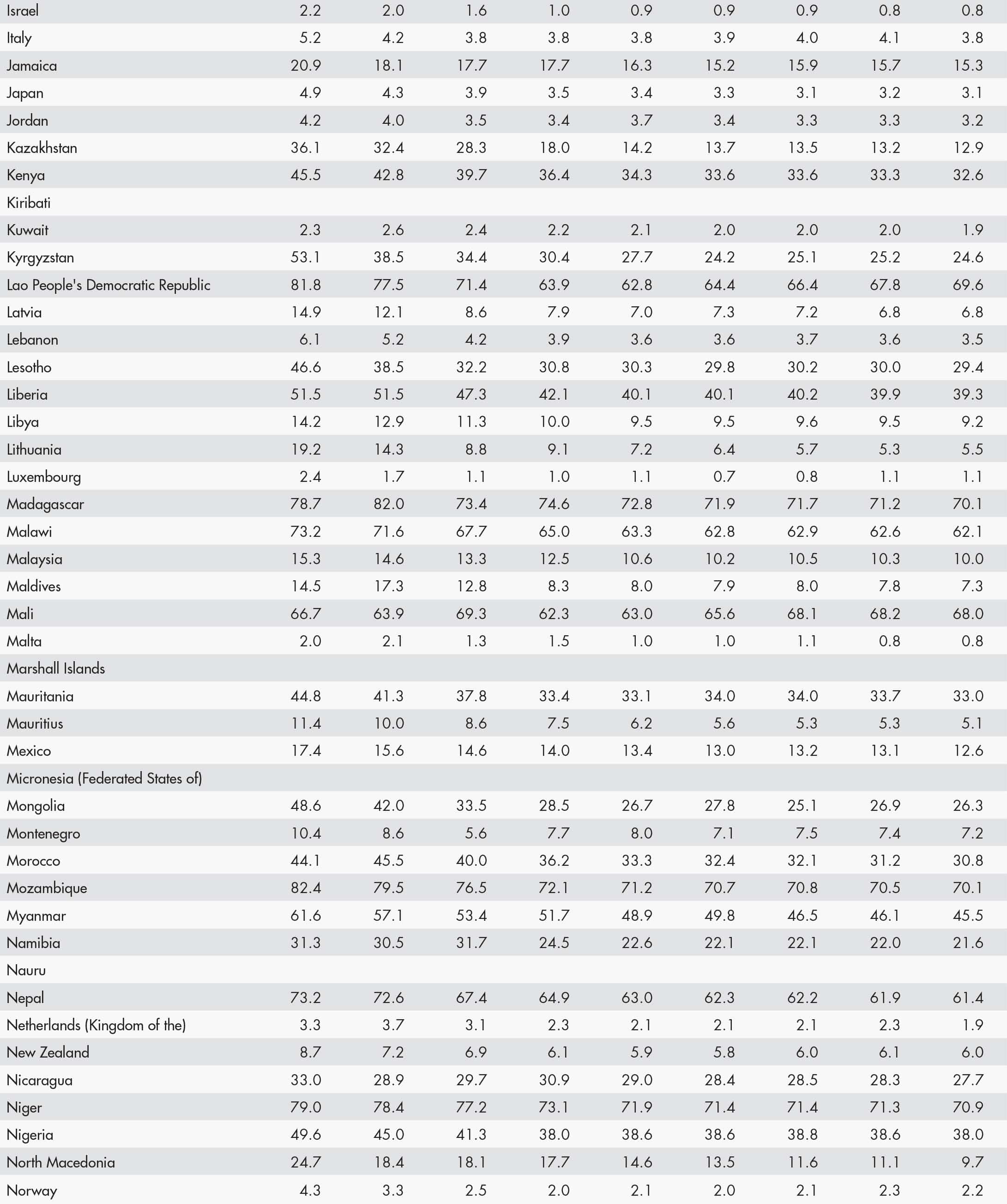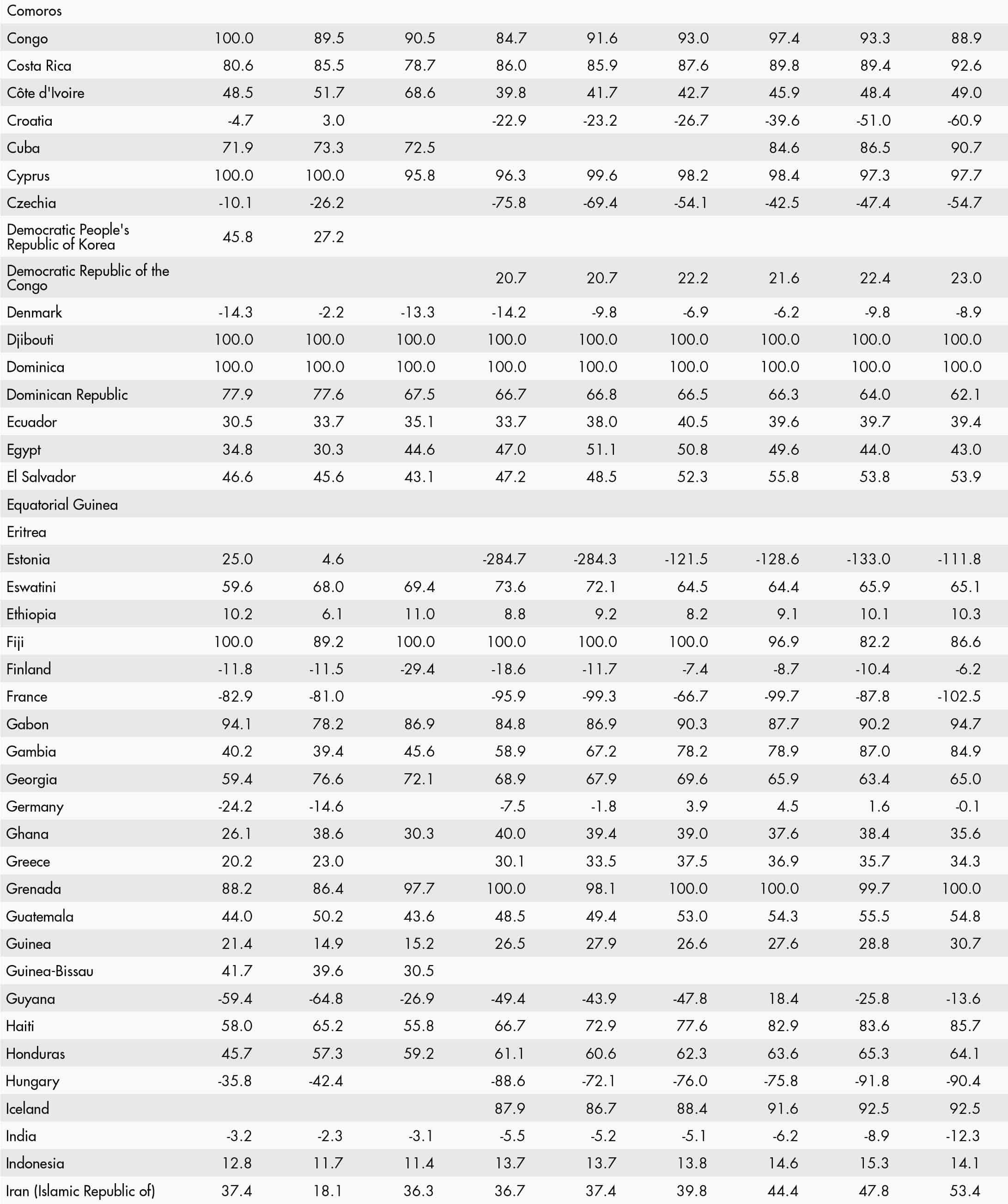 • a blank means that data are not available or that aggregates cannot be calculated because of missing data for the years shown;