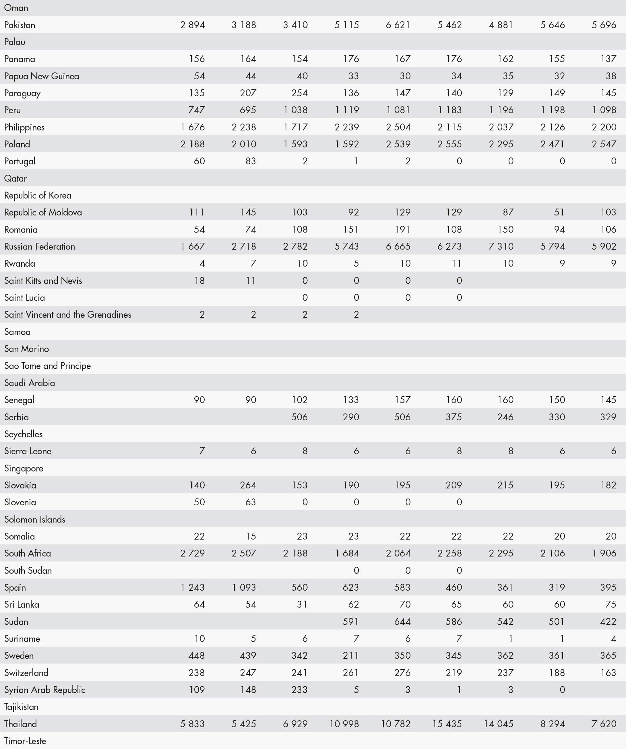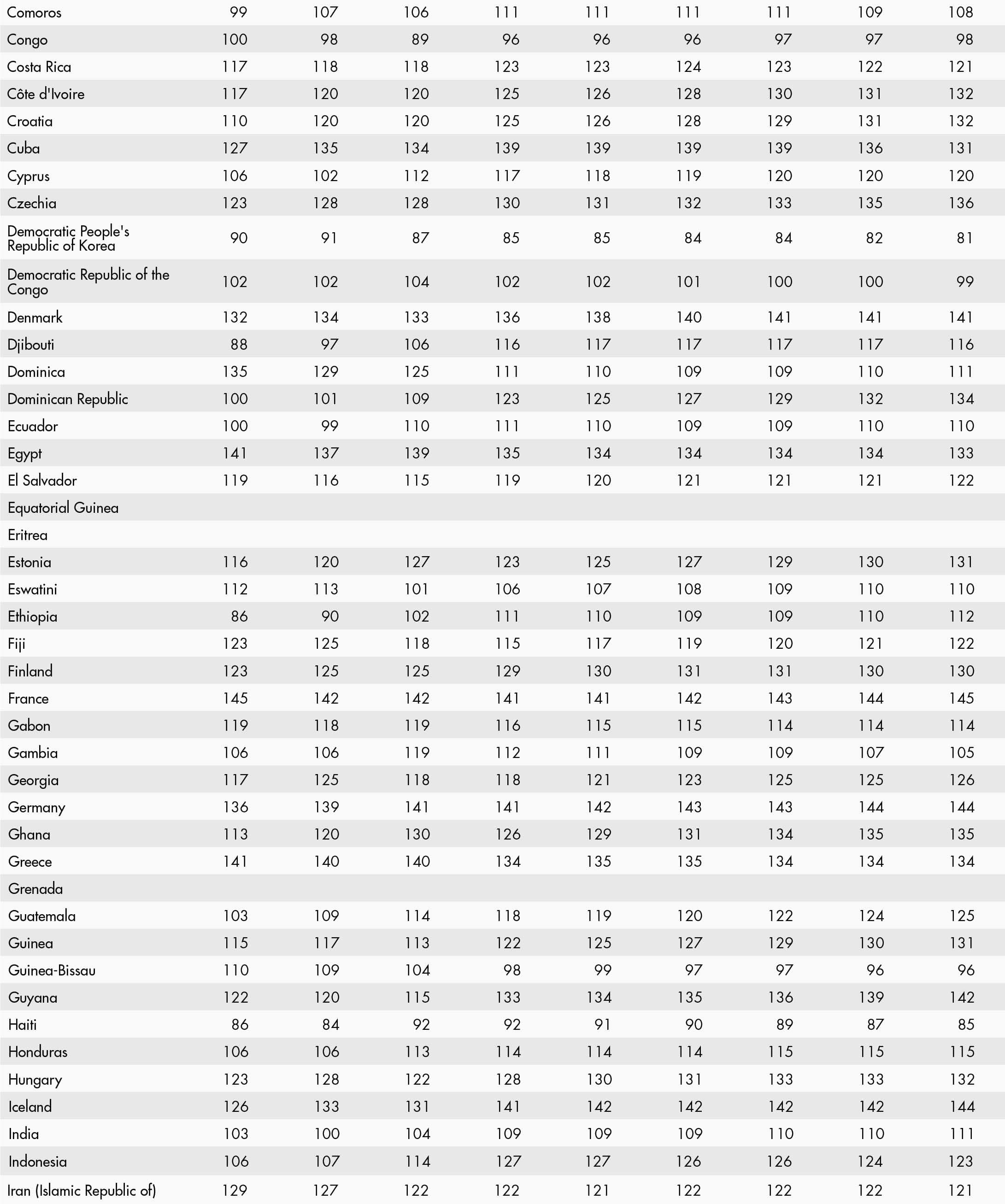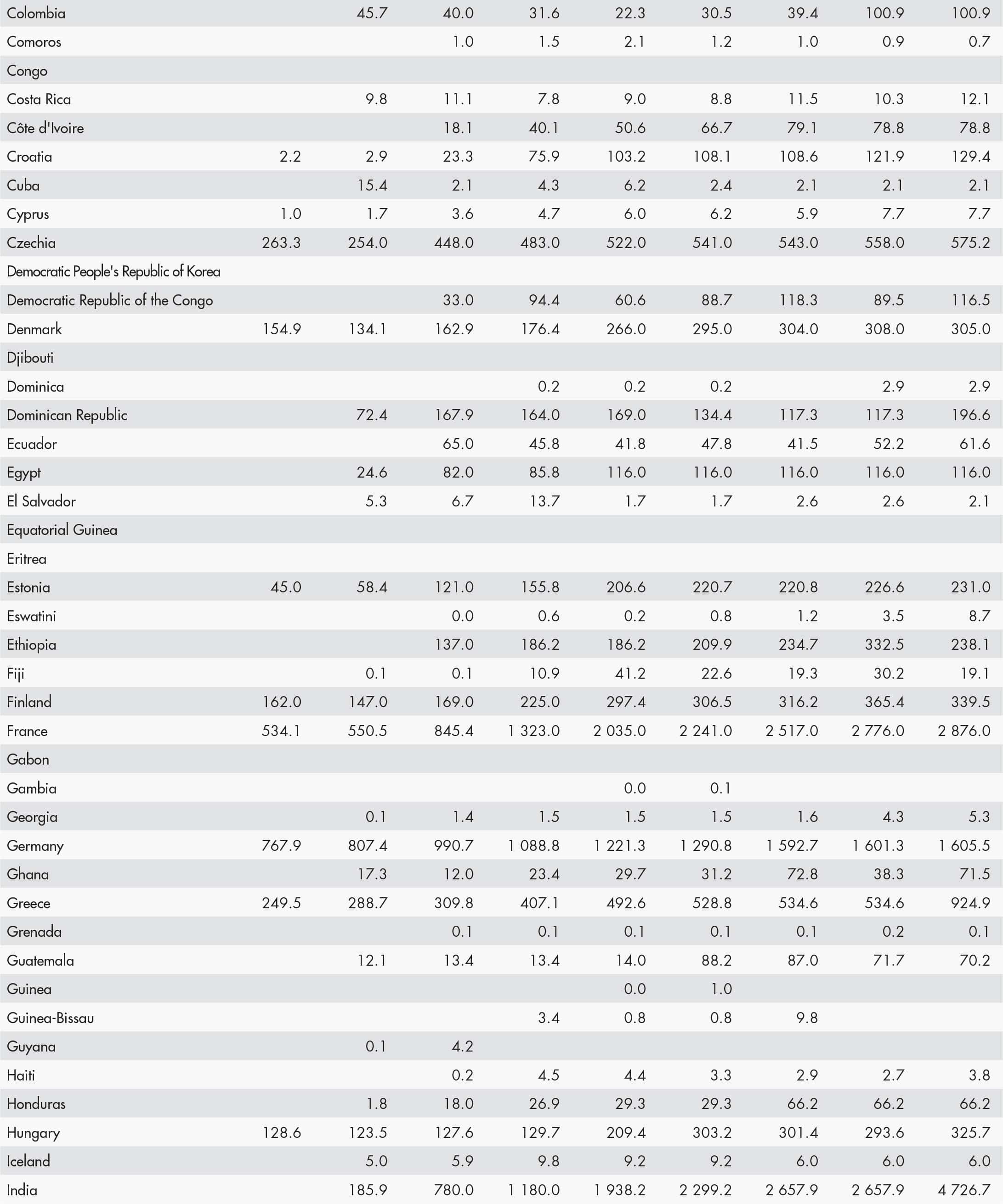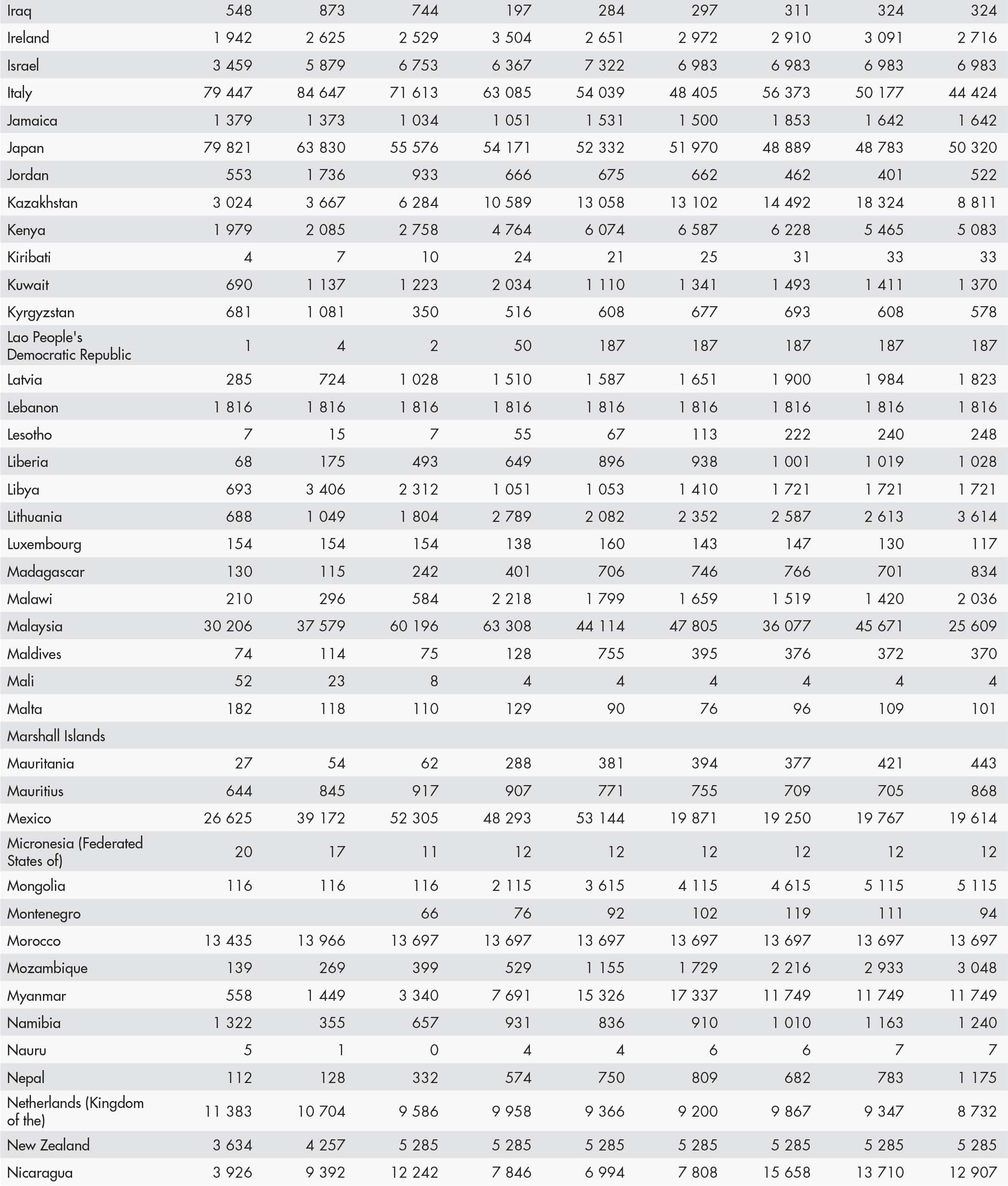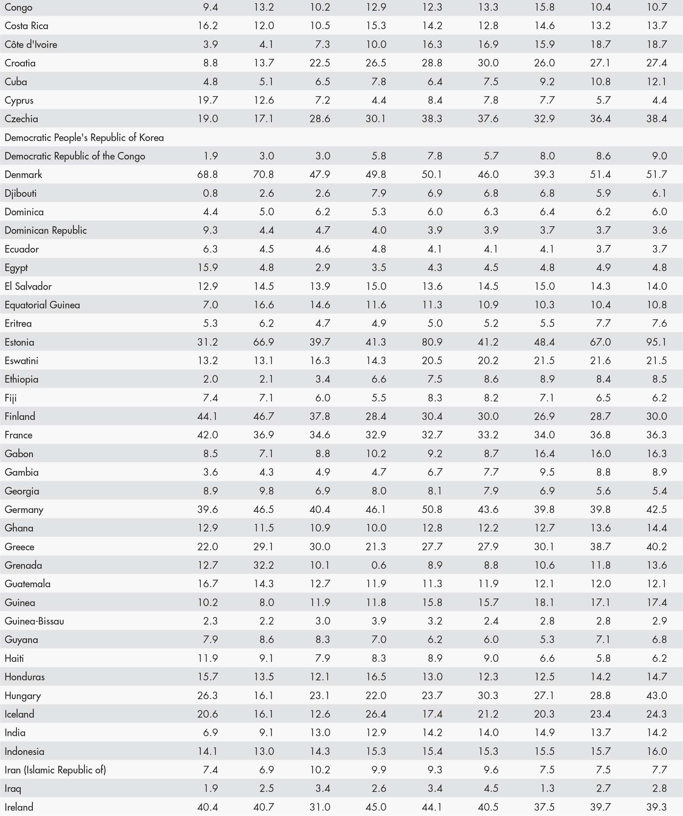• a blank means that data are not available or that aggregates cannot be calculated because of missing data for the years shown;
