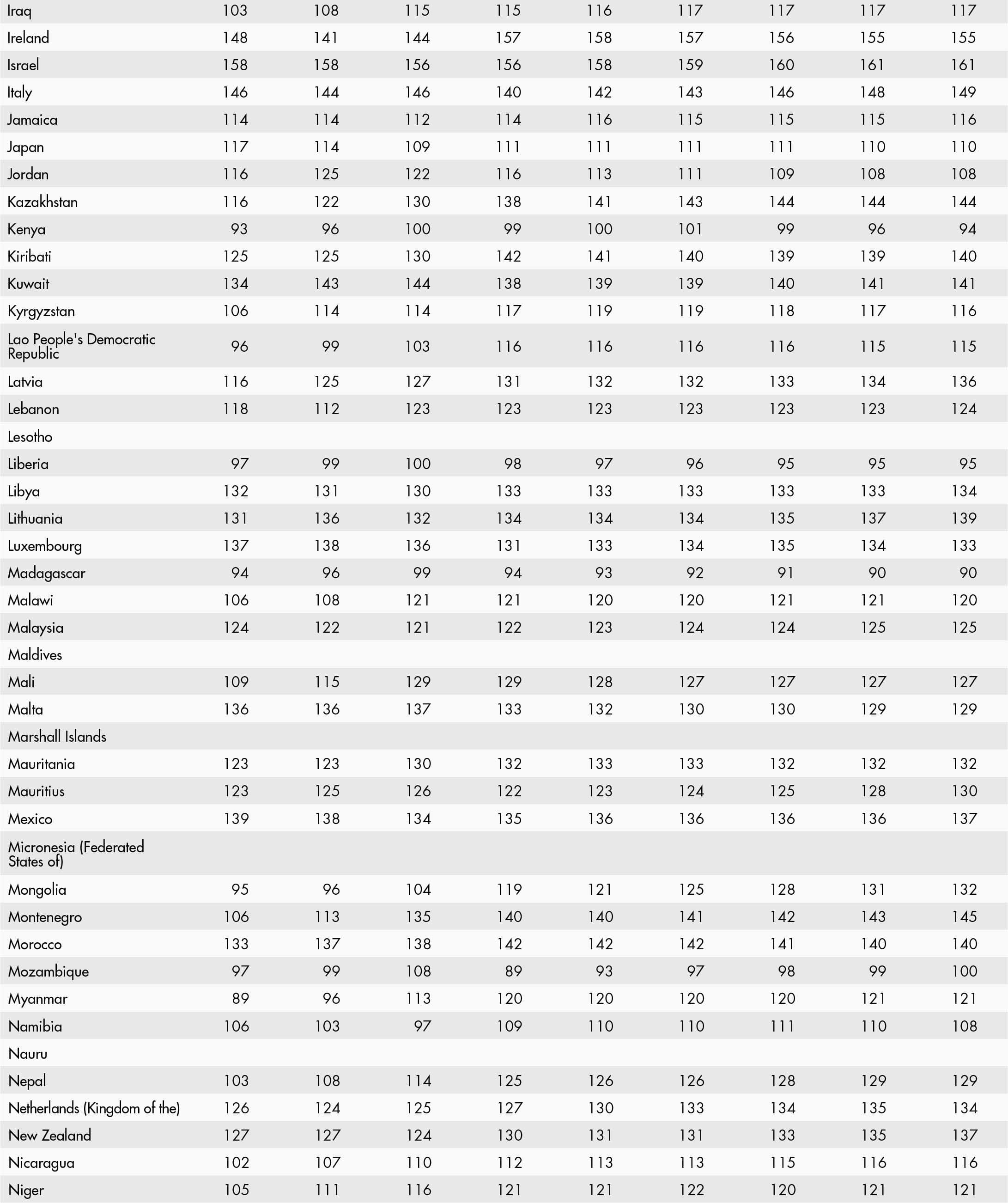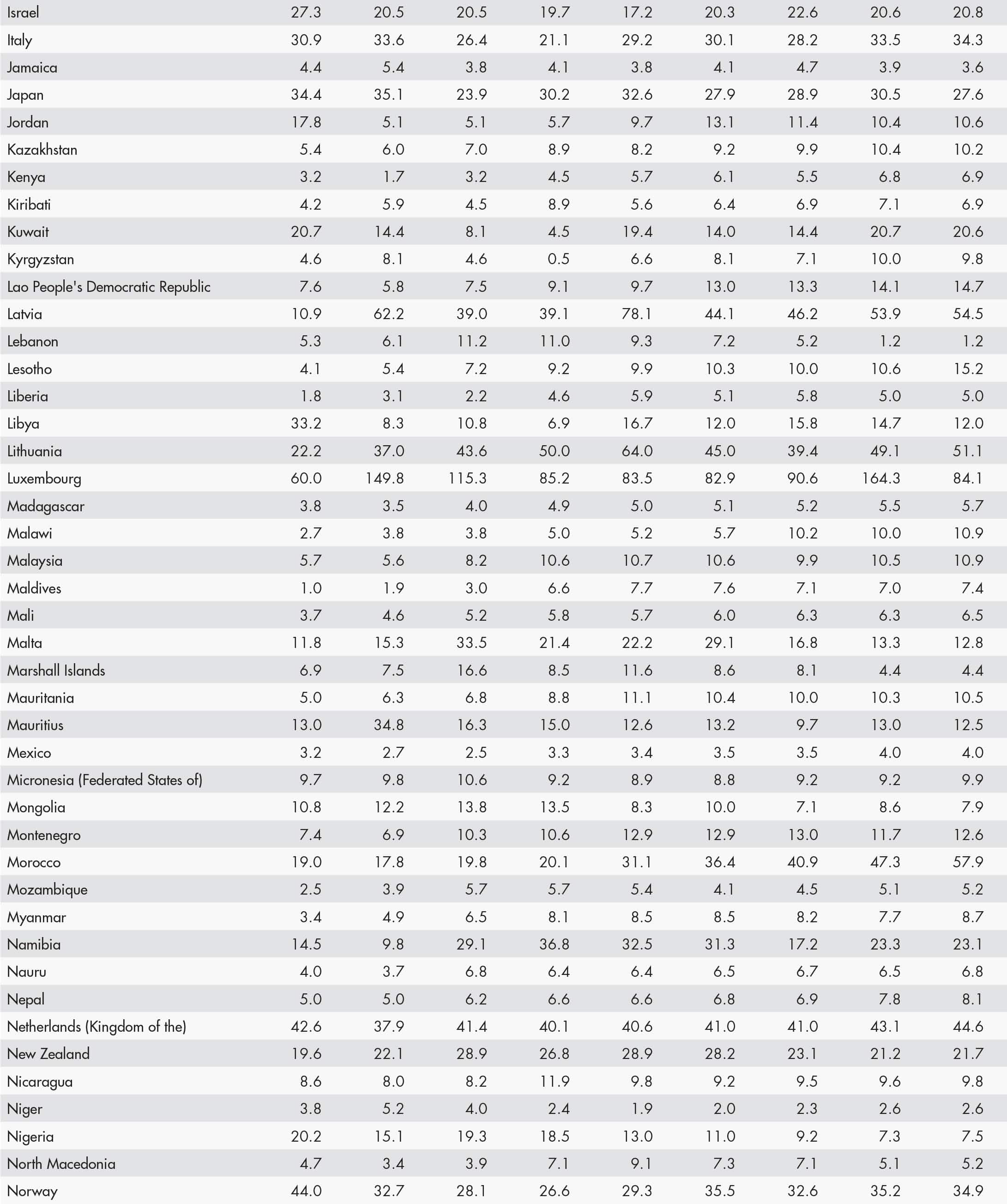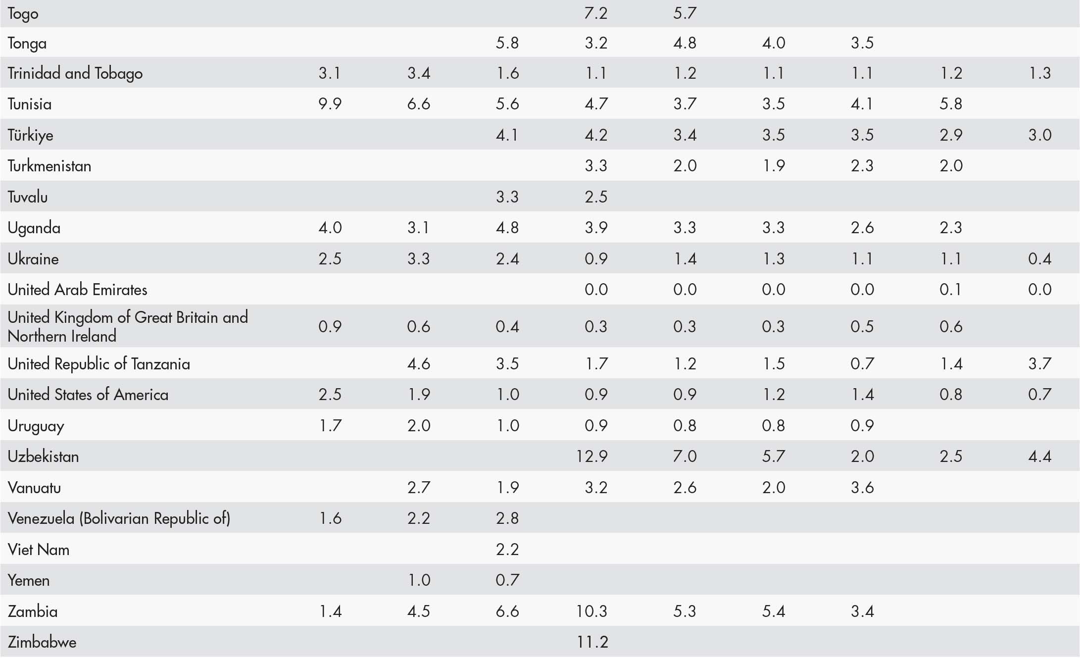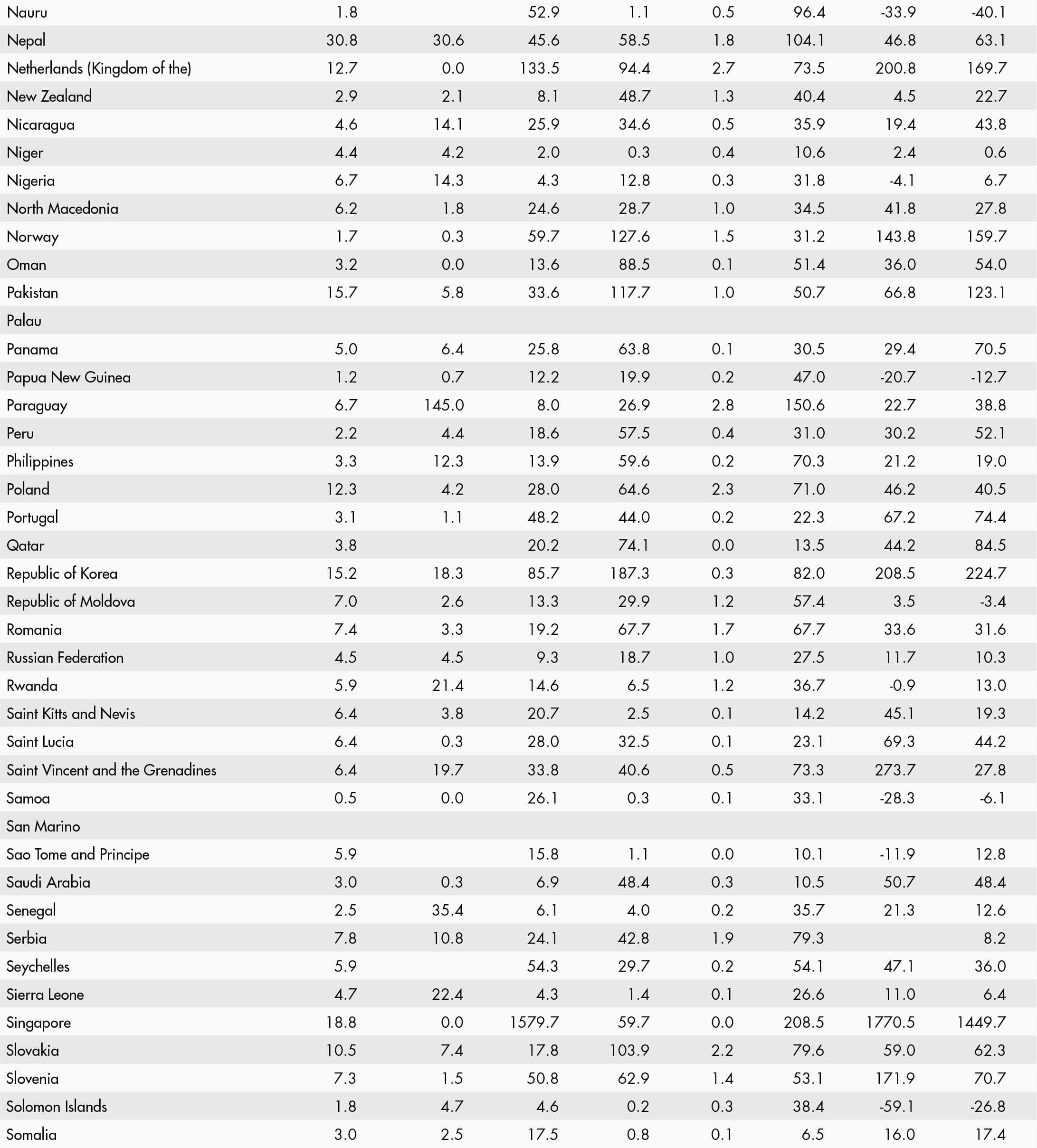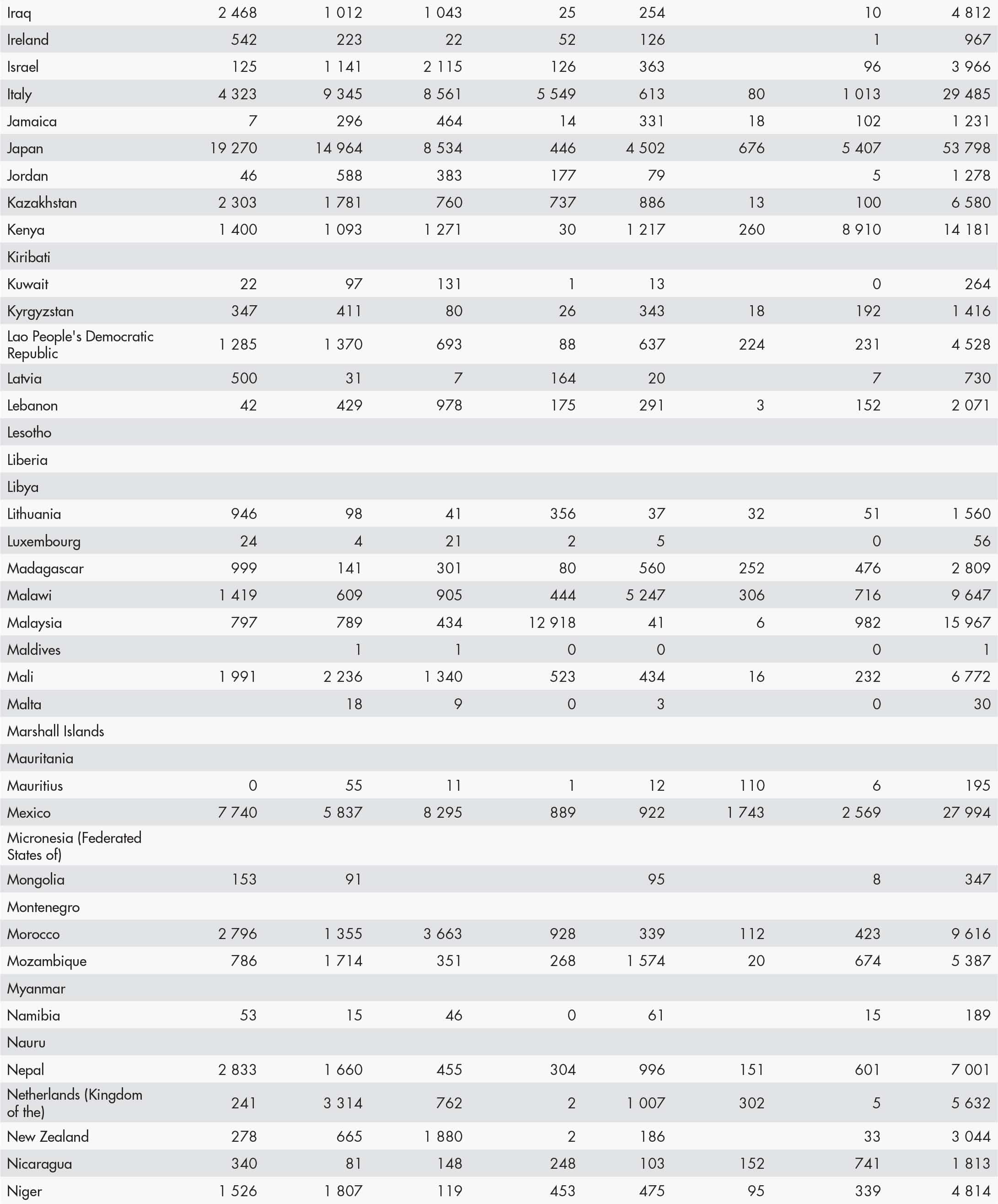 • a blank means that data are not available or that aggregates cannot be calculated because of missing data for the years shown;