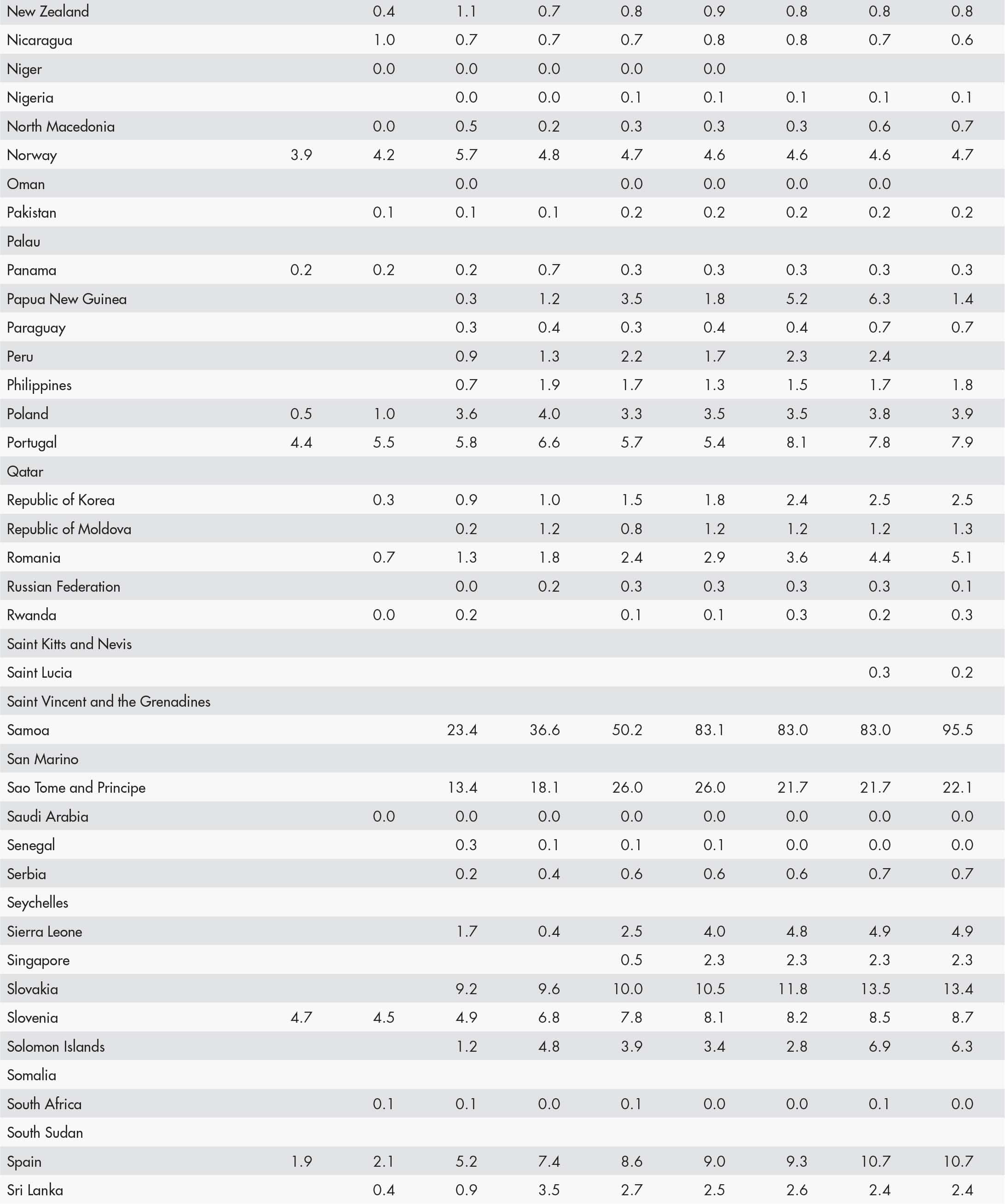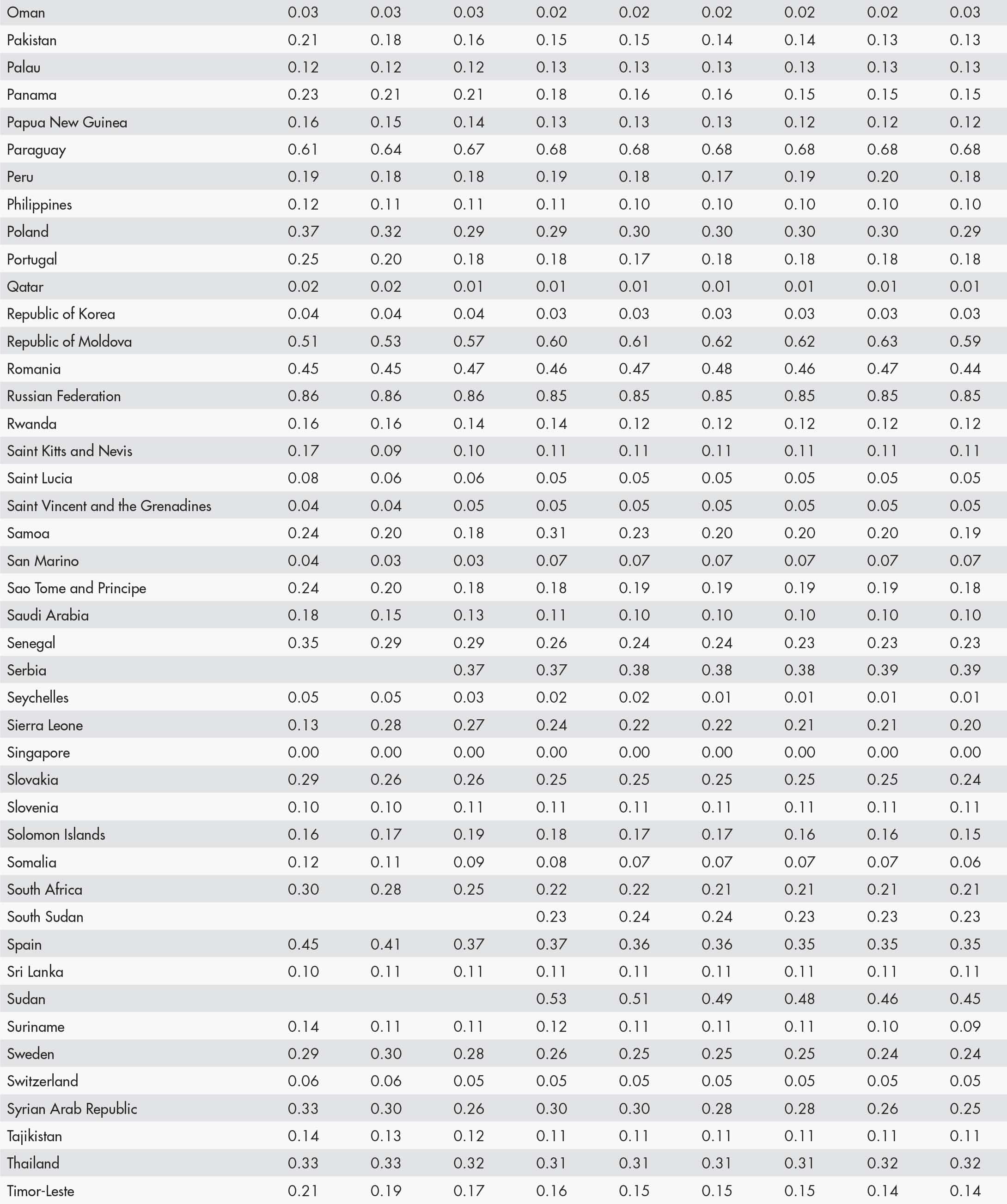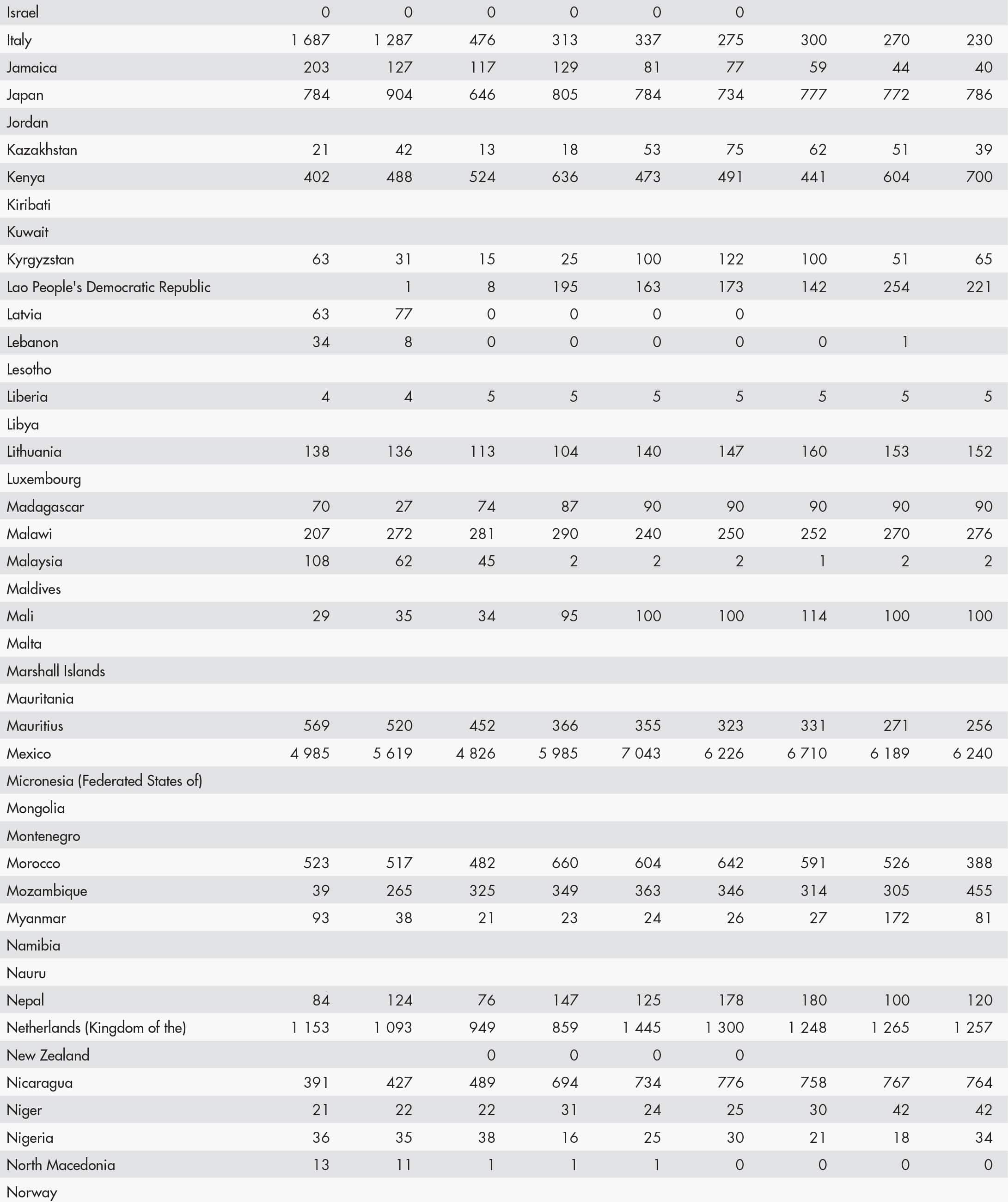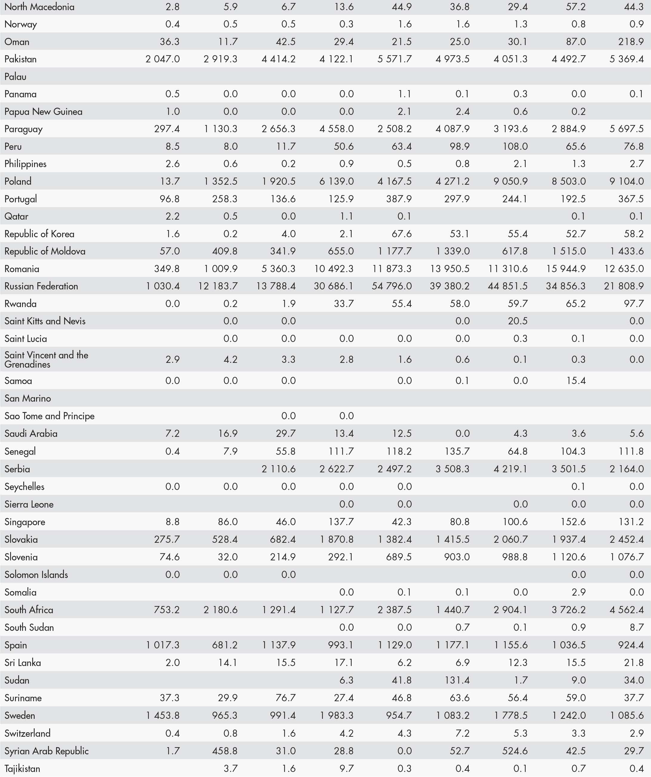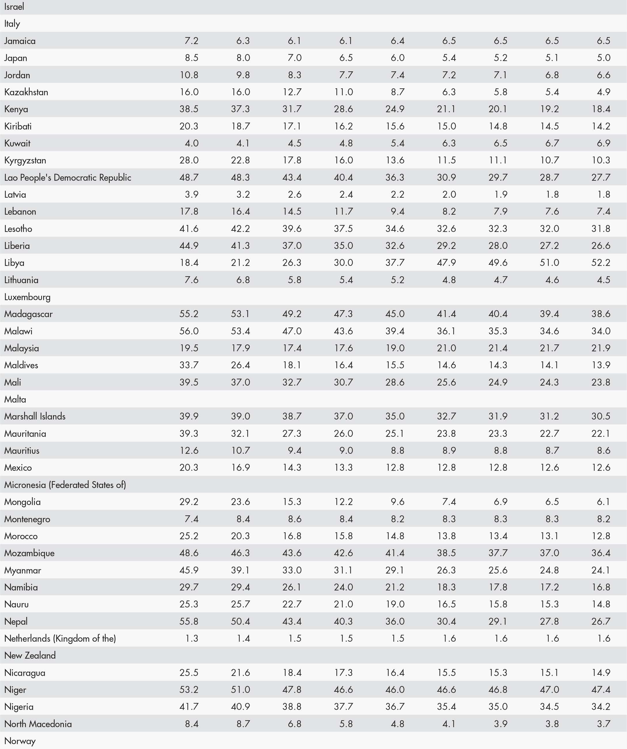 • a blank means that data are not available or that aggregates cannot be calculated because of missing data for the years shown;