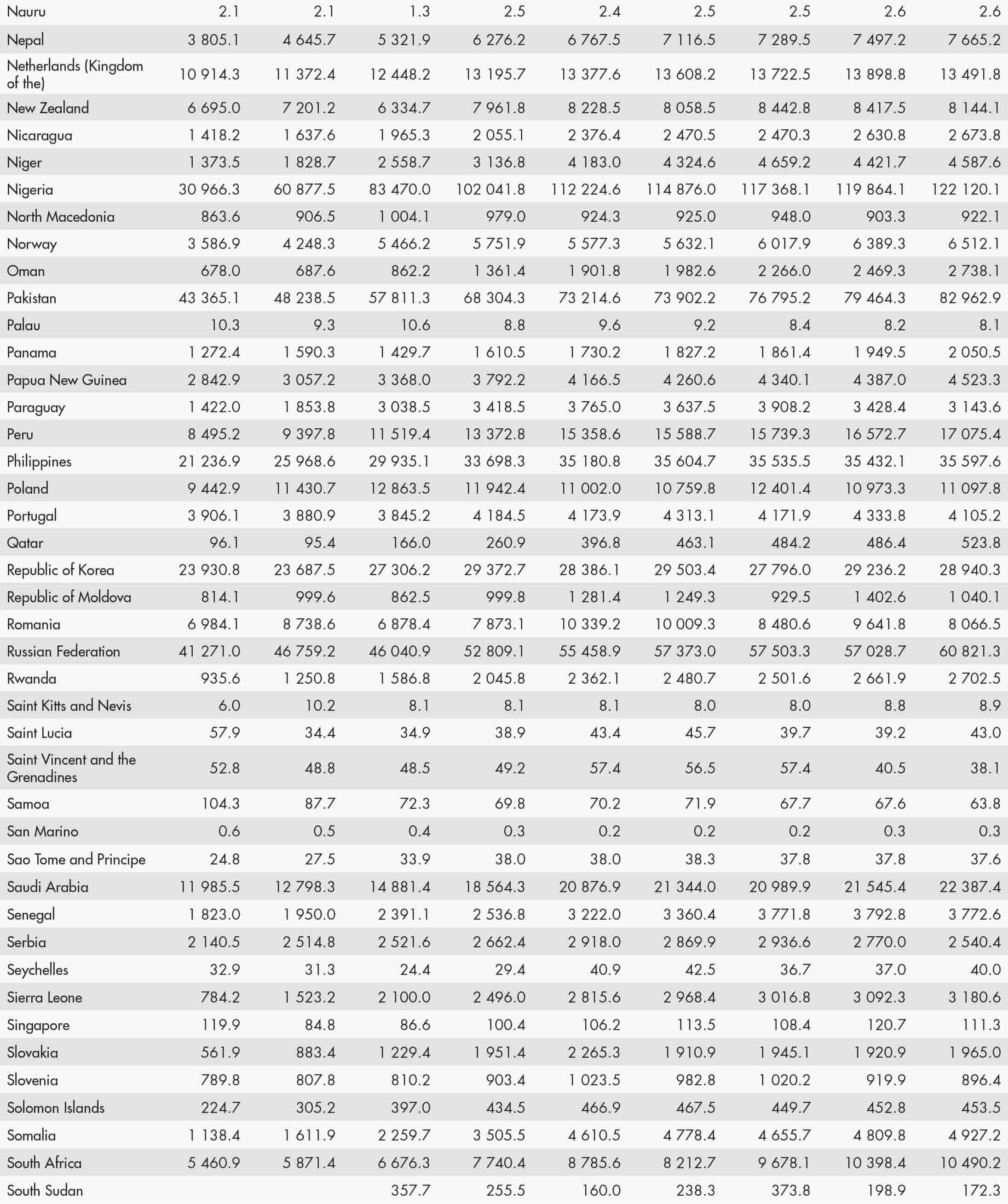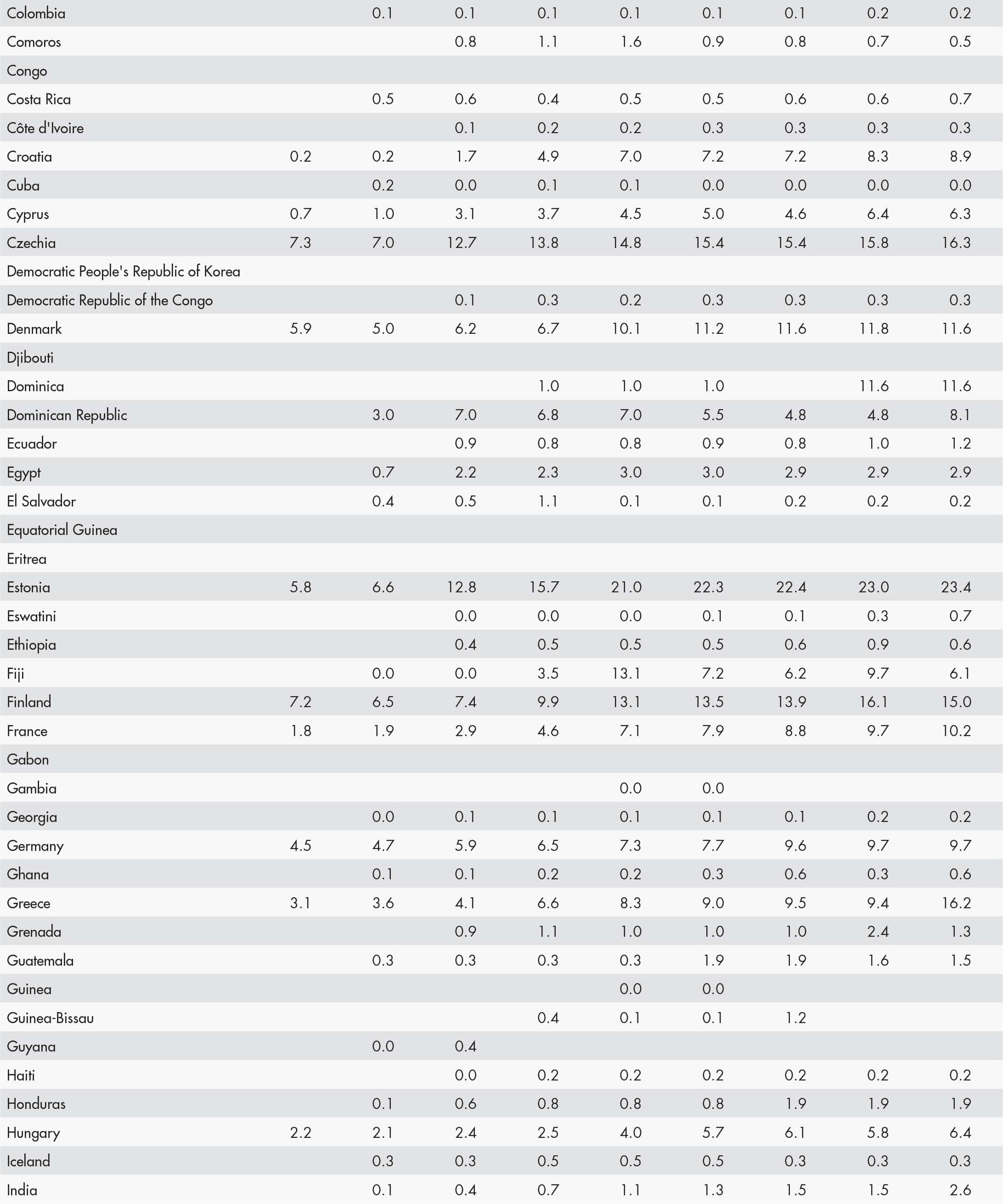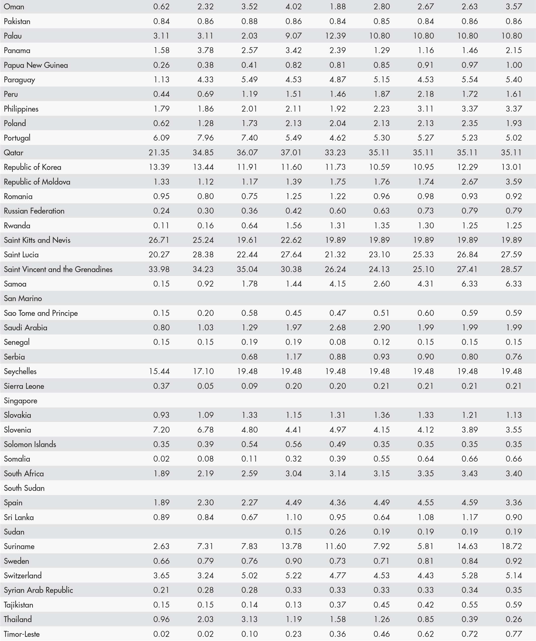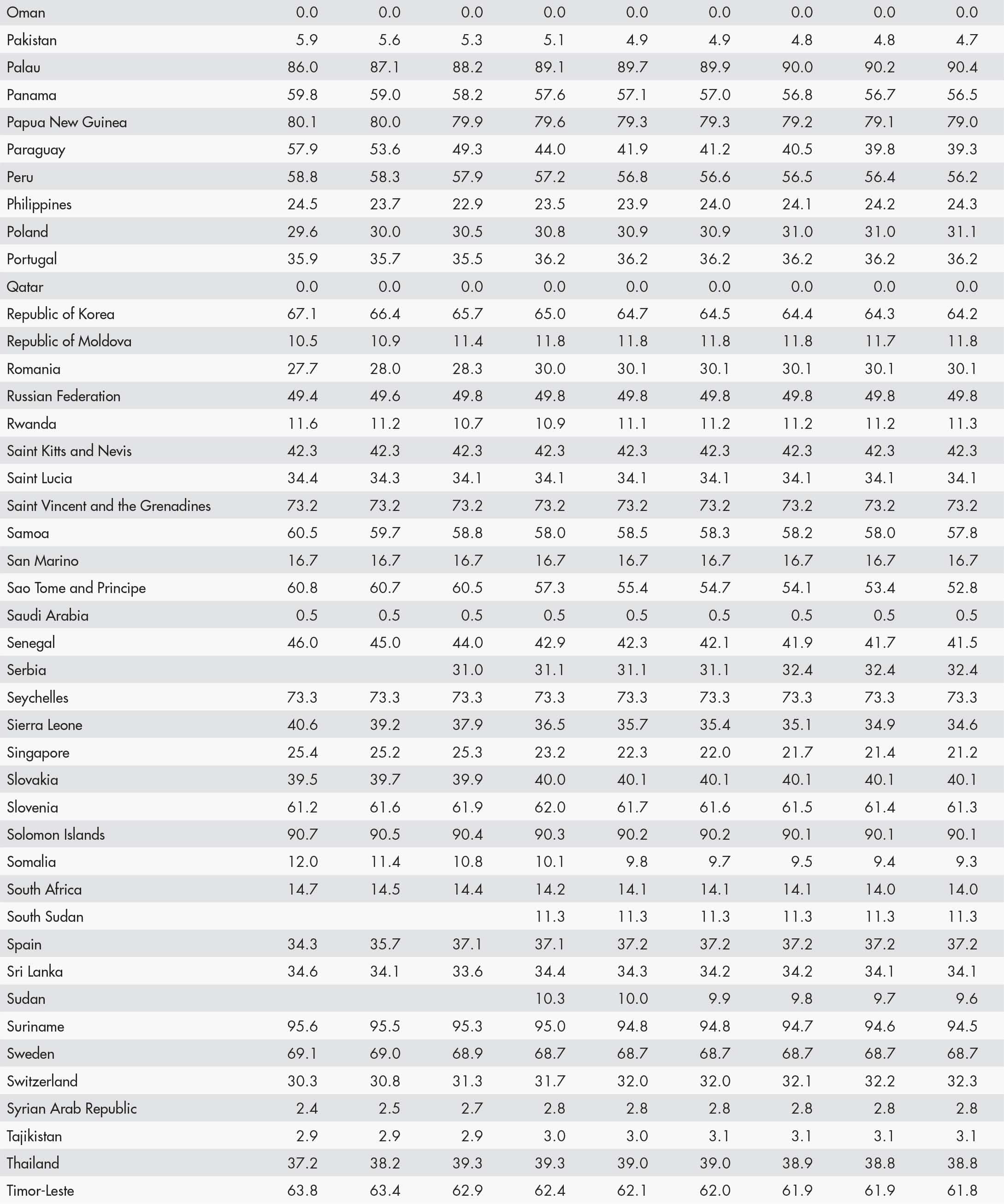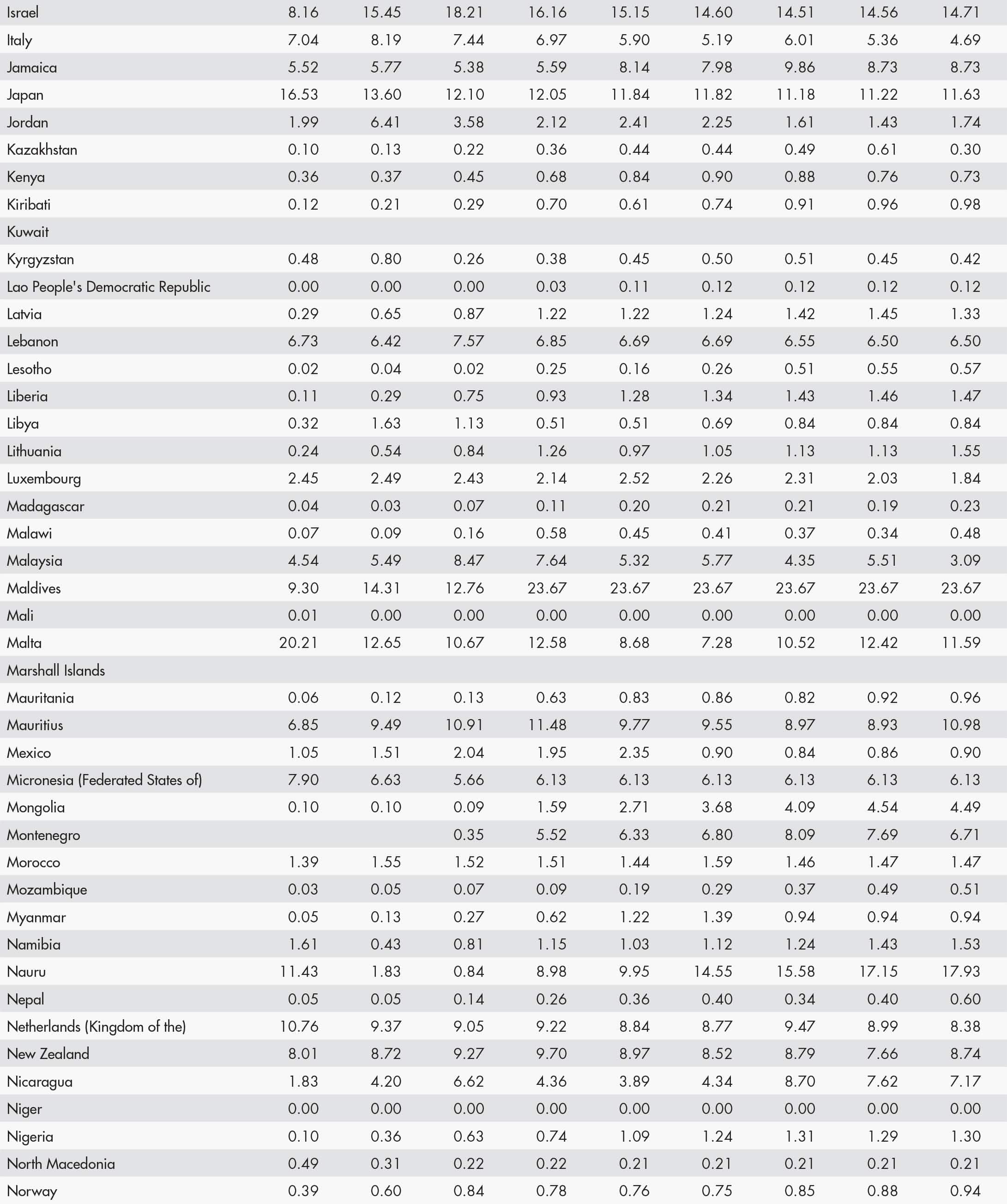 • a blank means that data are not available or that aggregates cannot be calculated because of missing data for the years shown;