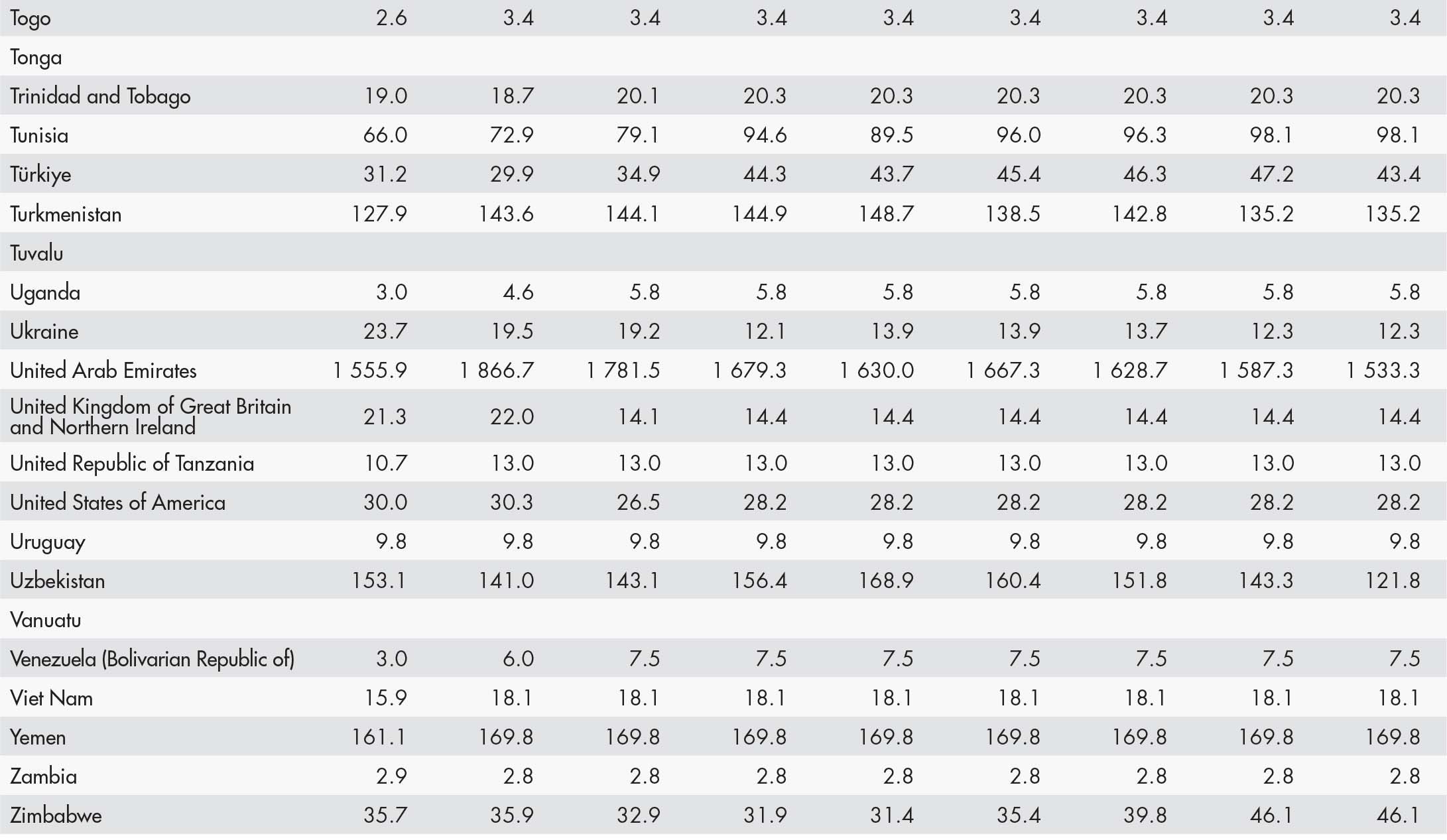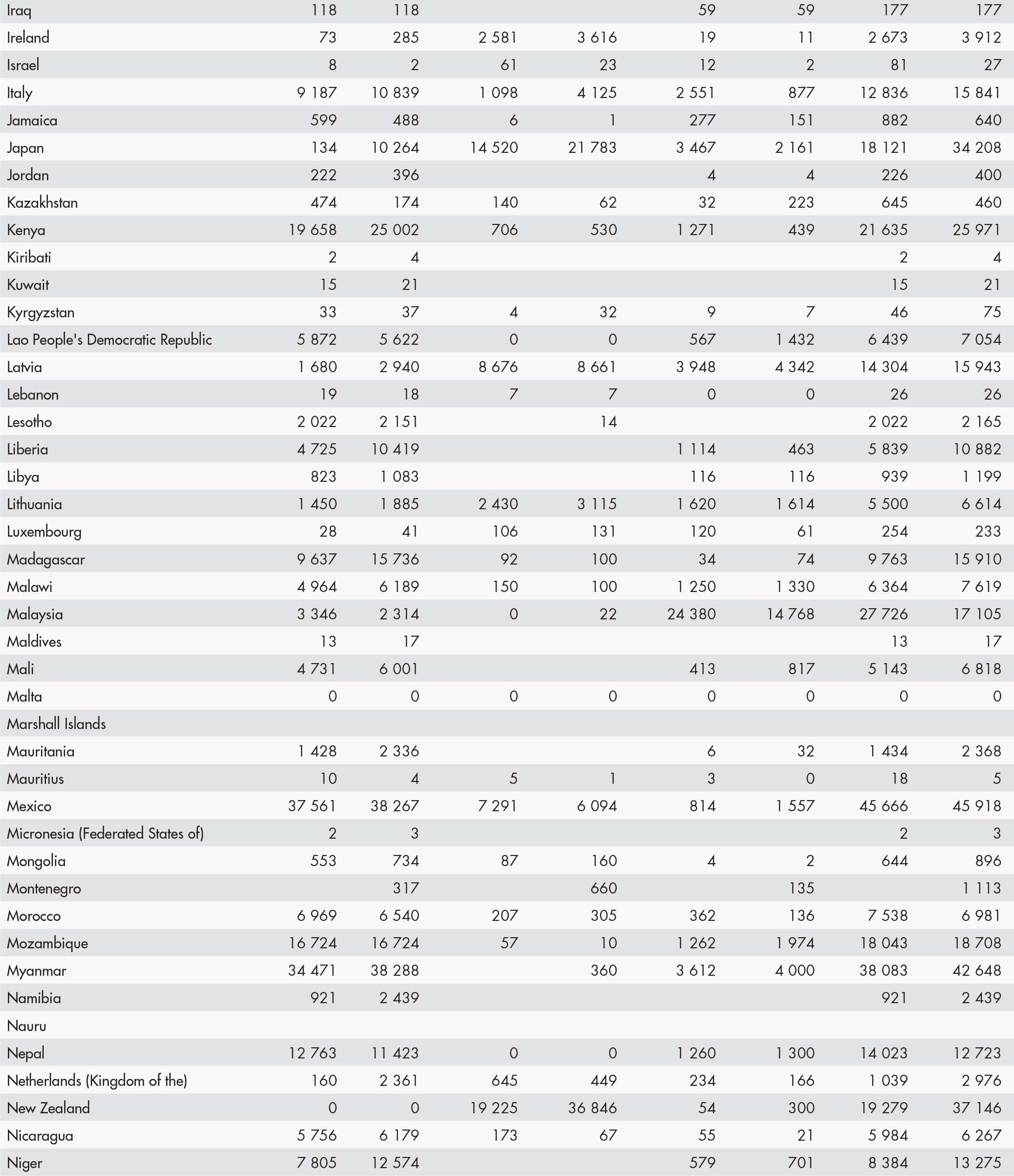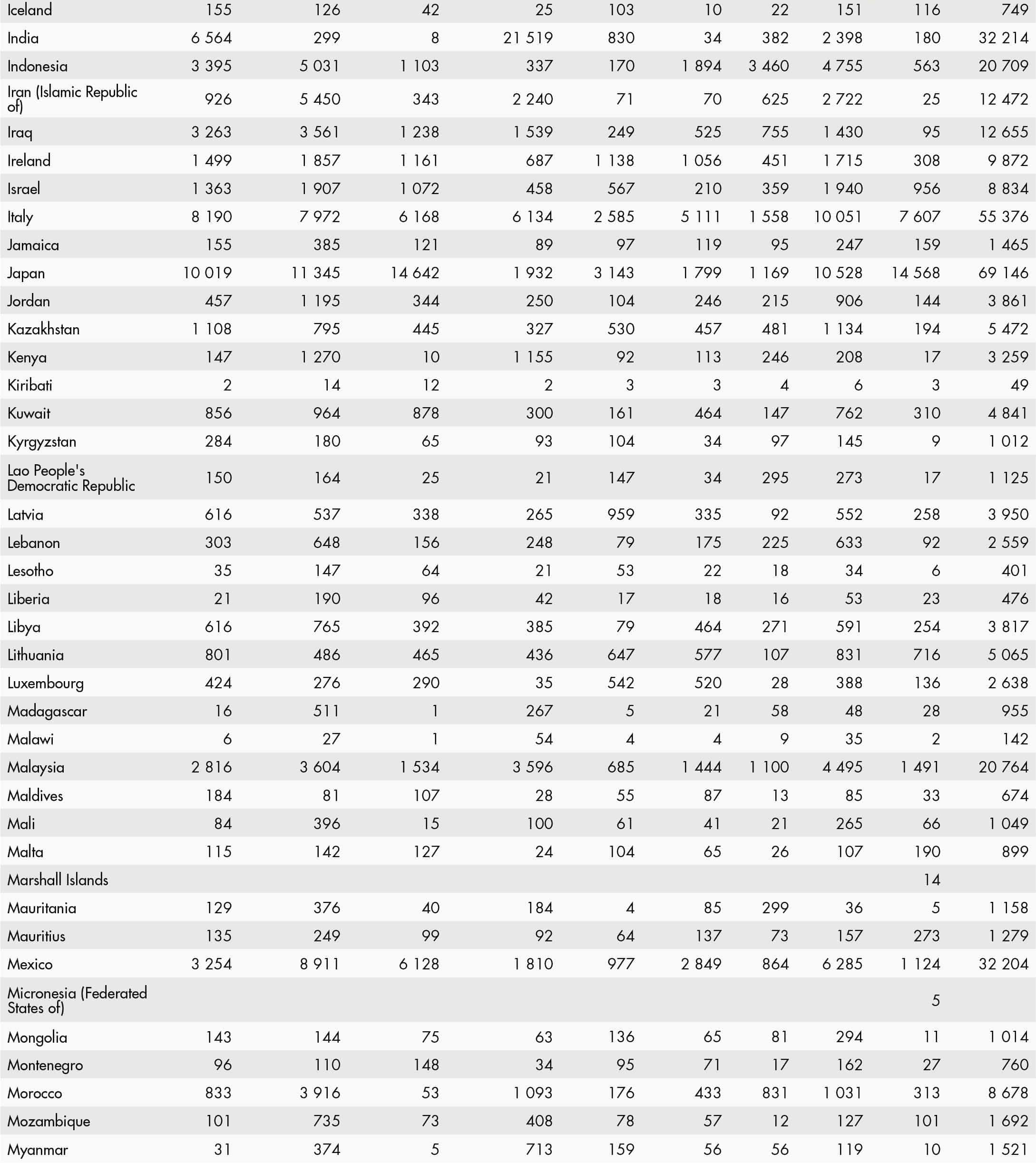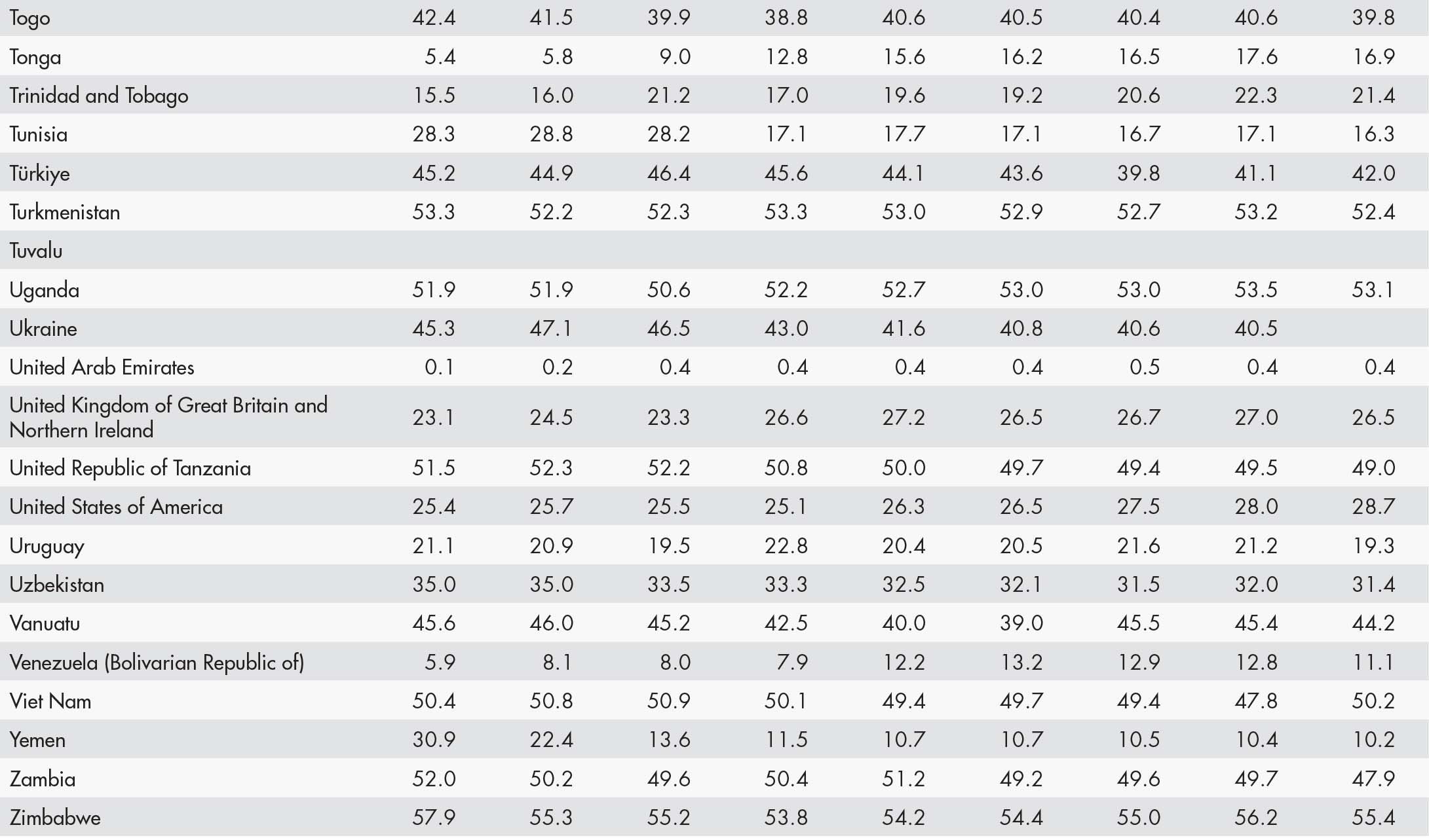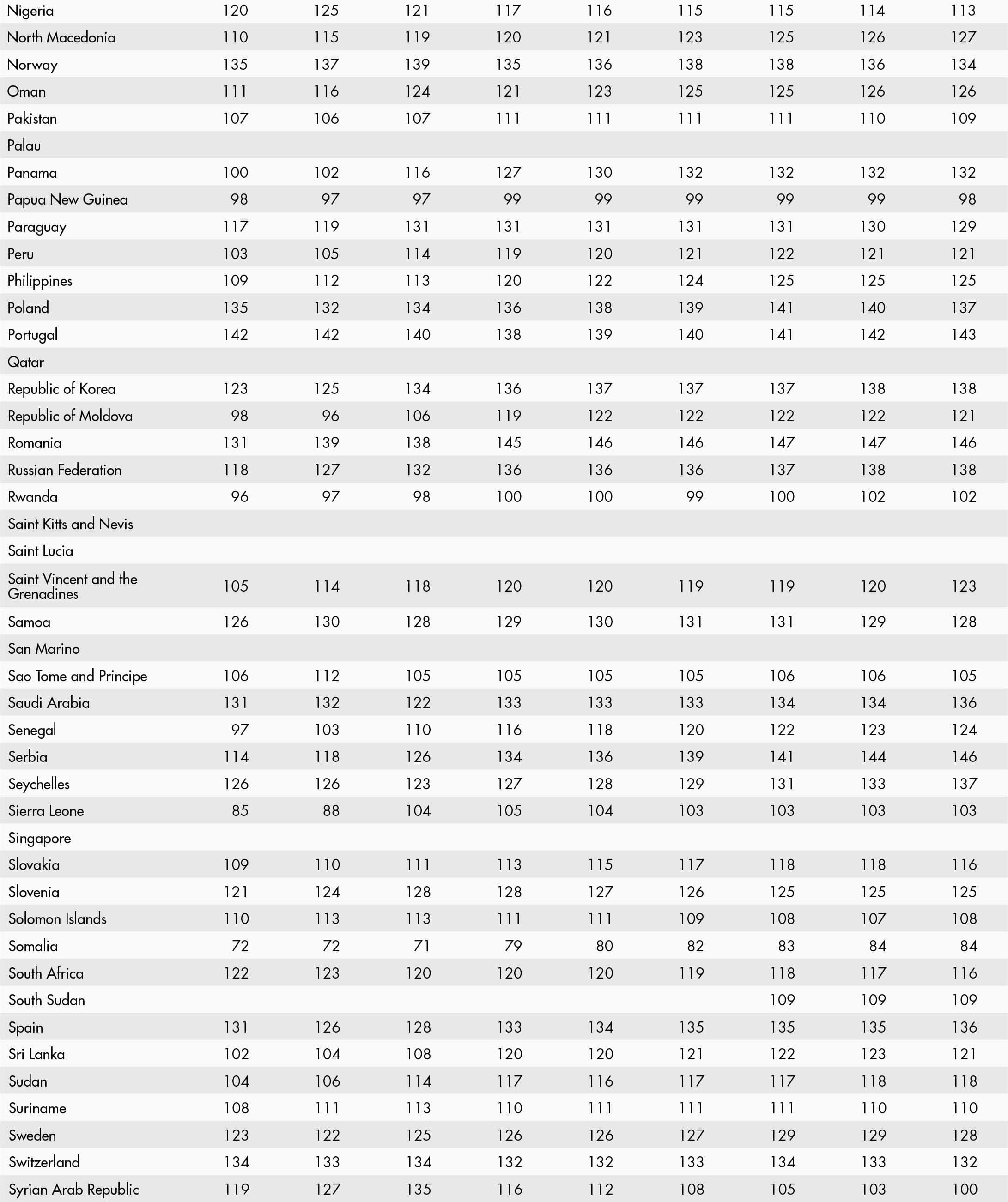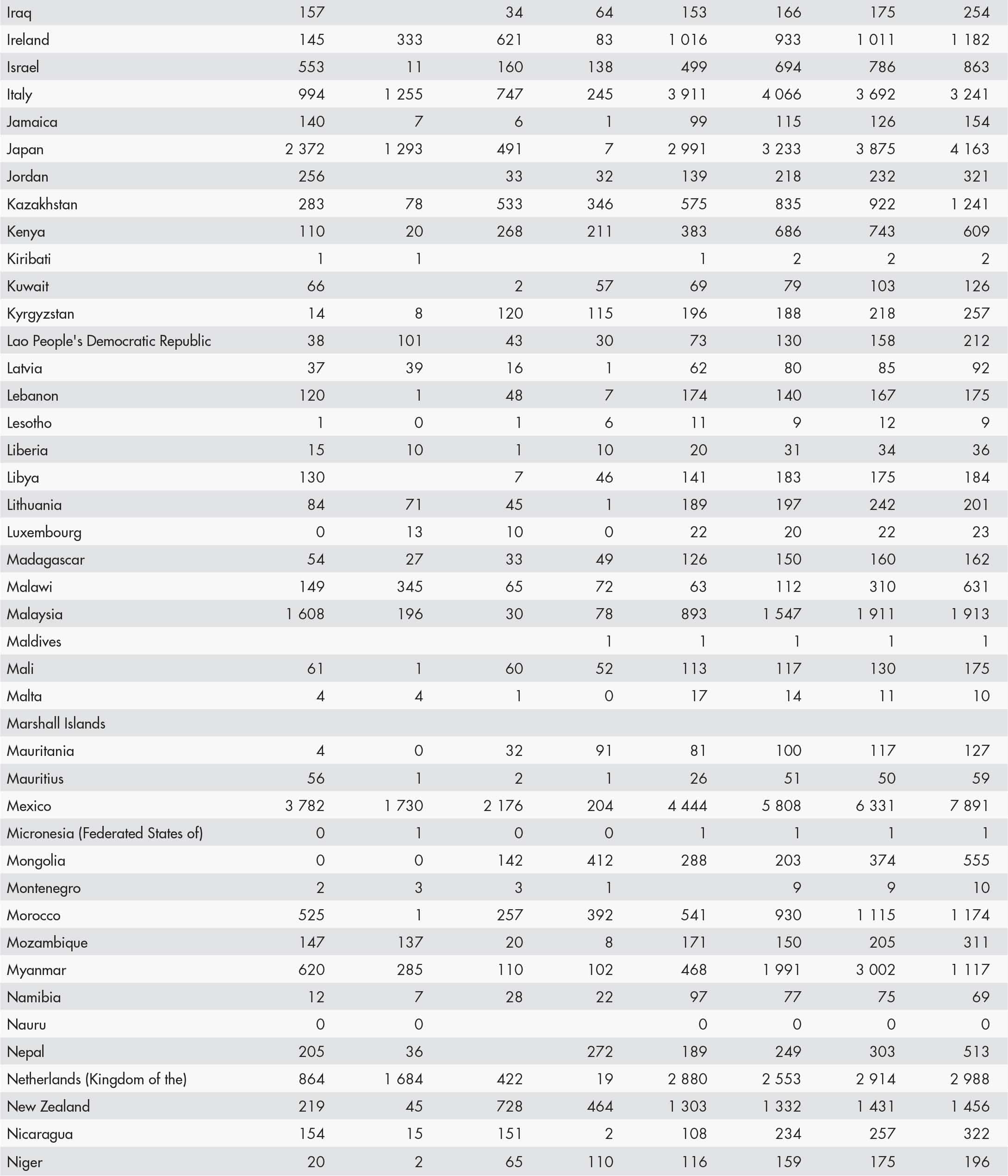 • a blank means that data are not available or that aggregates cannot be calculated because of missing data for the years shown;
