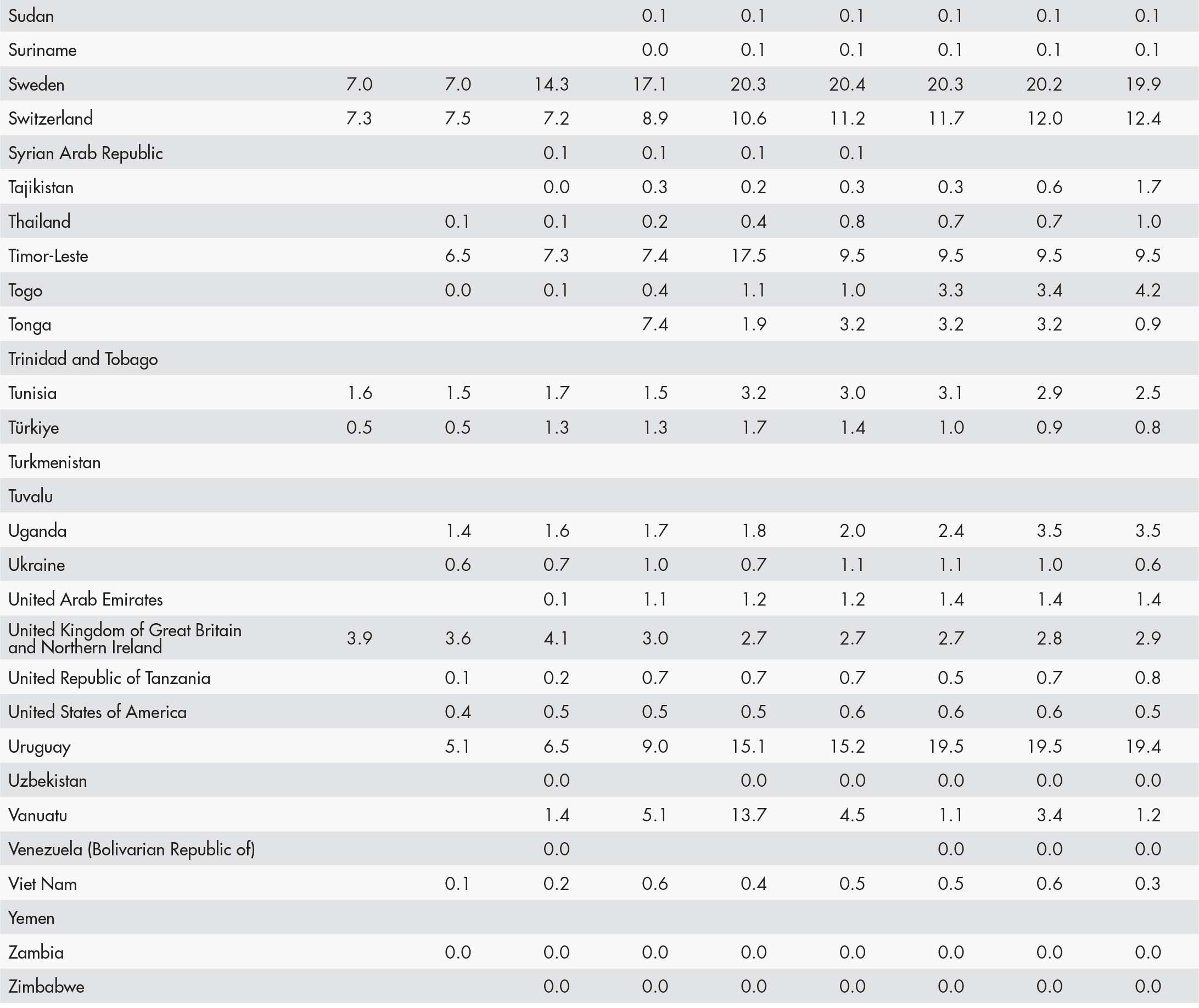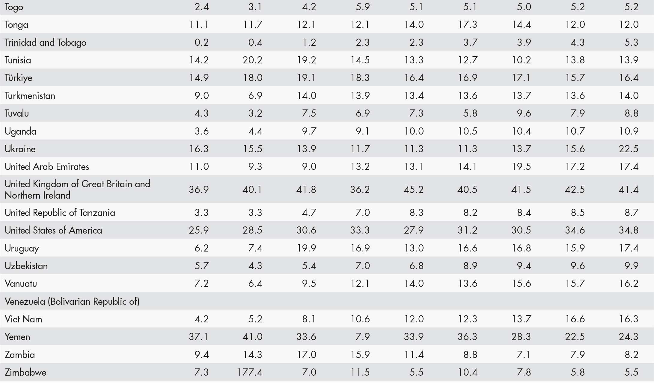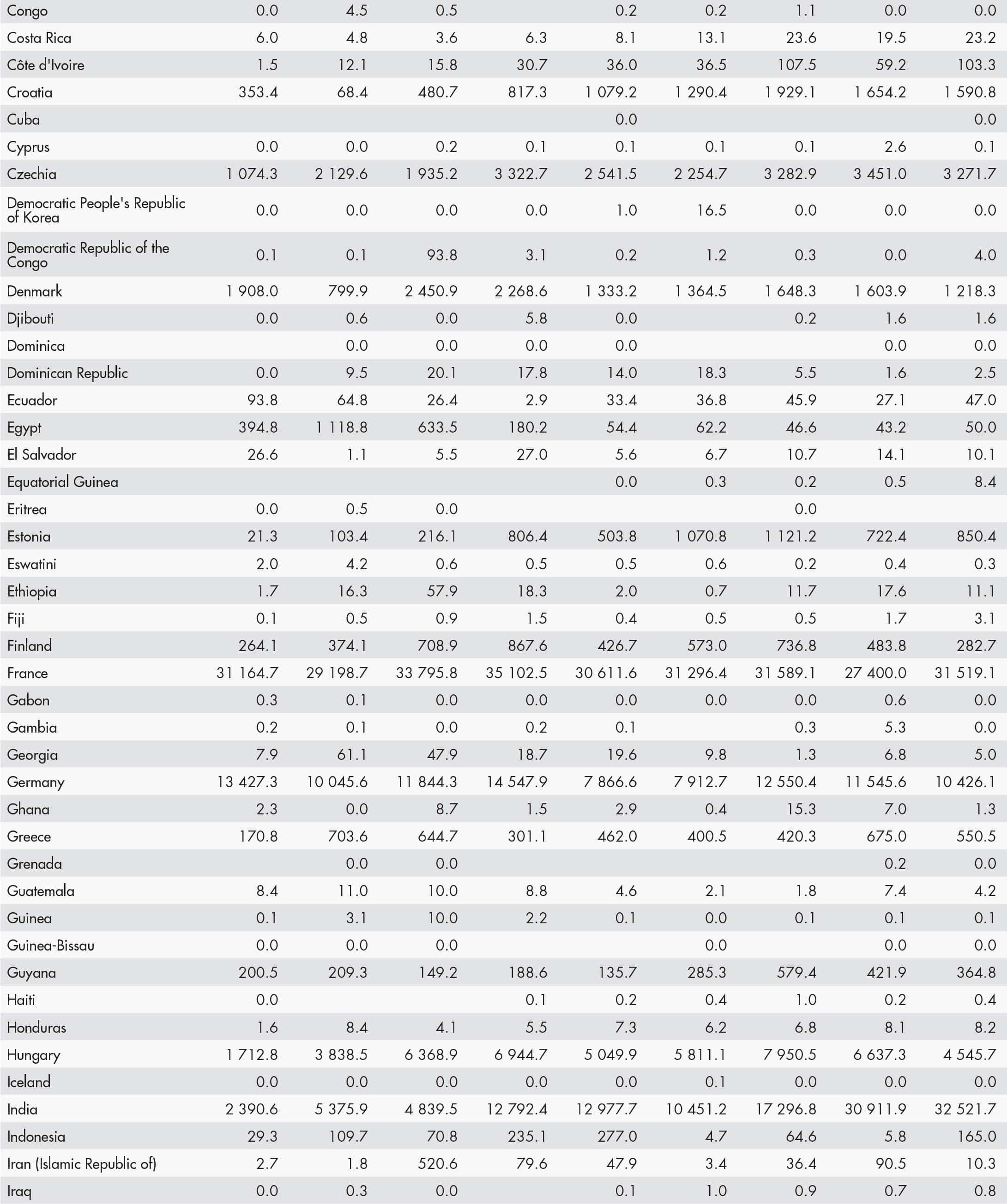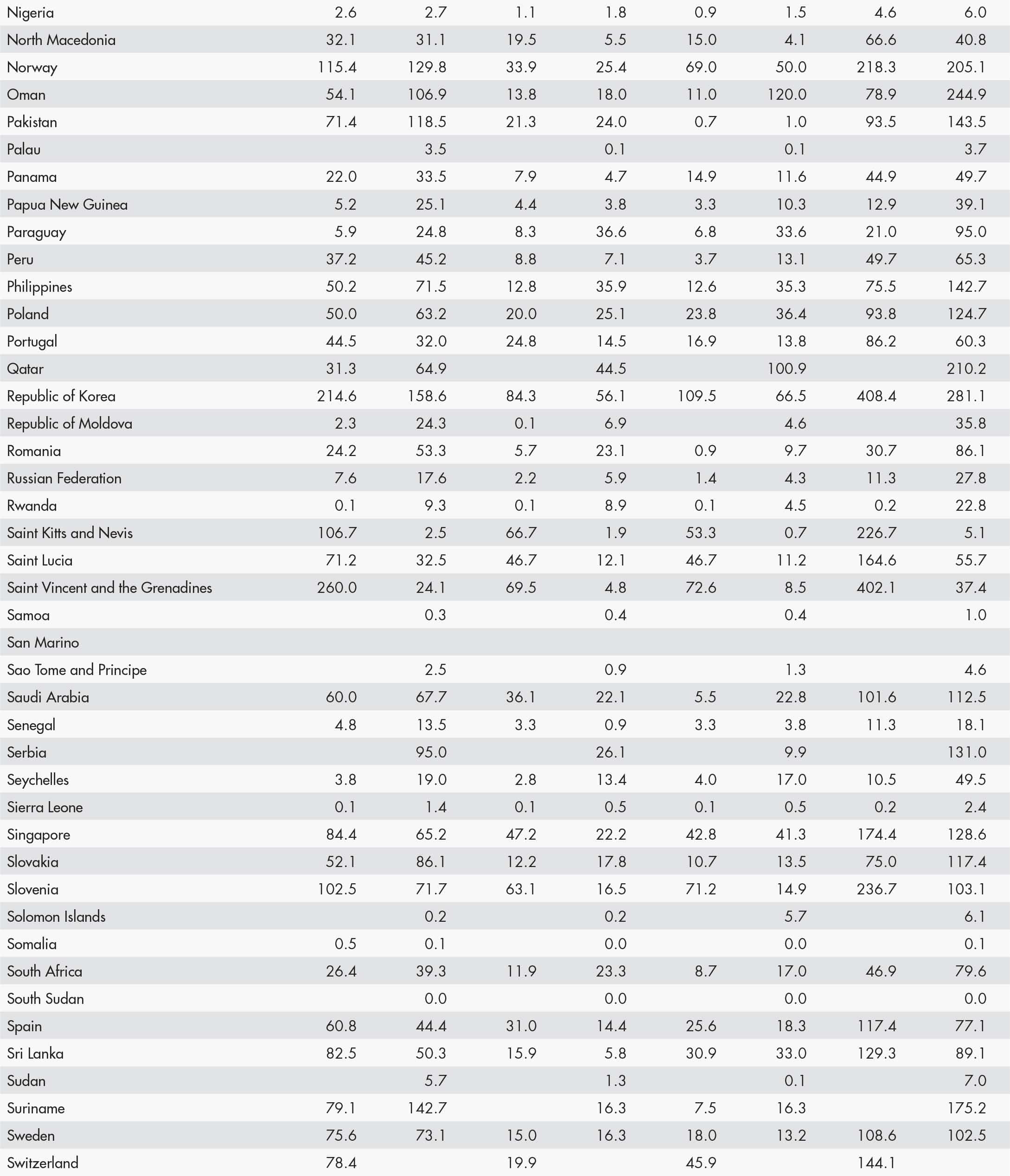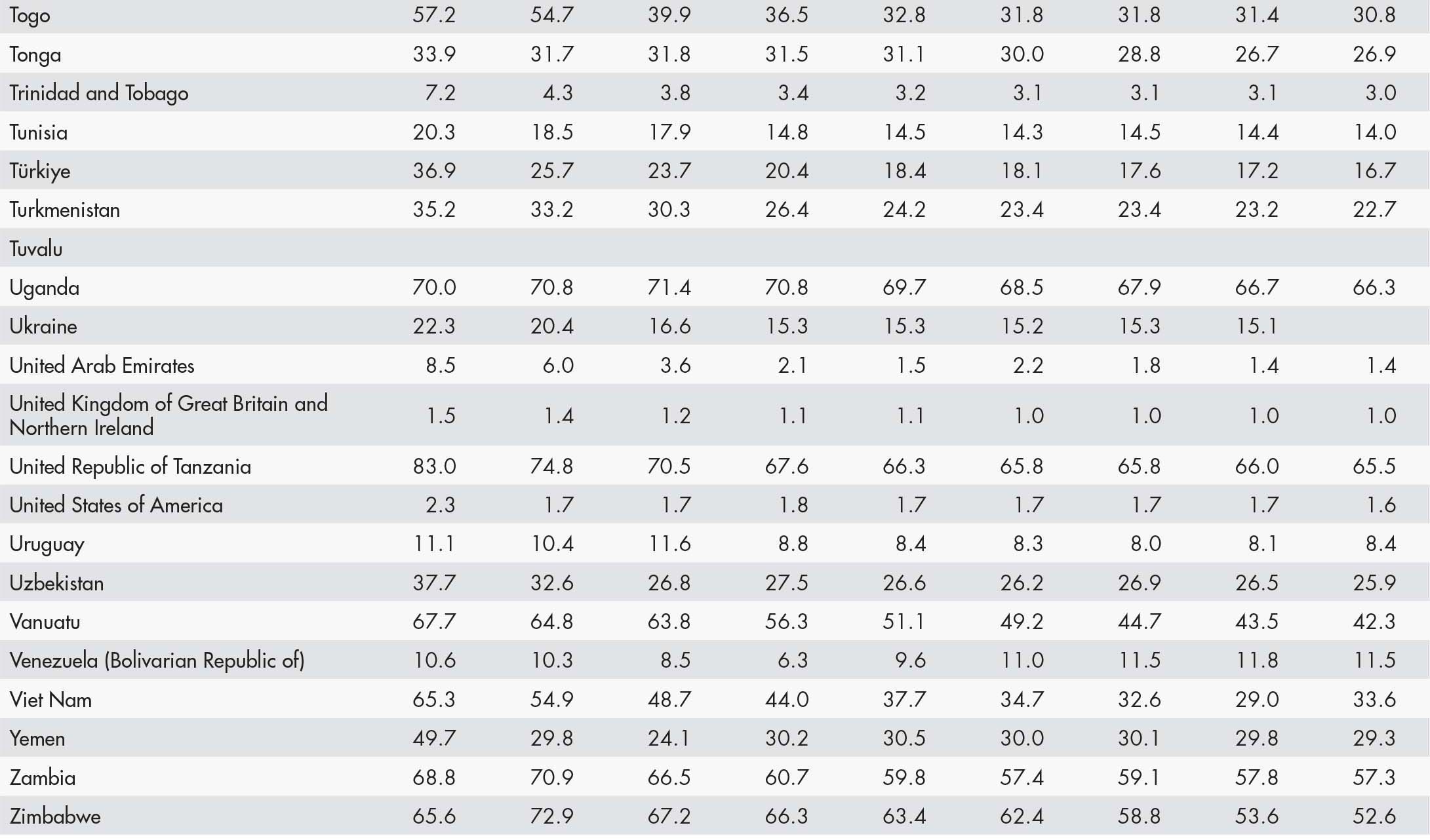 • a blank means that data are not available or that aggregates cannot be calculated because of missing data for the years shown;