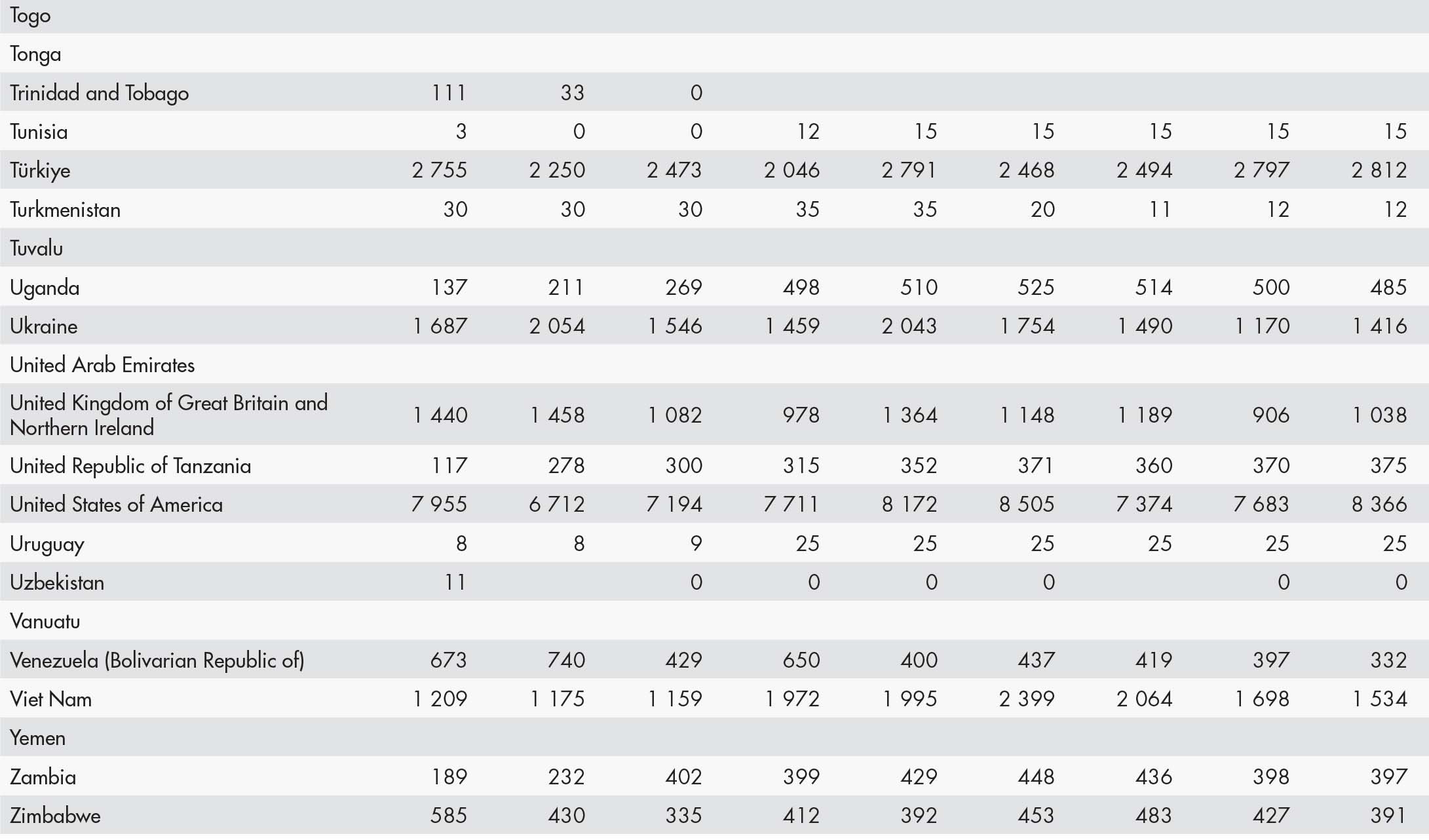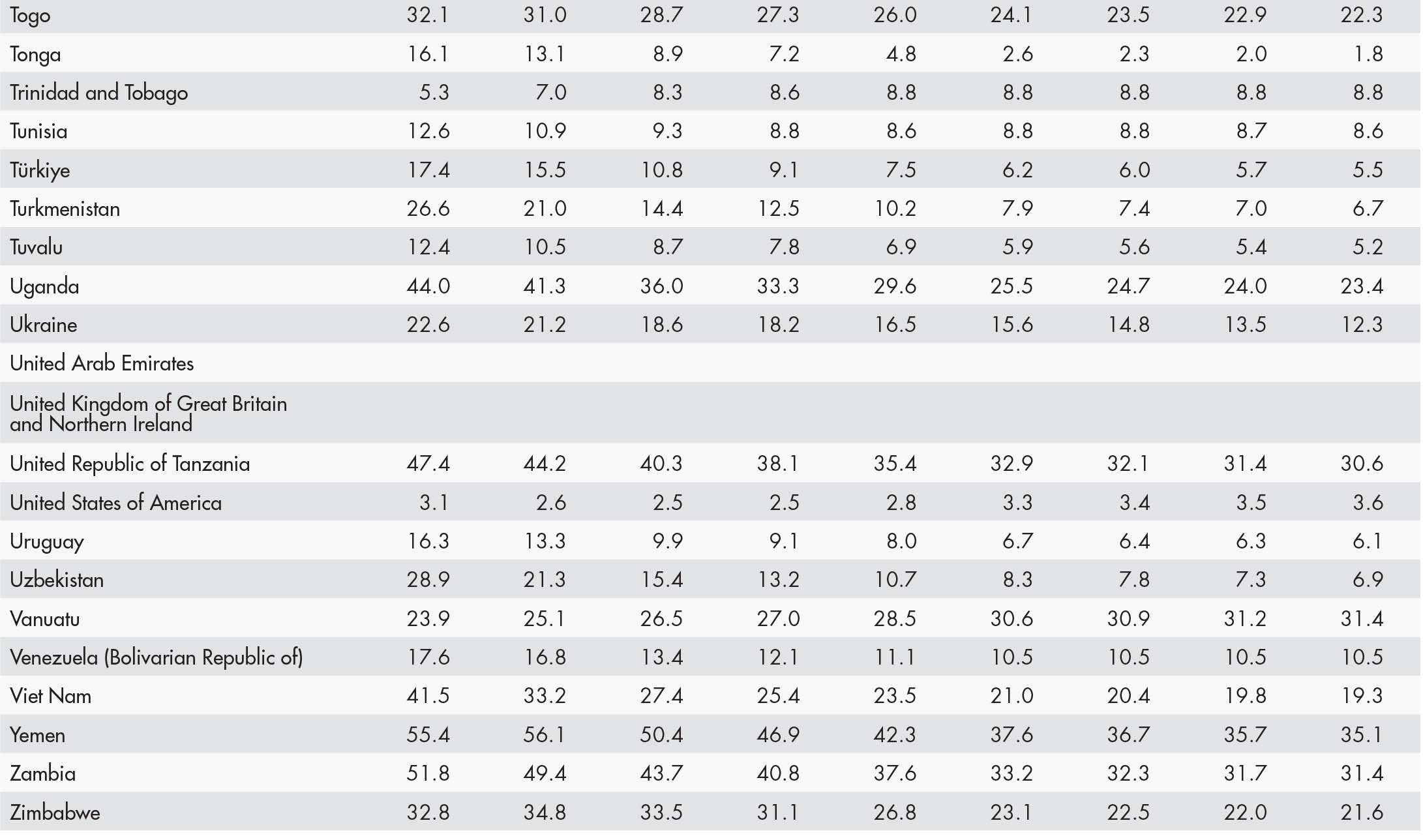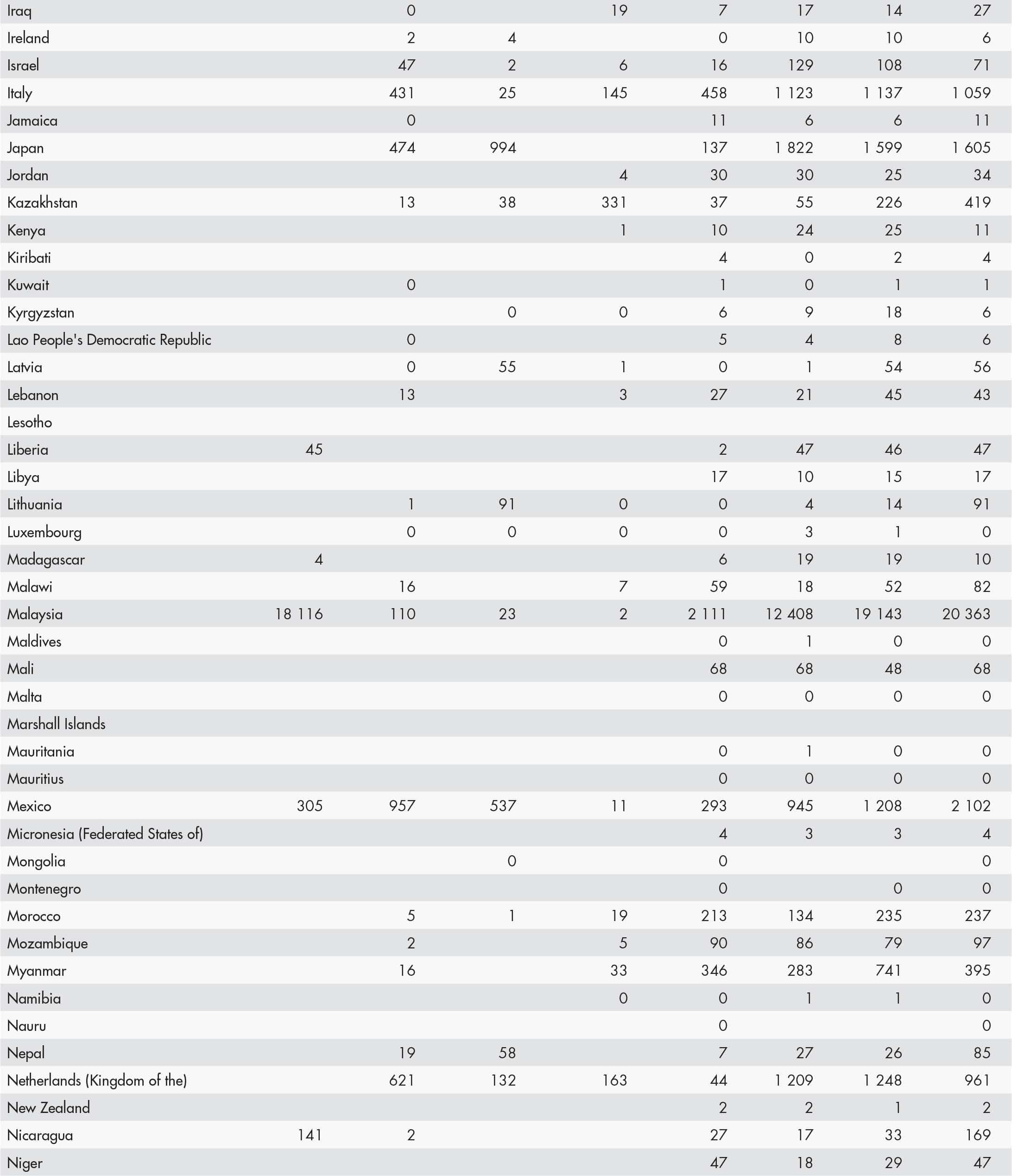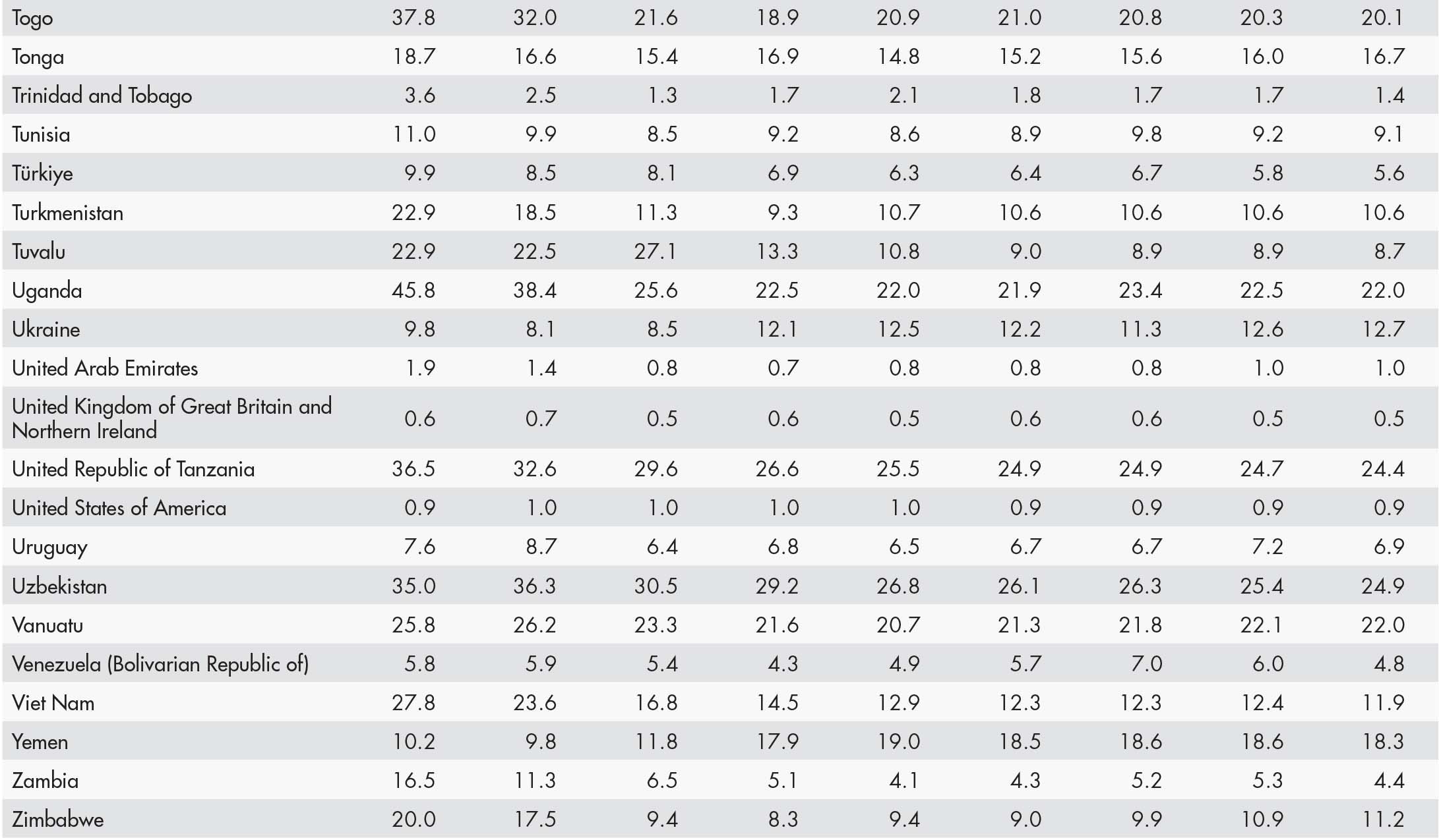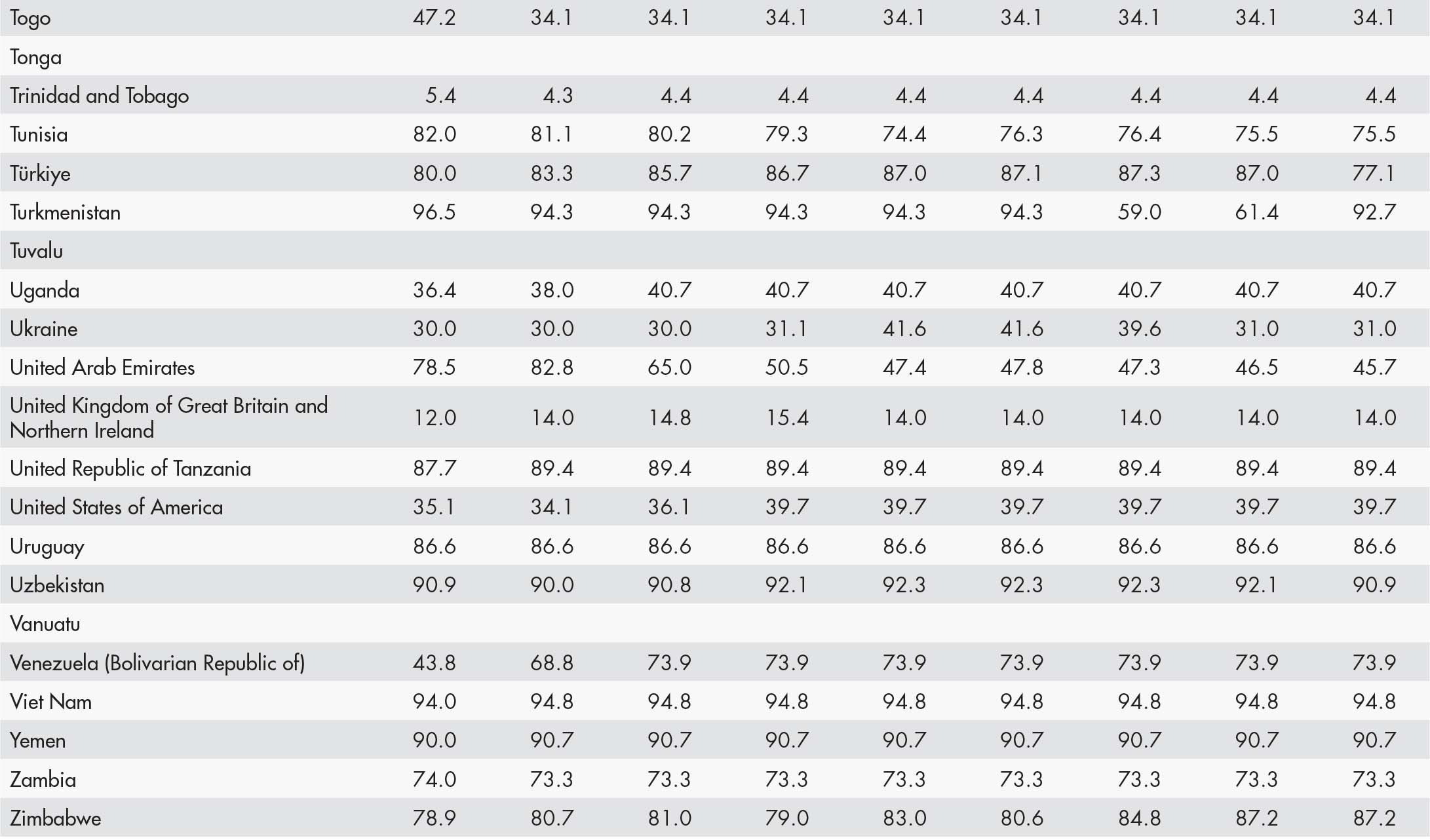 • a blank means that data are not available or that aggregates cannot be calculated because of missing data for the years shown;