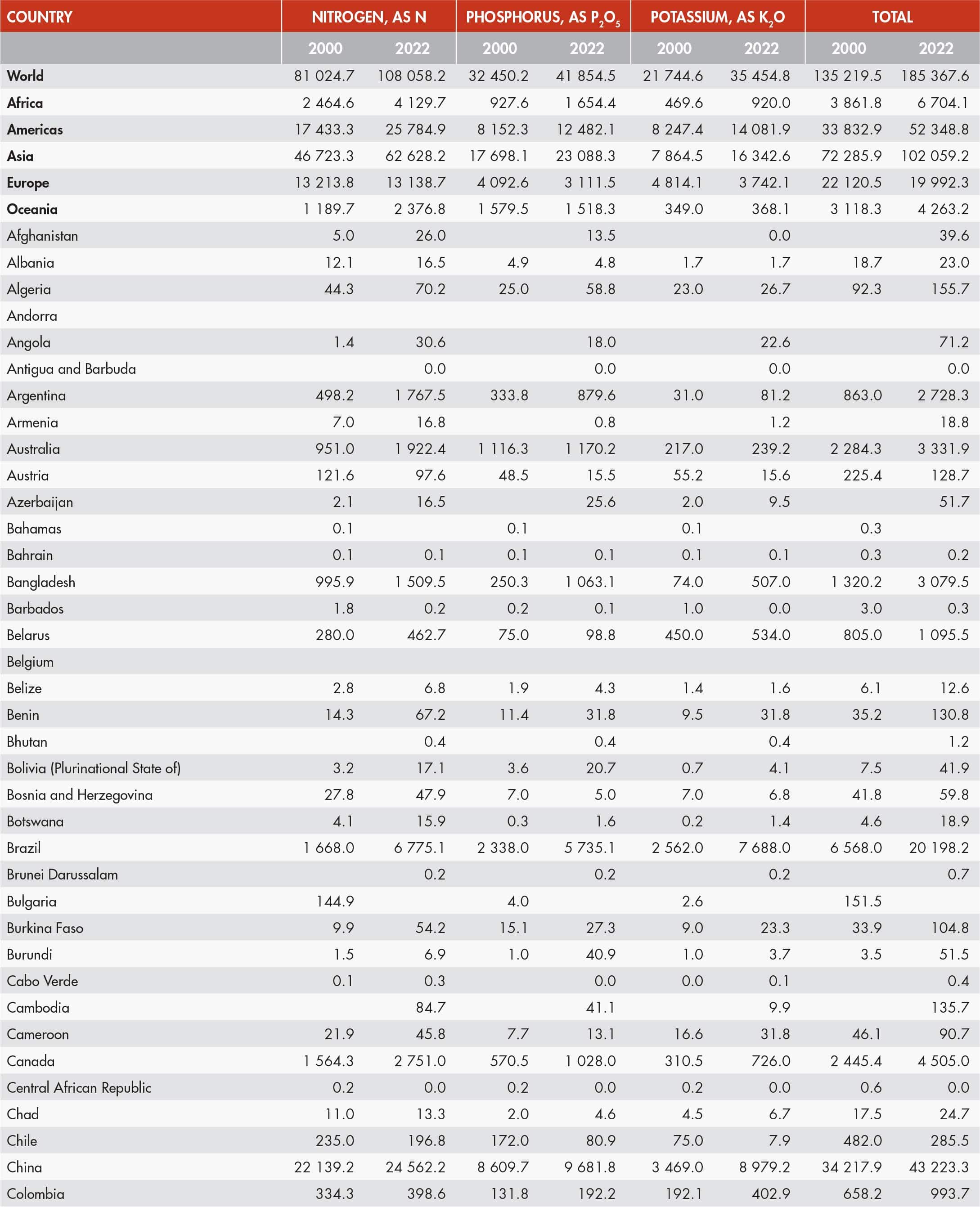 18. Inorganic fertilizer use by nutrient and region