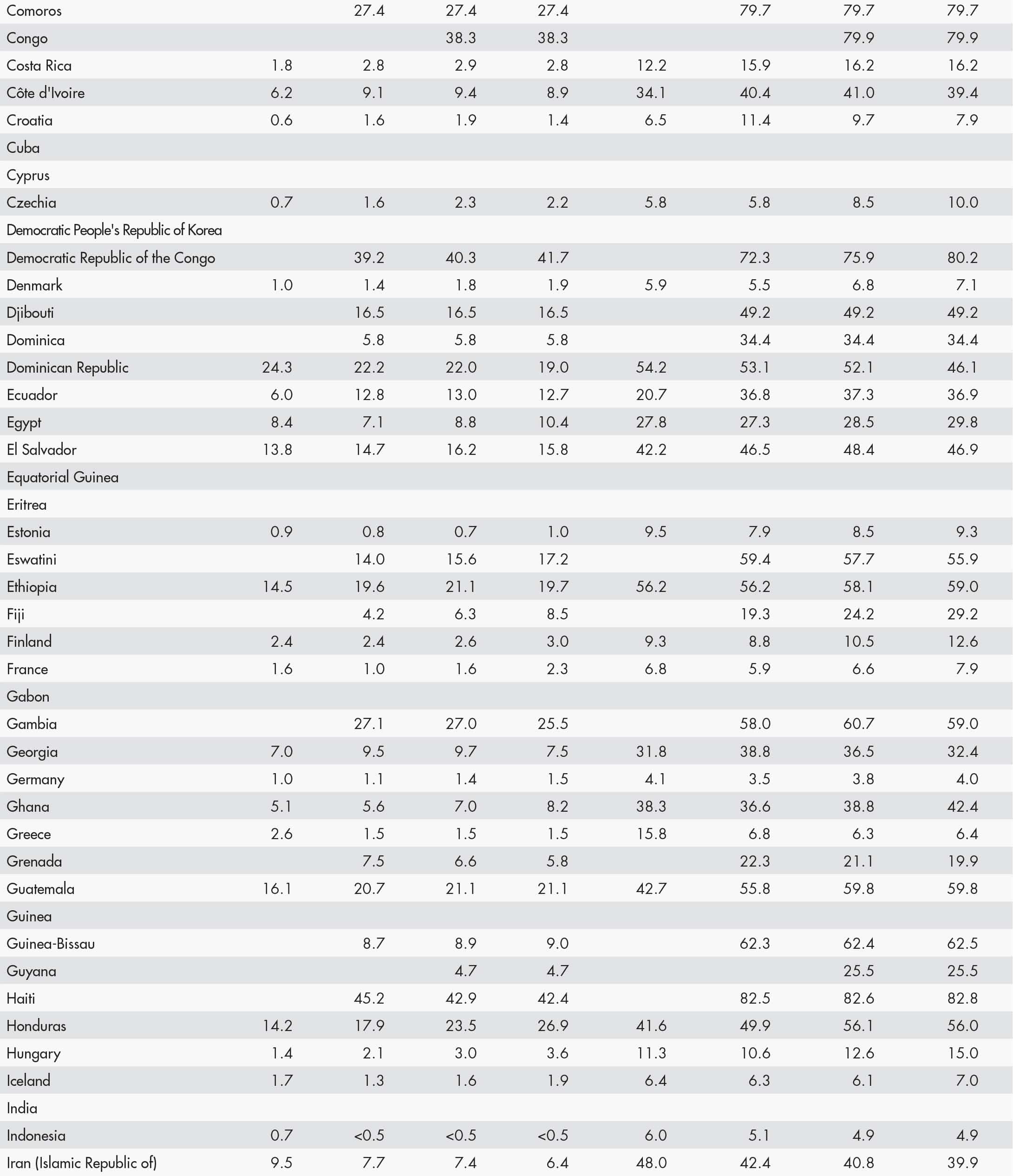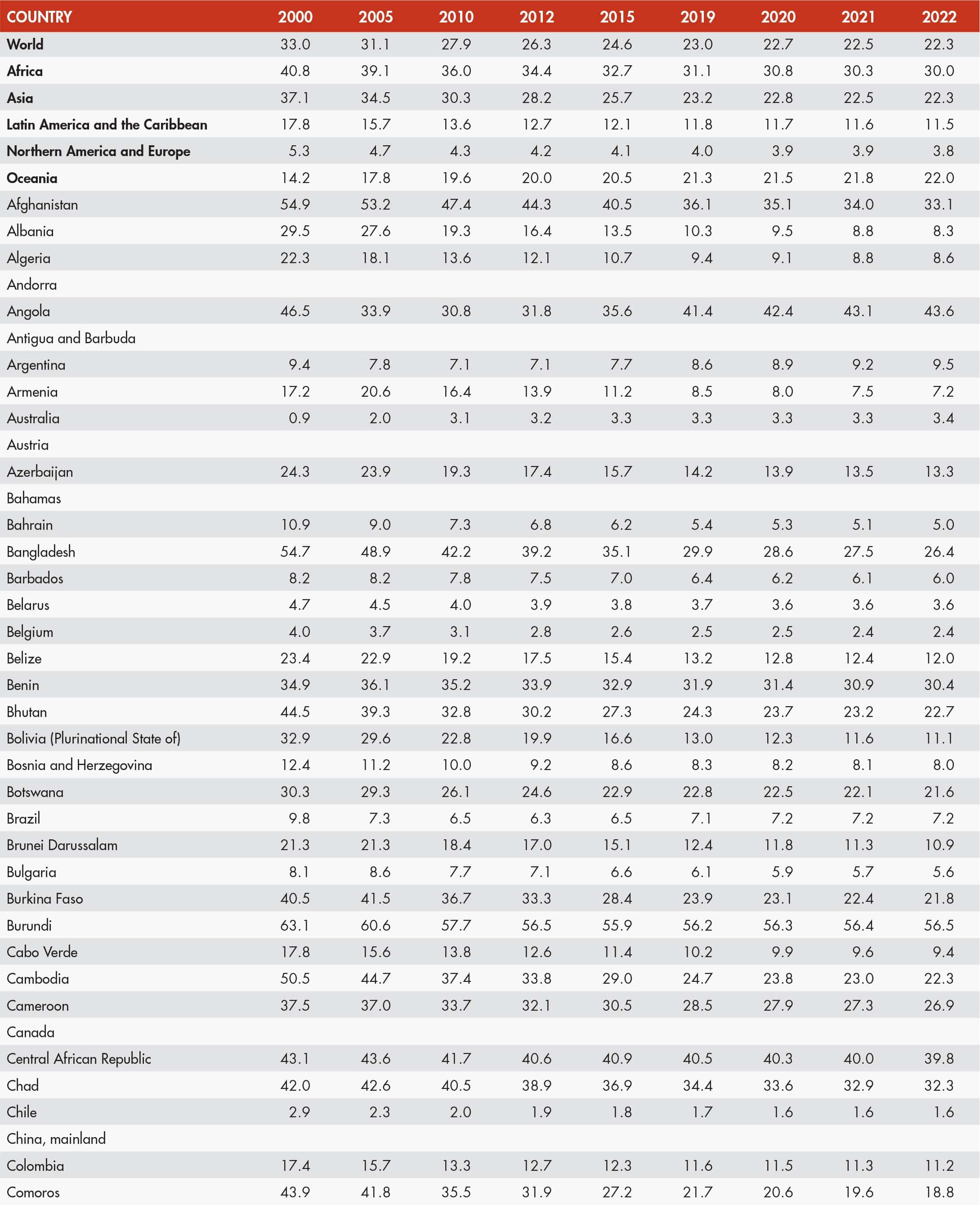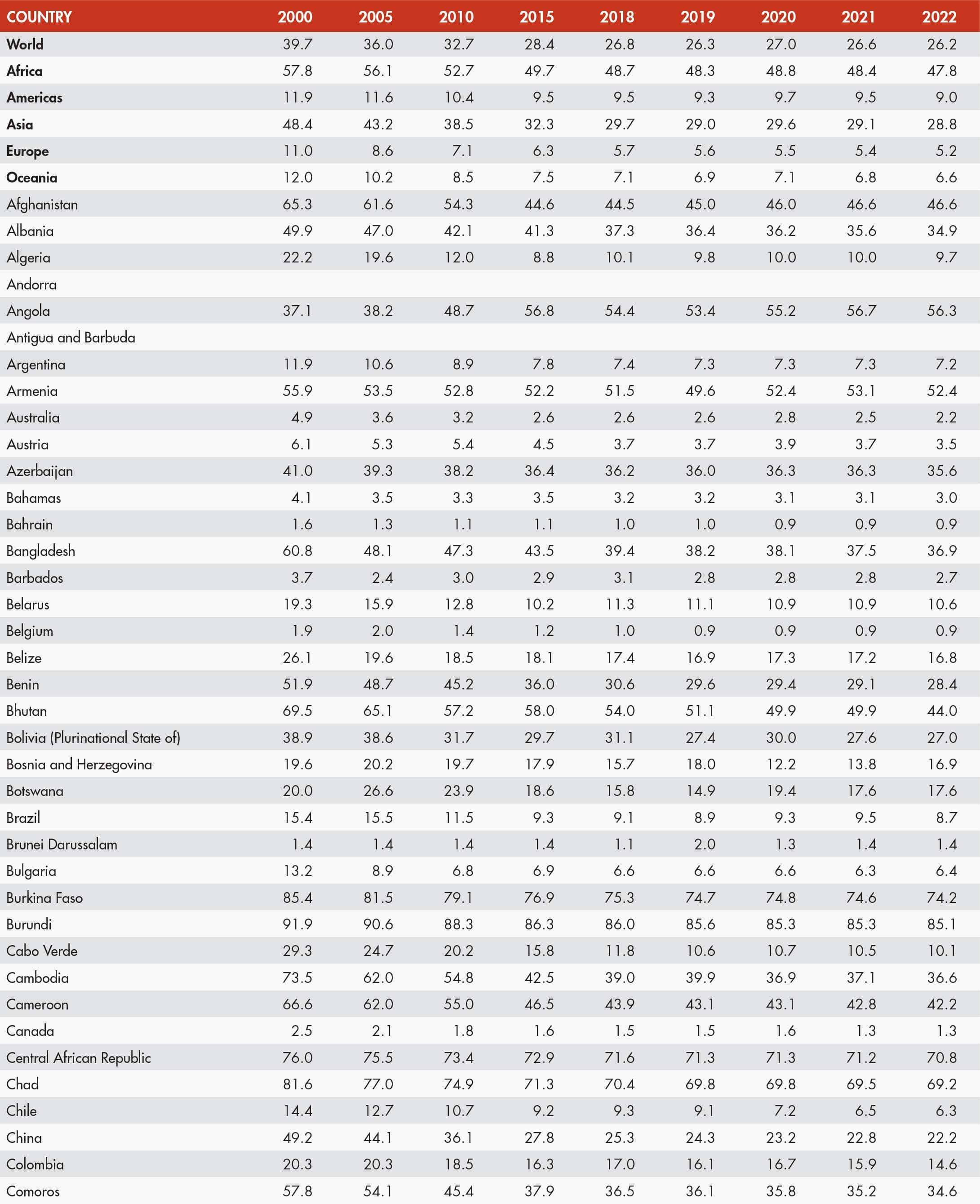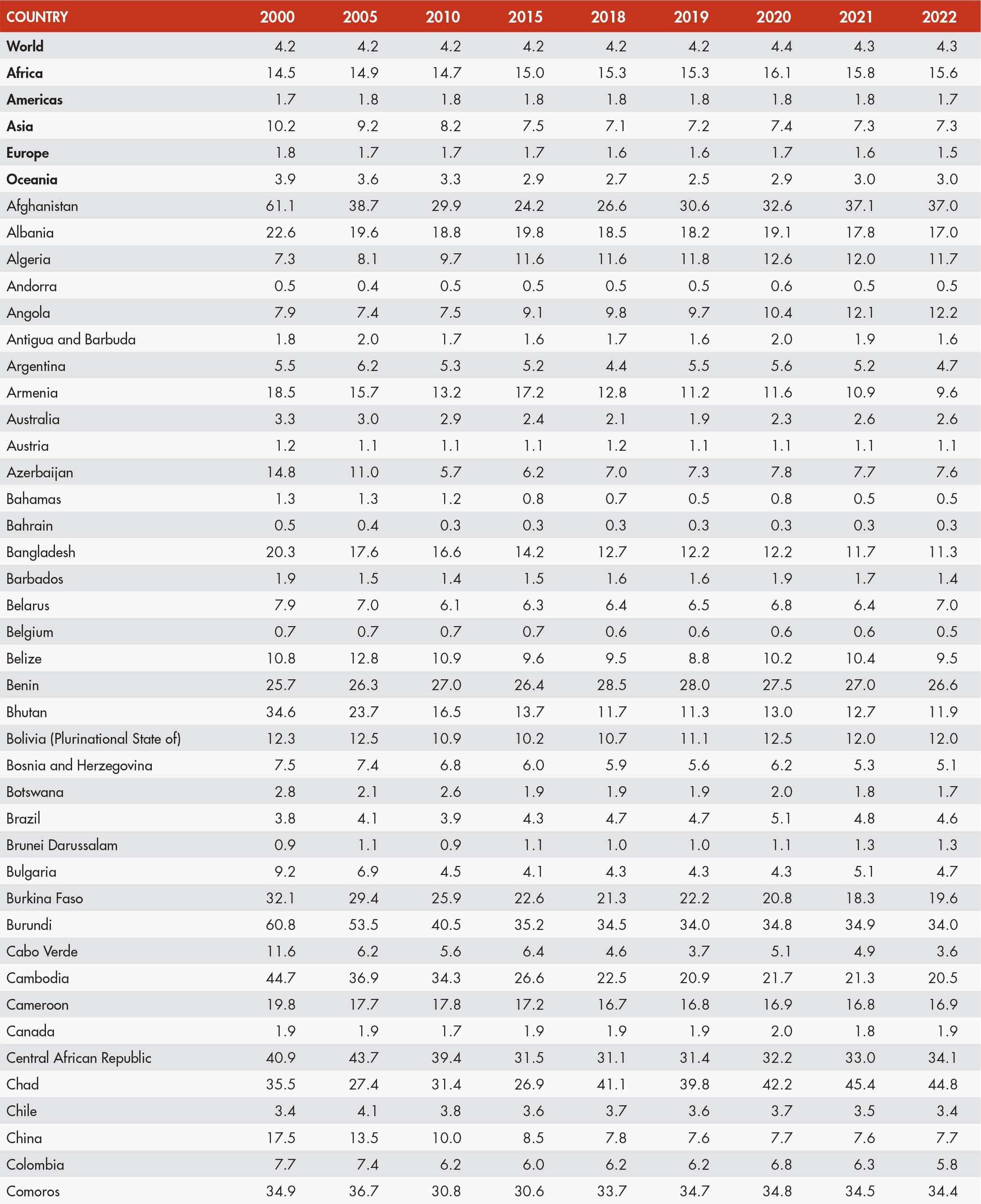 21 FAO. 2024. FAOSTAT: Suite of Food Security Indicators. [Accessed 15 November 2024]. https://www.fao.org/faostat/en/#data/FS. Licence: CC-BY-4.0.