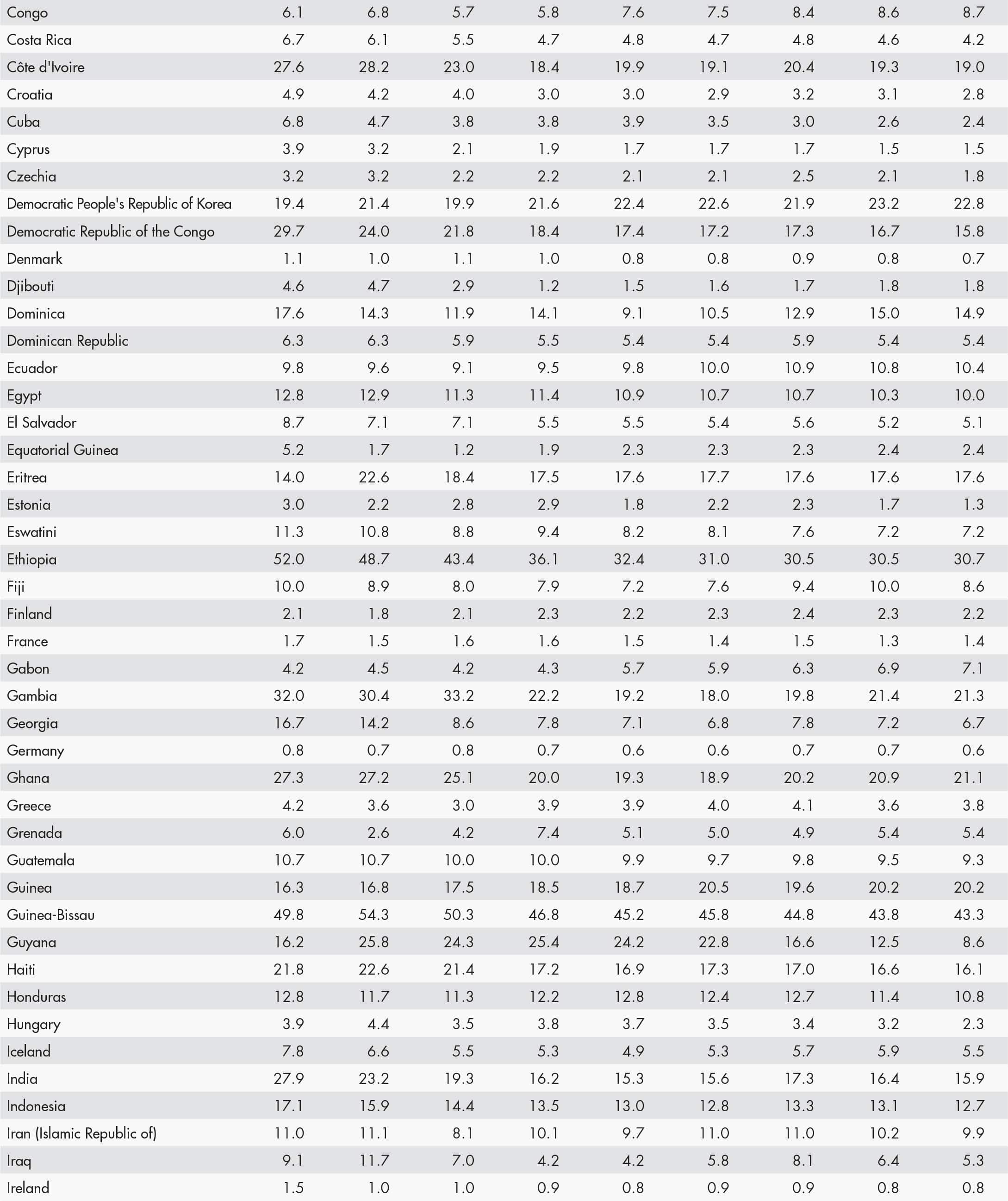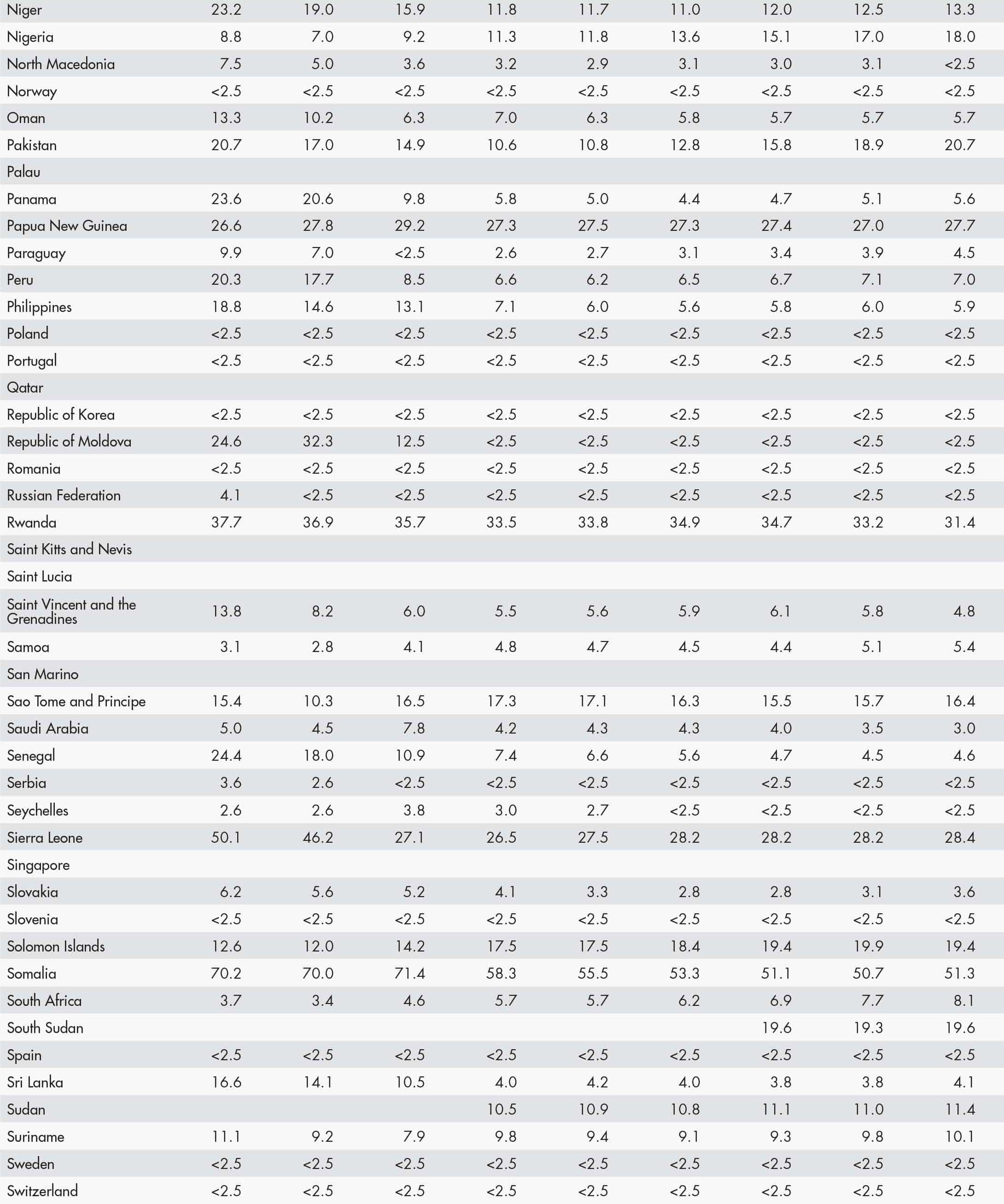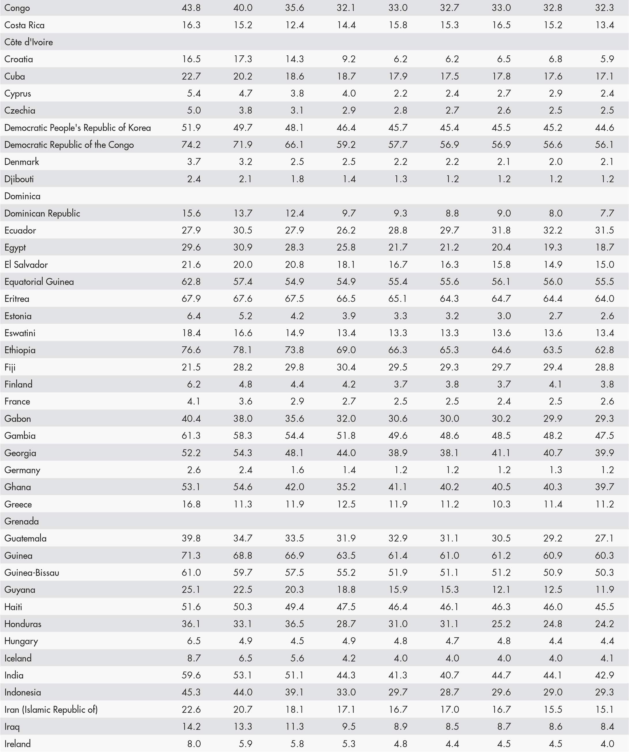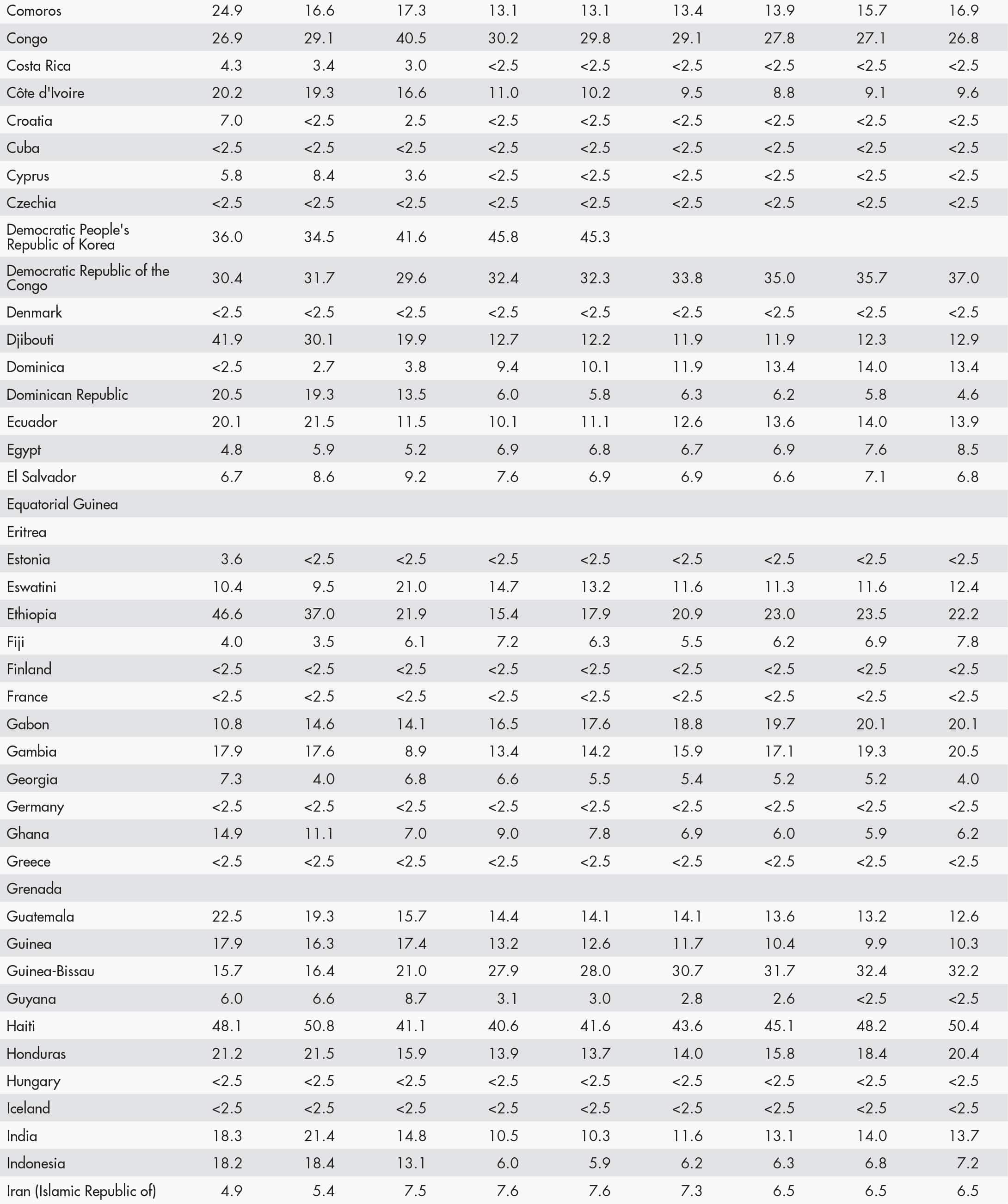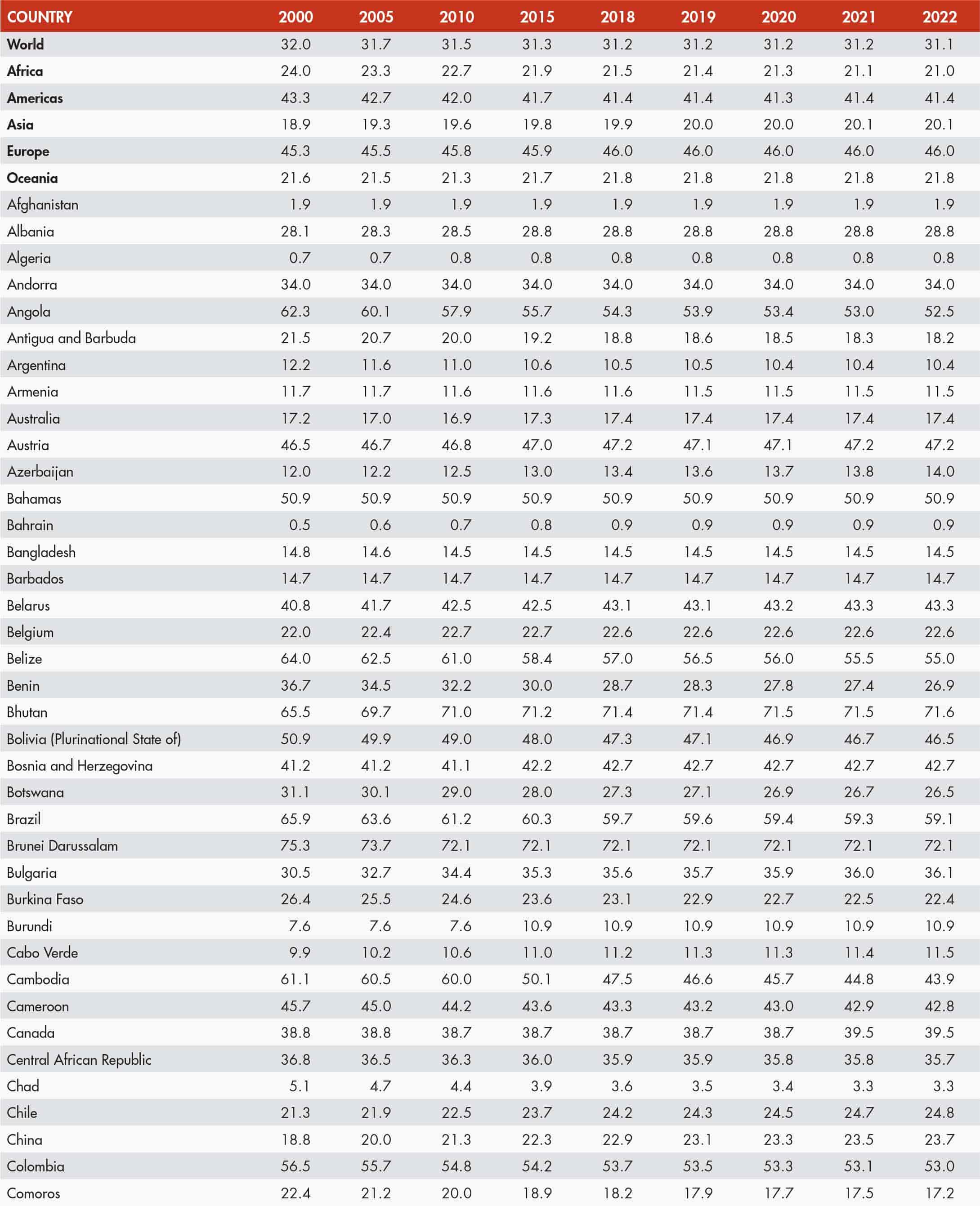 21 FAO. 2024. FAOSTAT: Suite of Food Security Indicators. [Accessed 15 November 2024]. https://www.fao.org/faostat/en/#data/FS. Licence: CC-BY-4.0.