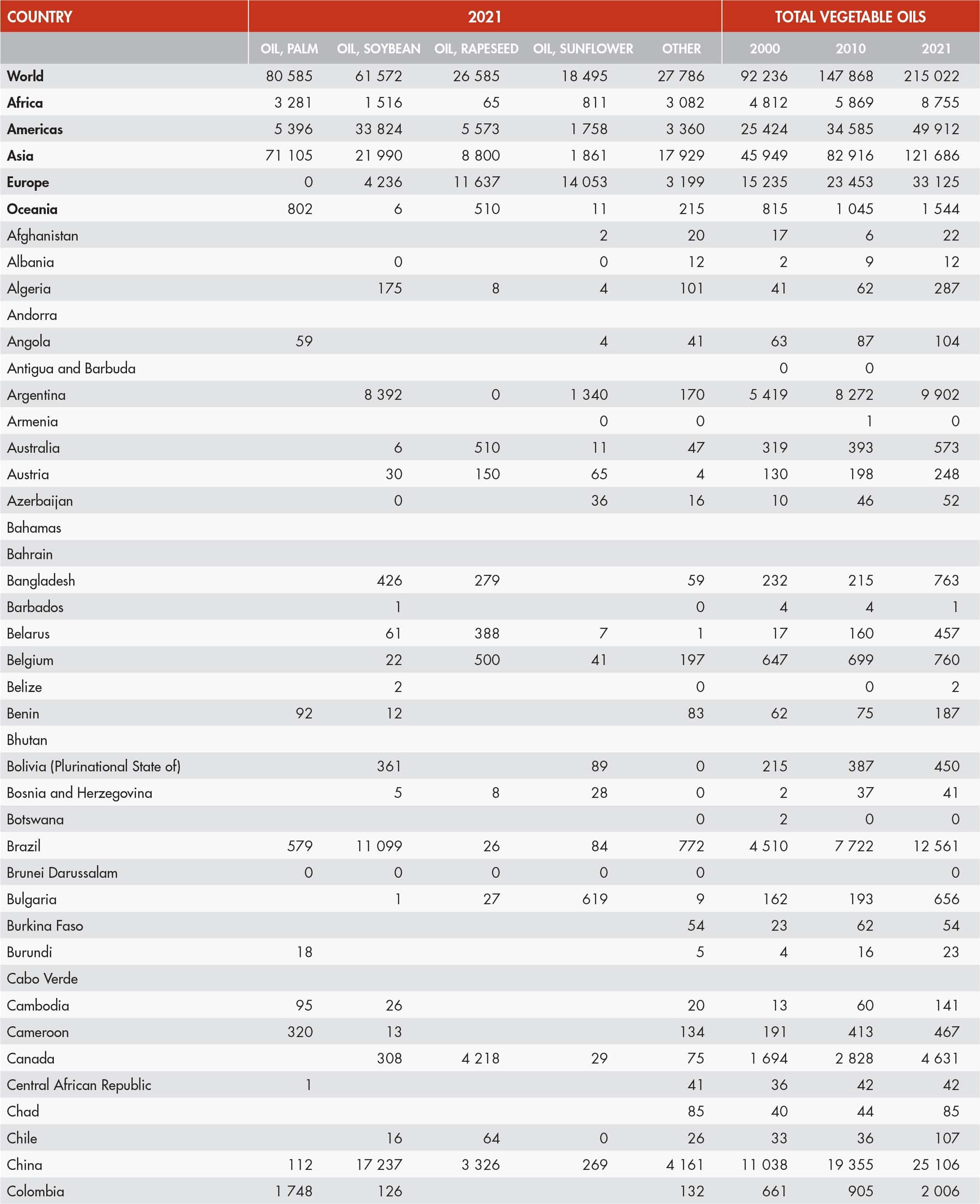 23. World production of vegetable oils, main commodities