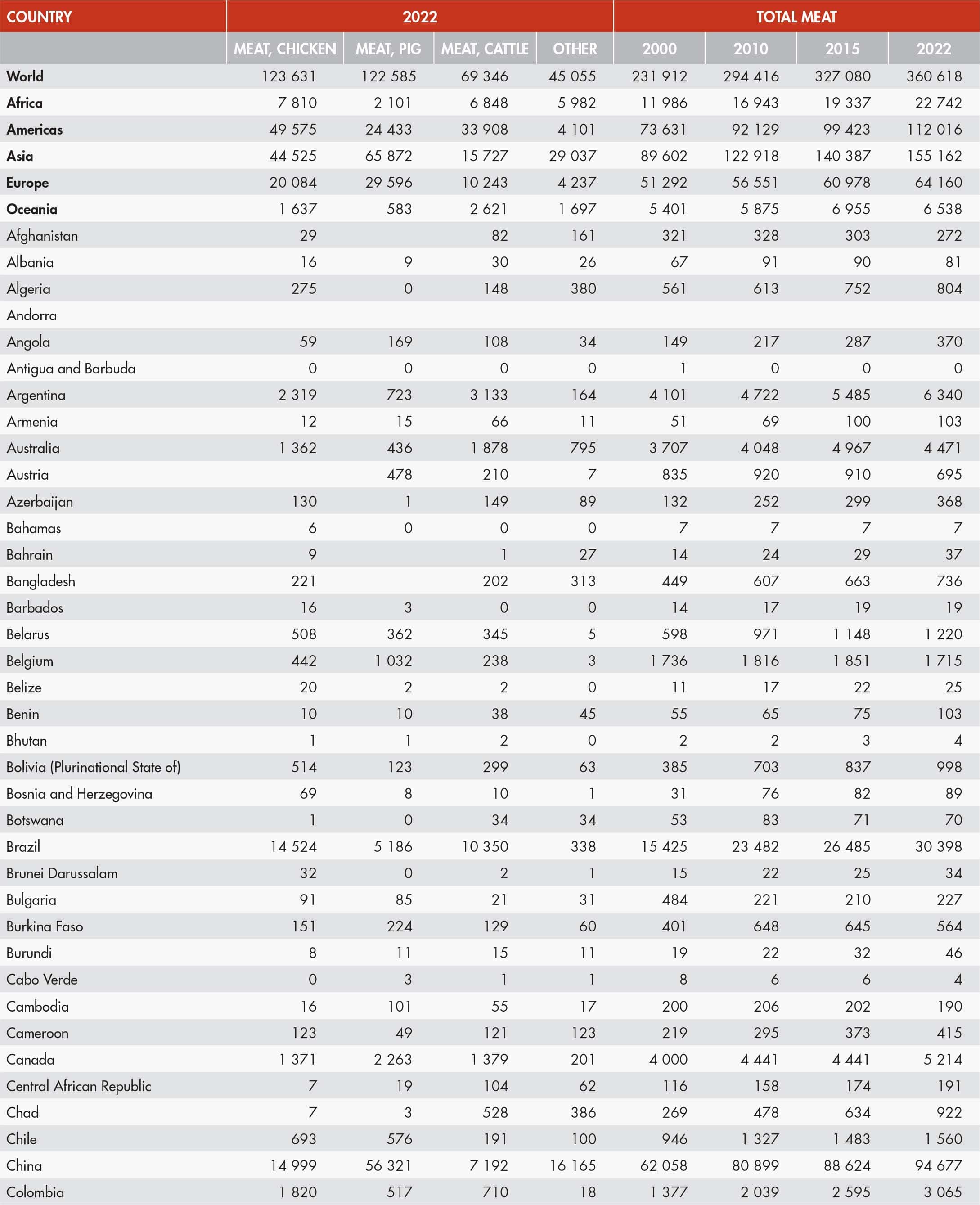 27. World production of main meat items, main producers (2022)