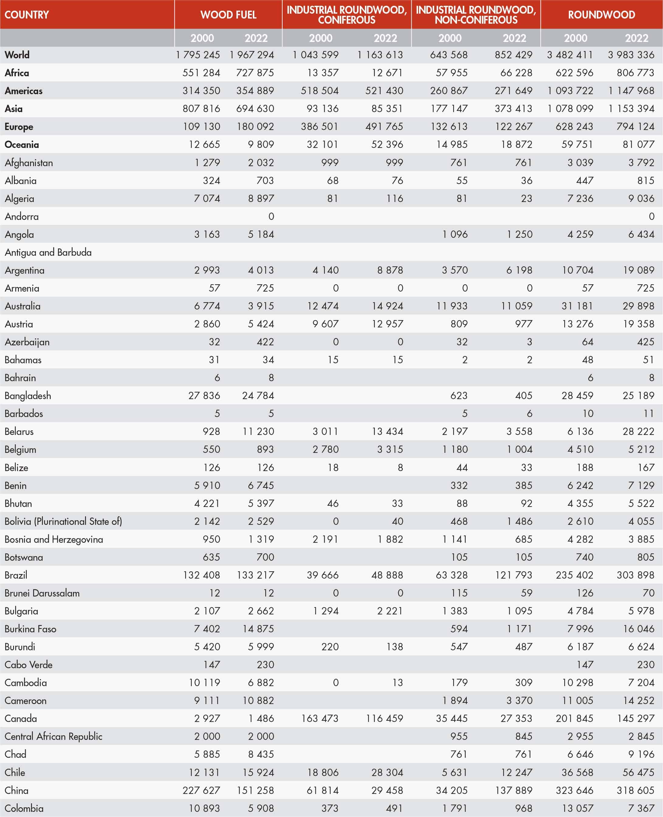 34. World production of roundwood by type, main producers (2022)