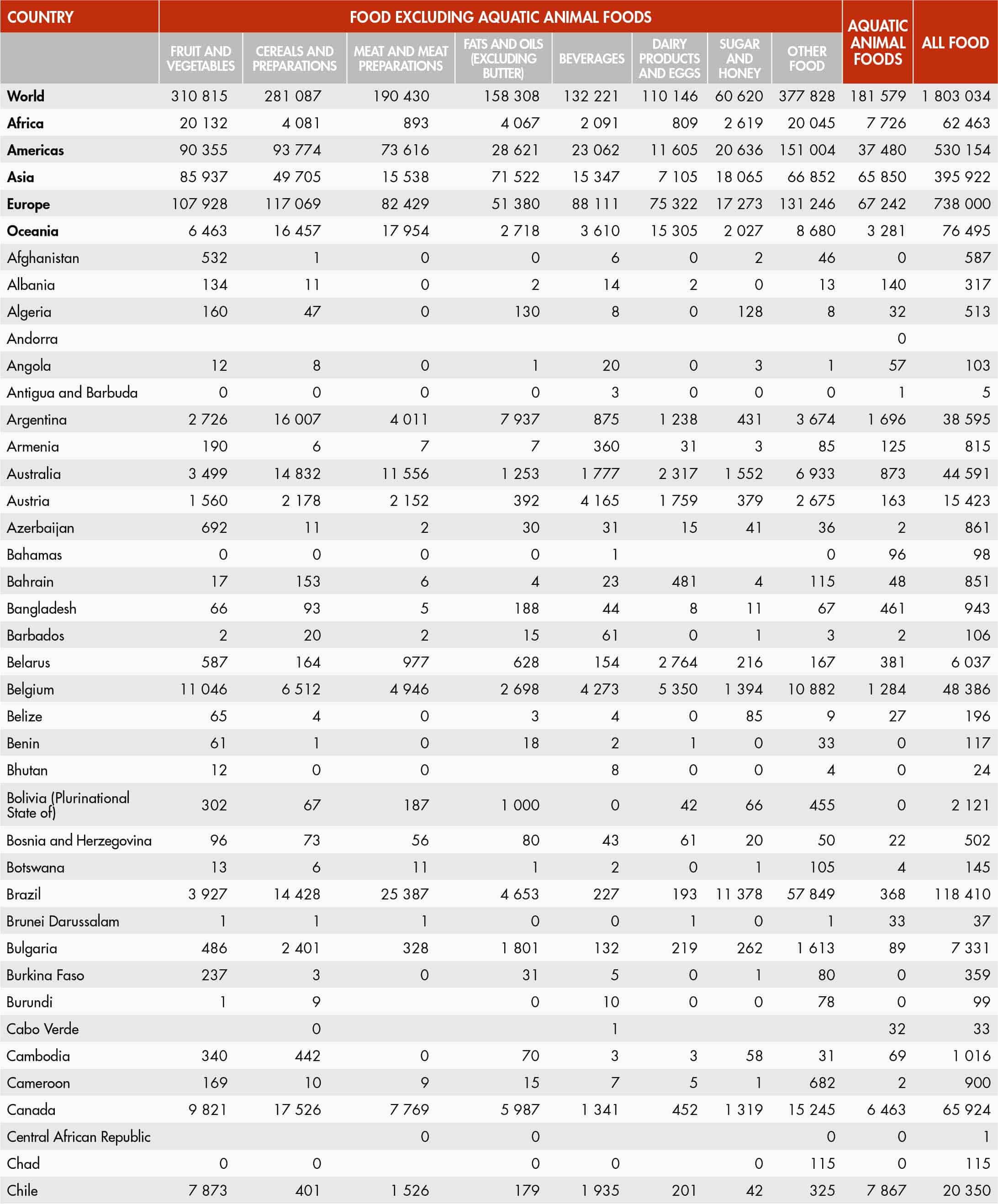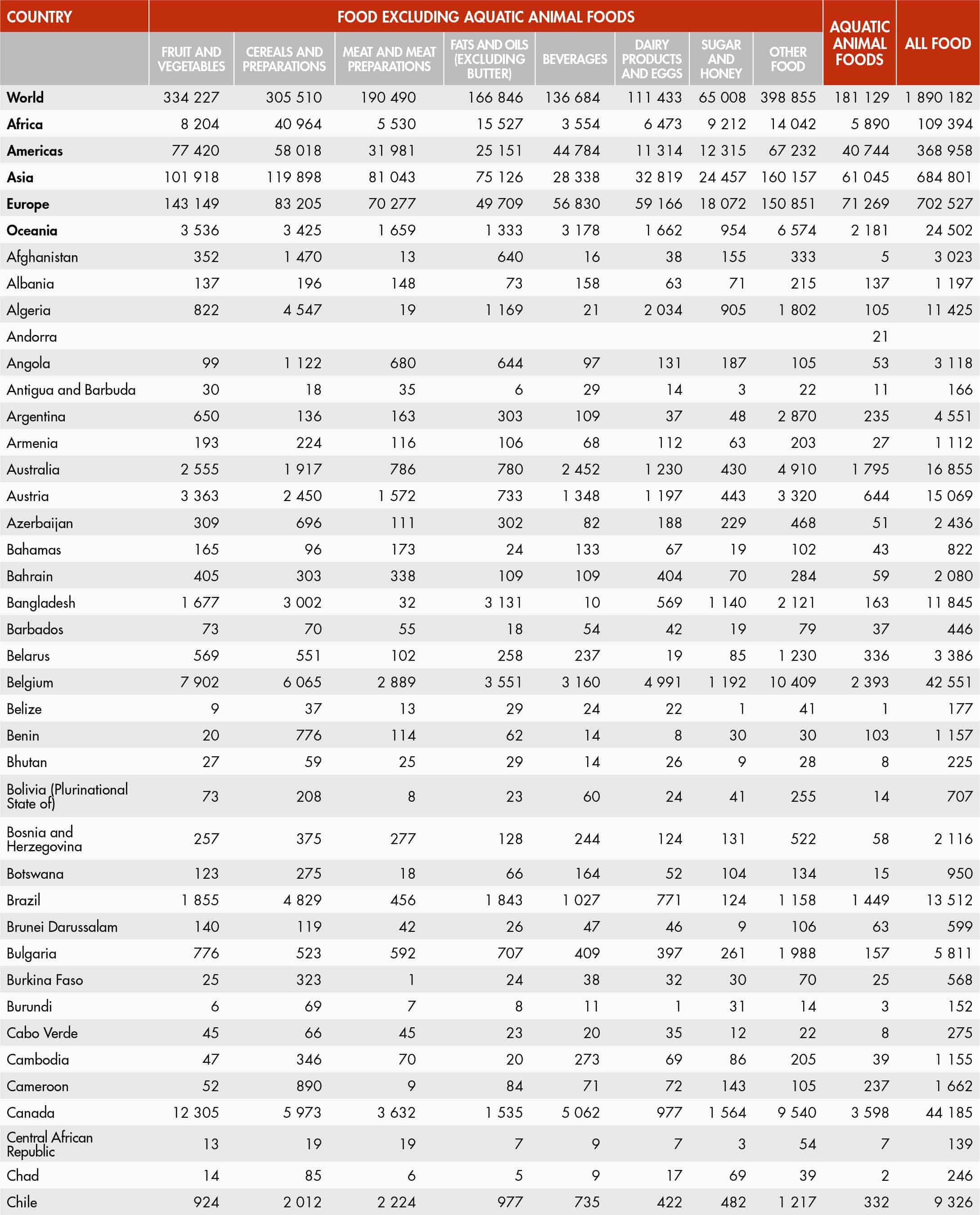36. Value of world food exports by group