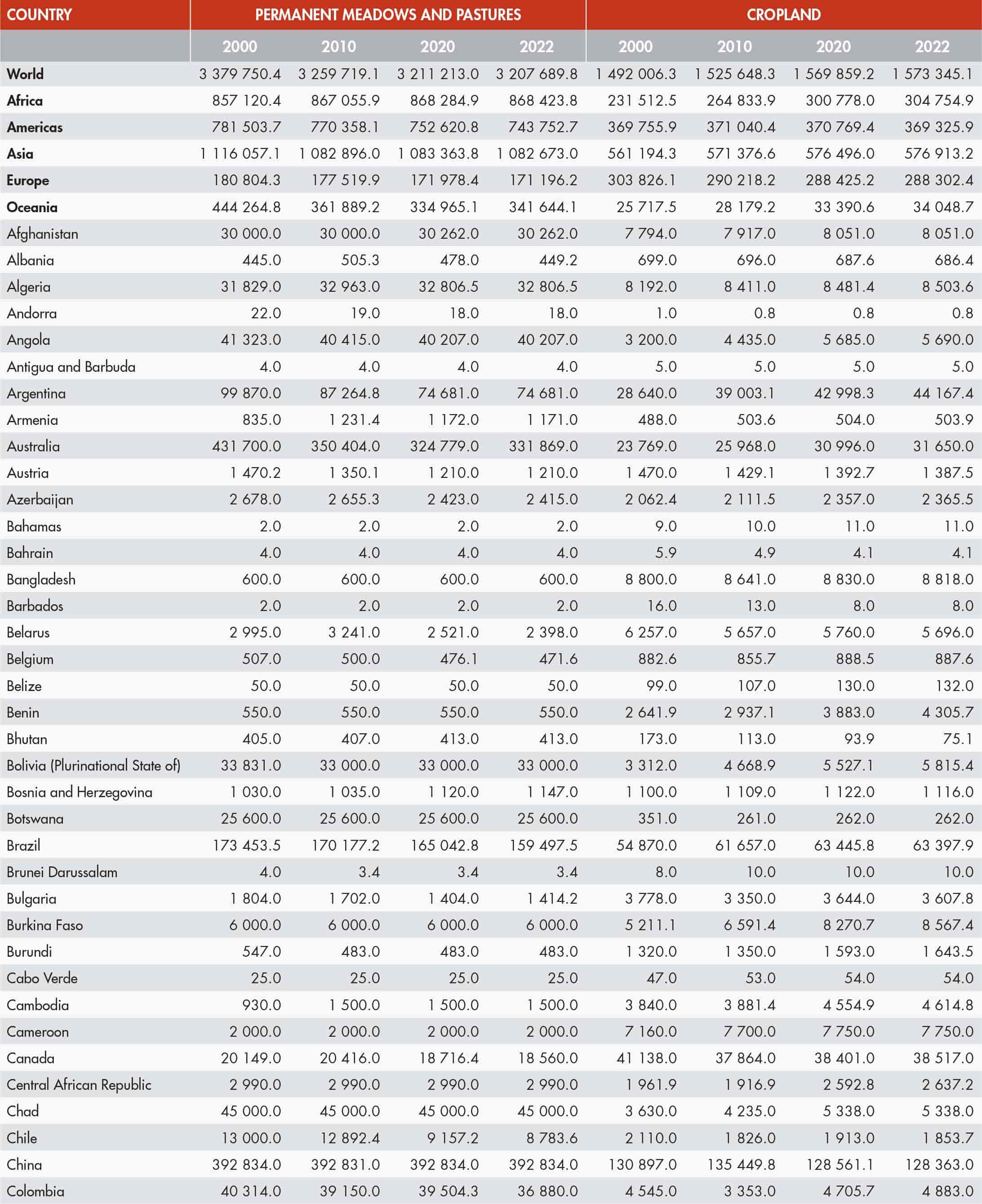 1 FAO. 2024. FAOSTAT: Land Use. [Accessed on 15 November 2024]. https://www.fao.org/faostat/en/#data/RL. Licence: CC-BY-4.0.