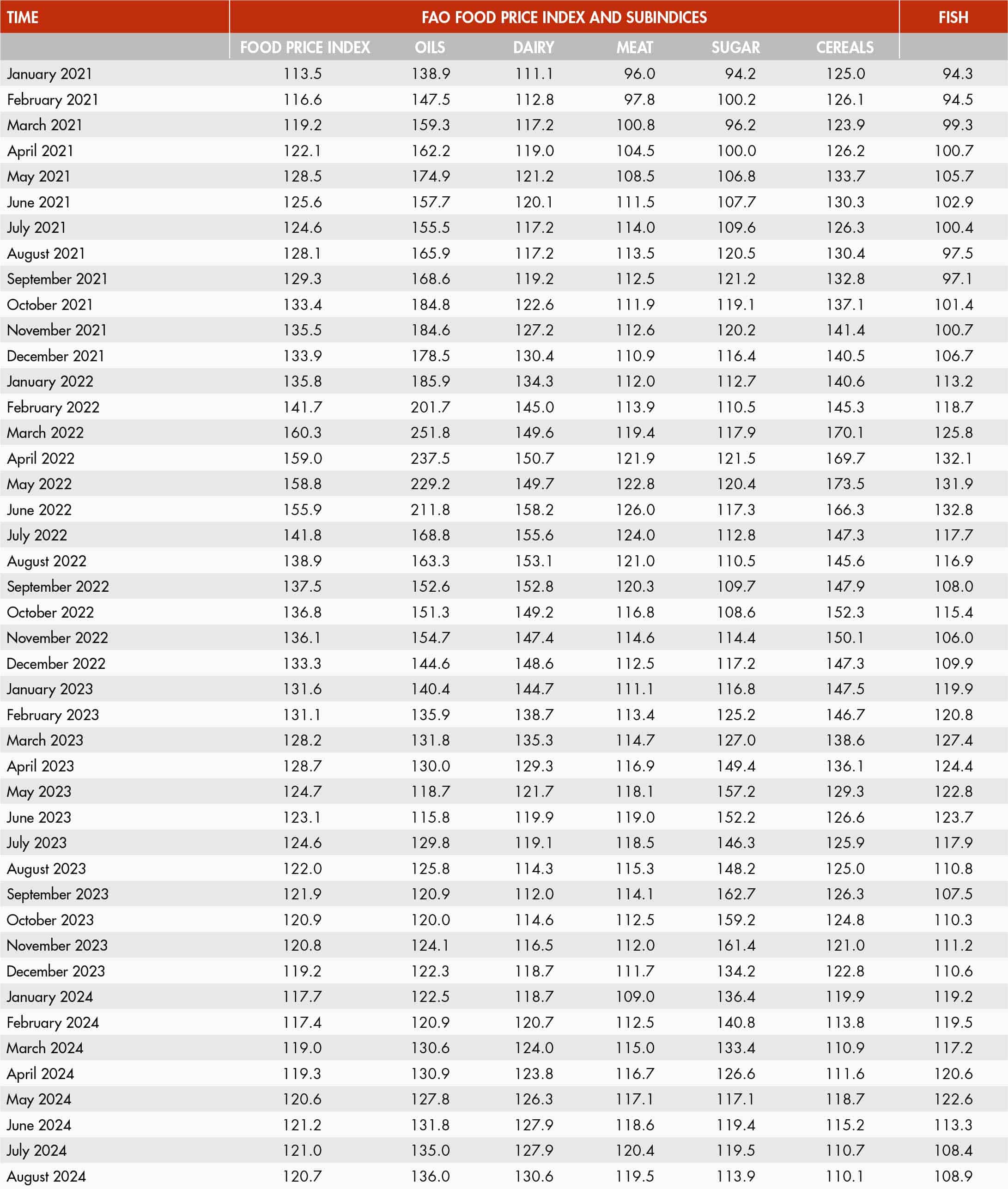 44. FAO FISH PRICE INDEX, WORLD (2014–2016=100)