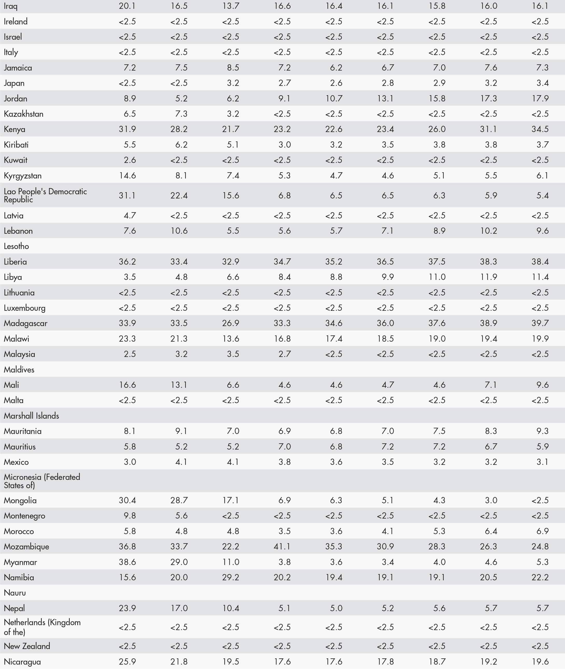 • <2.5 means a proportion less than 2.5 percent; and