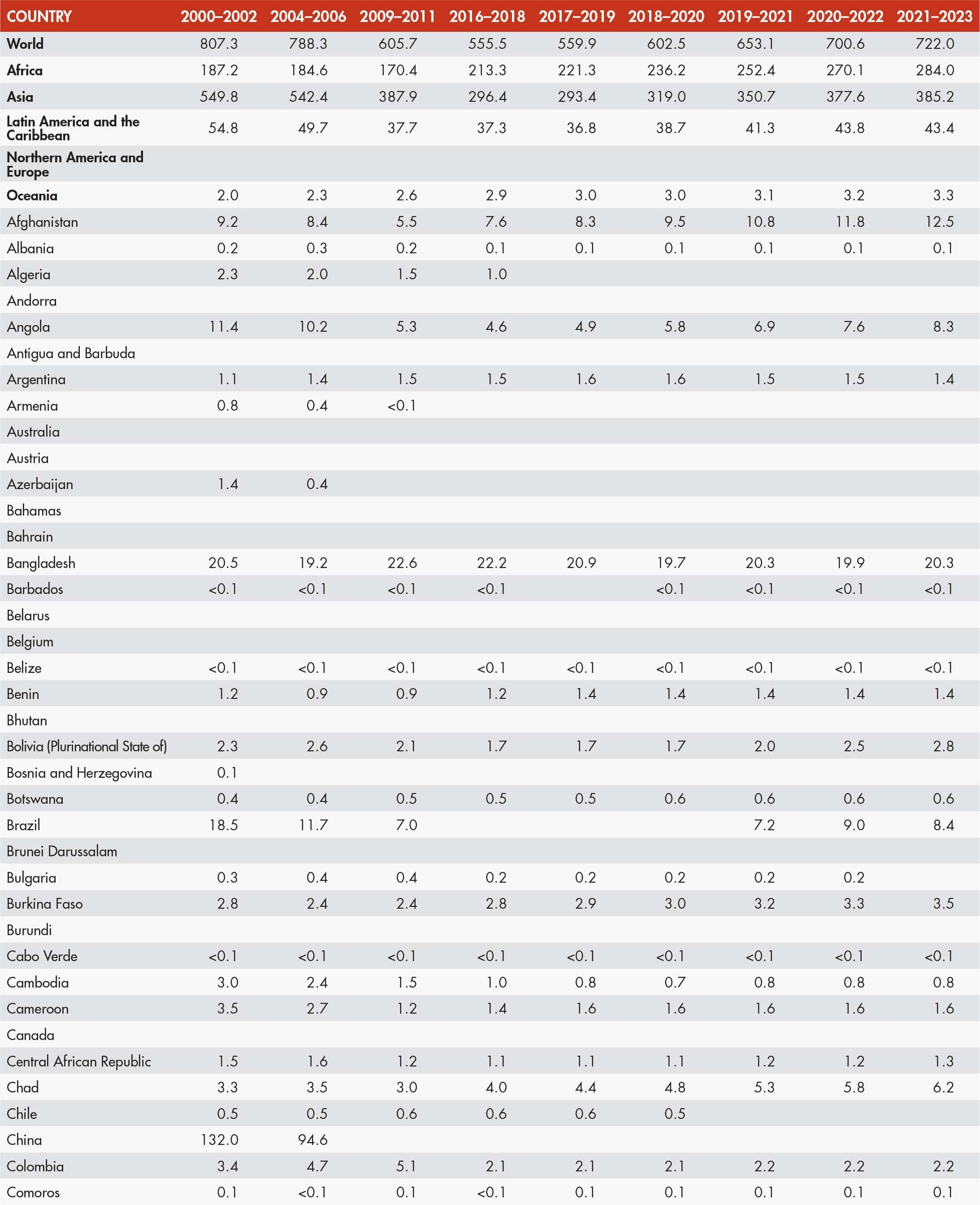 48. Number of people undernourished by region