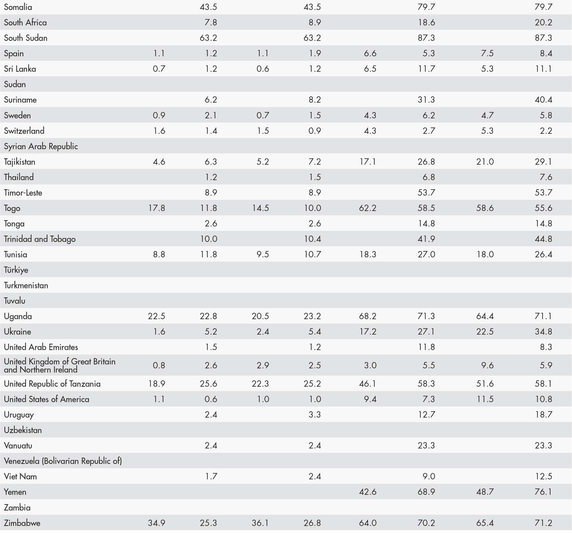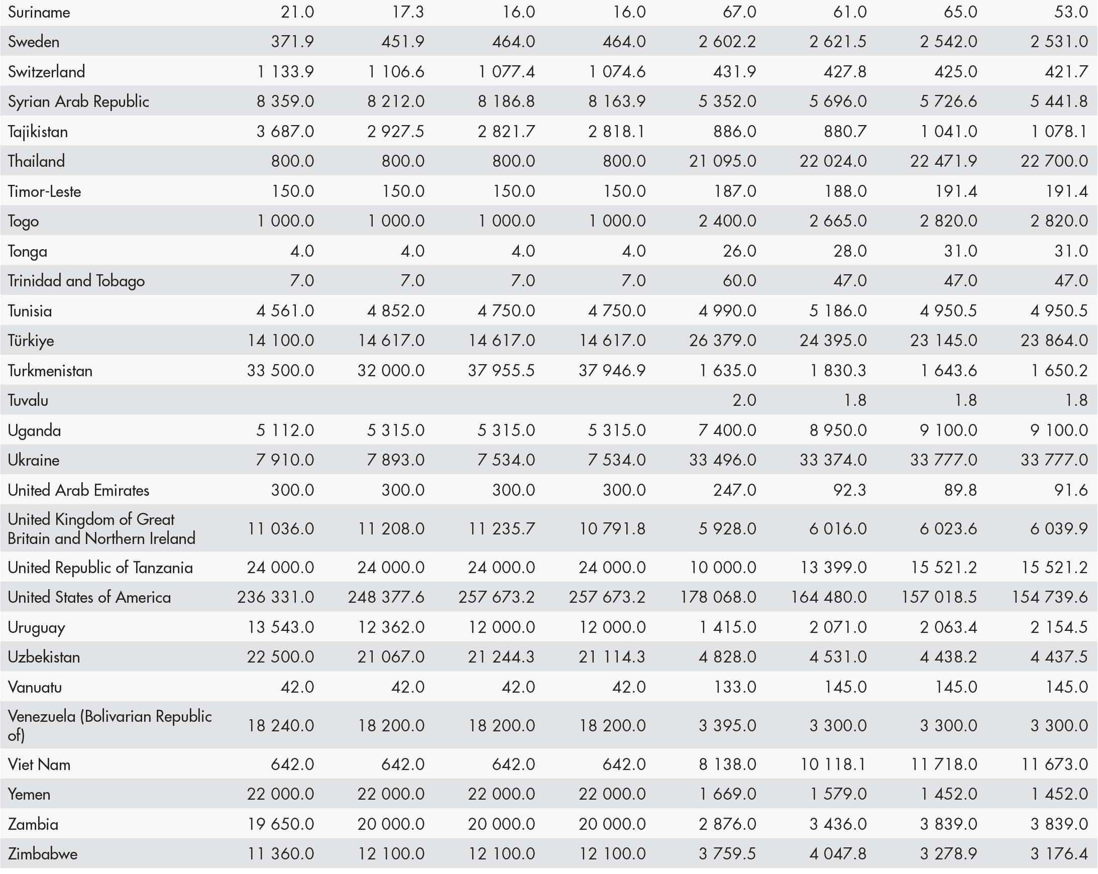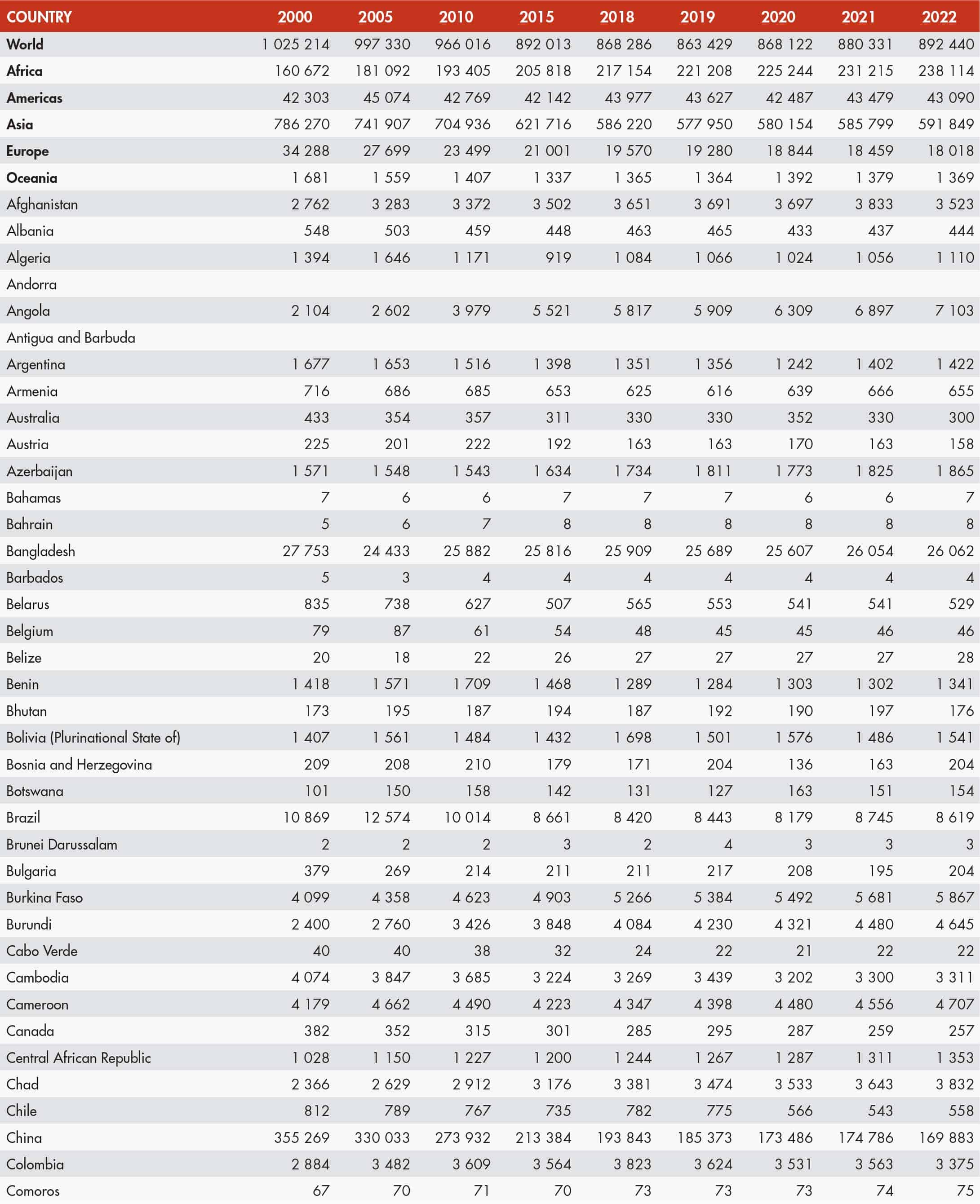 The country classification adopted in this publication is based on the United Nations M49 classification (https://unstats.un.org/unsd/methodology/m49/). The official Food and Agriculture Organization of the United Nations (FAO) names can be found at https://www.fao.org/nocs/en.