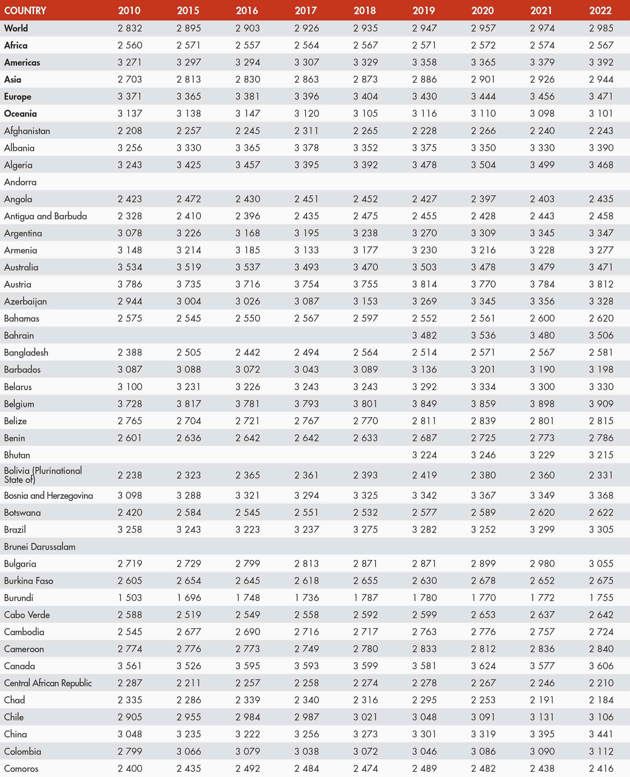 51. Average dietary energy supply by region
