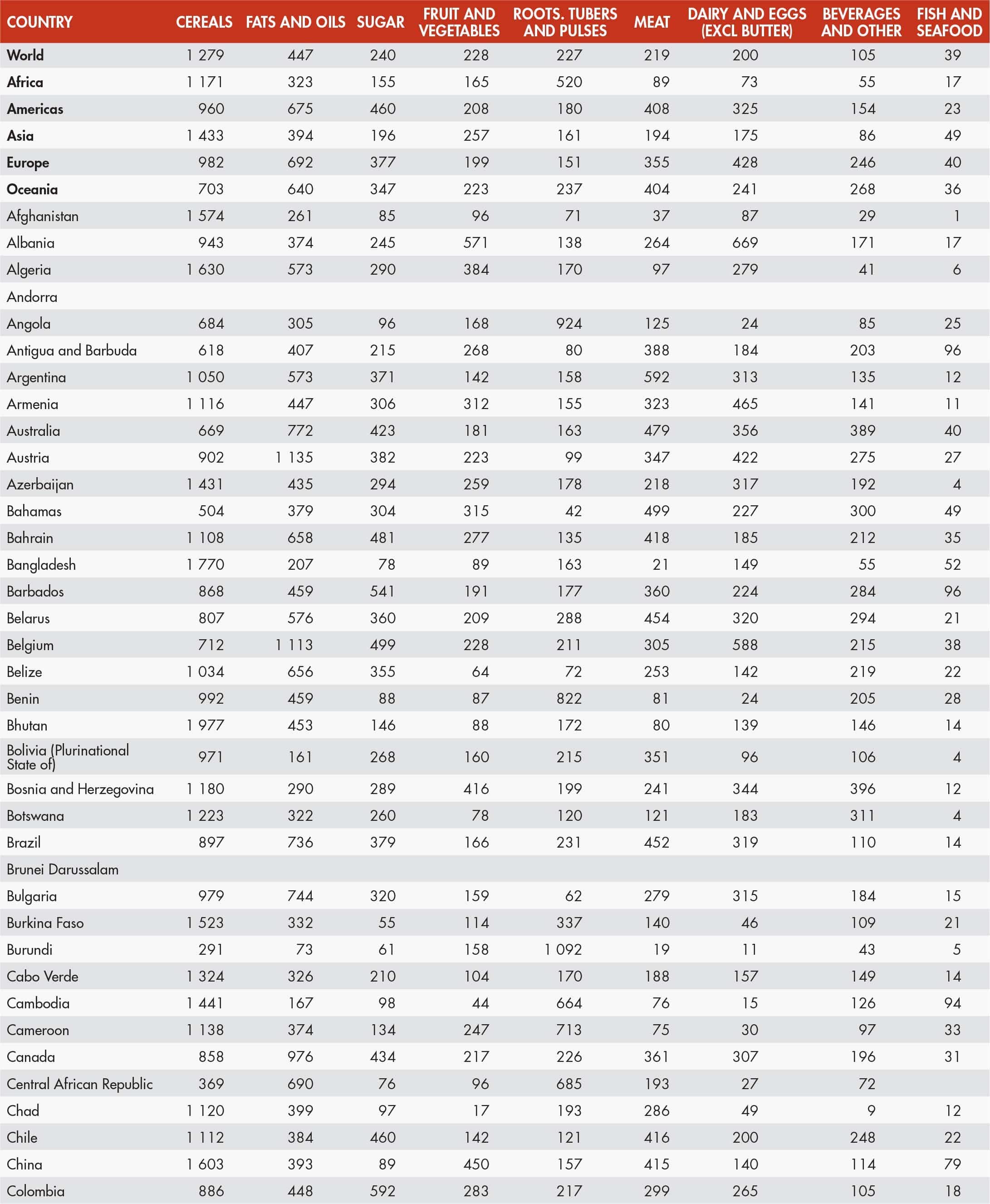 53. Dietary energy supply by region and commodity group