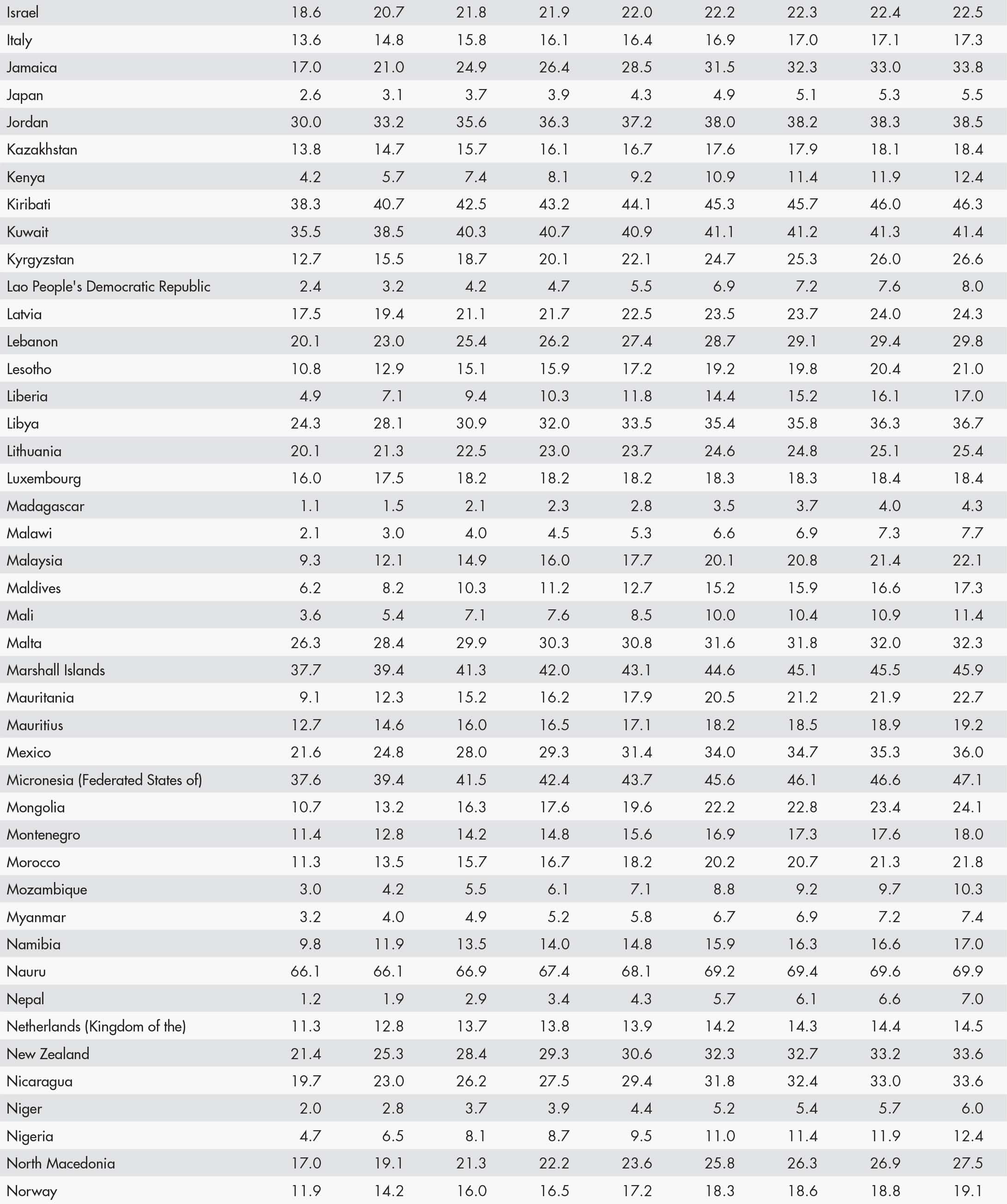 58. Prevalence of obesity in the adult population, top countries (2022)