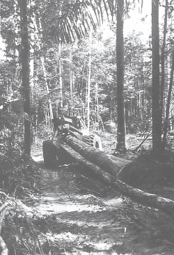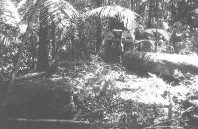 La construcción de caminos forestales en los bosques primarios de carácter húmedo tropical incluye la limpieza de vegetación y el movimiento de tierras a fin de crear estructuras capaces de soportar vehículos pesados. La maquinaria necesaria se contrata con empresas locales de construcción porque las actividades de construcción de caminos se limitan a la estación seca. El contar con maquinaria propia de la empresa se traduciría en elevados costes debidos al largo período sin funcionamiento.