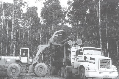 Foto 8. Carga de trozas en cargadero para transporte a larga distancia.