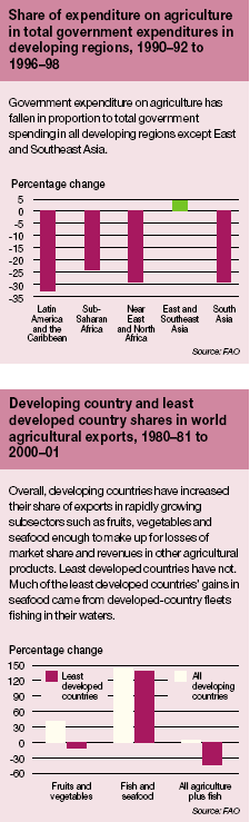 Smallholders in many developing countries have been confronted by loss of access to credit and soaring prices for inputs. Poor market infrastructure and information channels leave them vulnerable to price volatility and exploitation by trading companies that have often stepped in to replace the state monopoly with a private one. At the same time, public expenditures in agriculture have dwindled. In many countries, both yields and quality of commodities have fallen since the marketing boards were abolished.