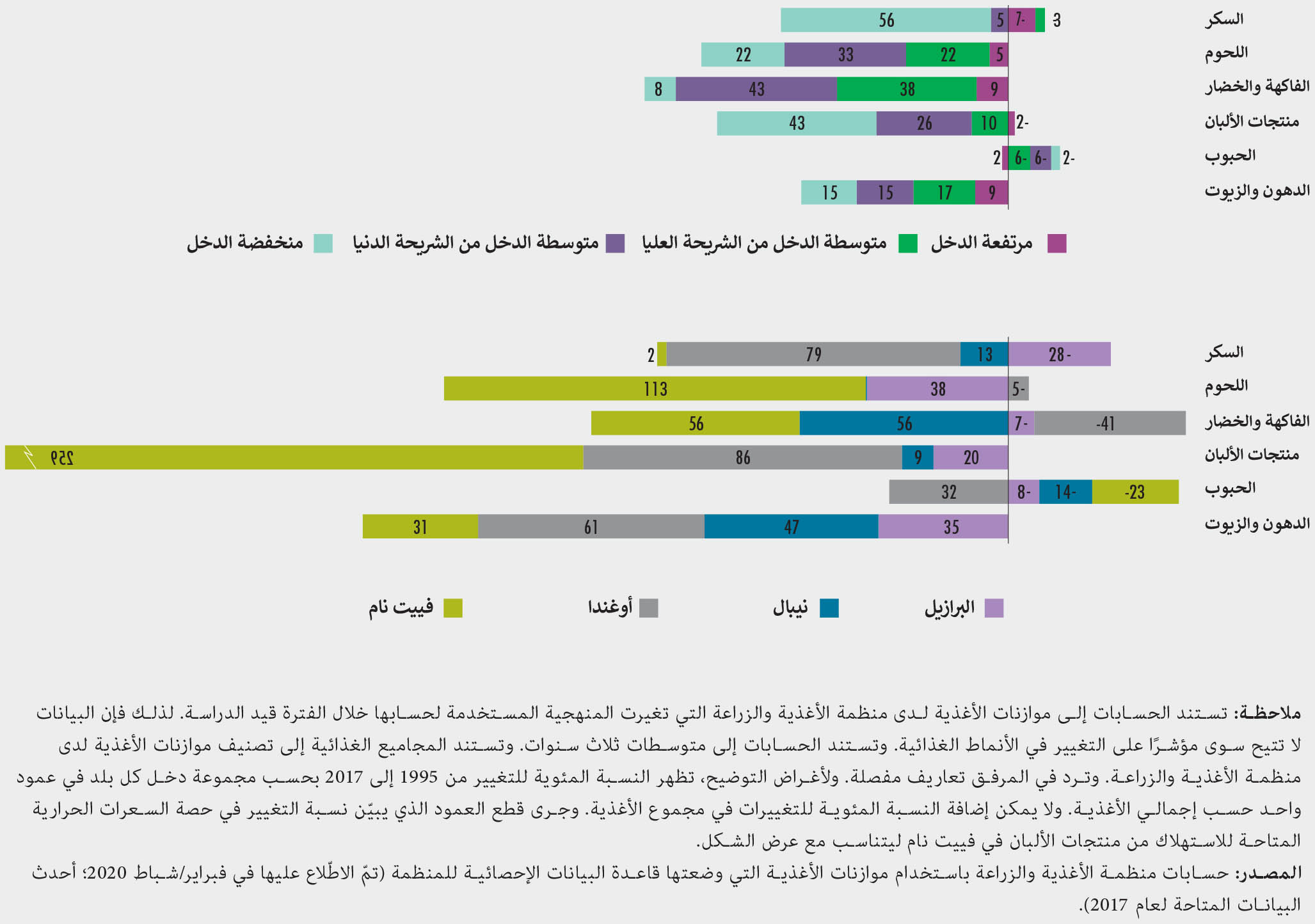 8.1 ديناميات الدخل والنمو في استهلاك الأغذية (مع تصنيف البلدان ضمن مجموعات بحسب مستوى الدخل)