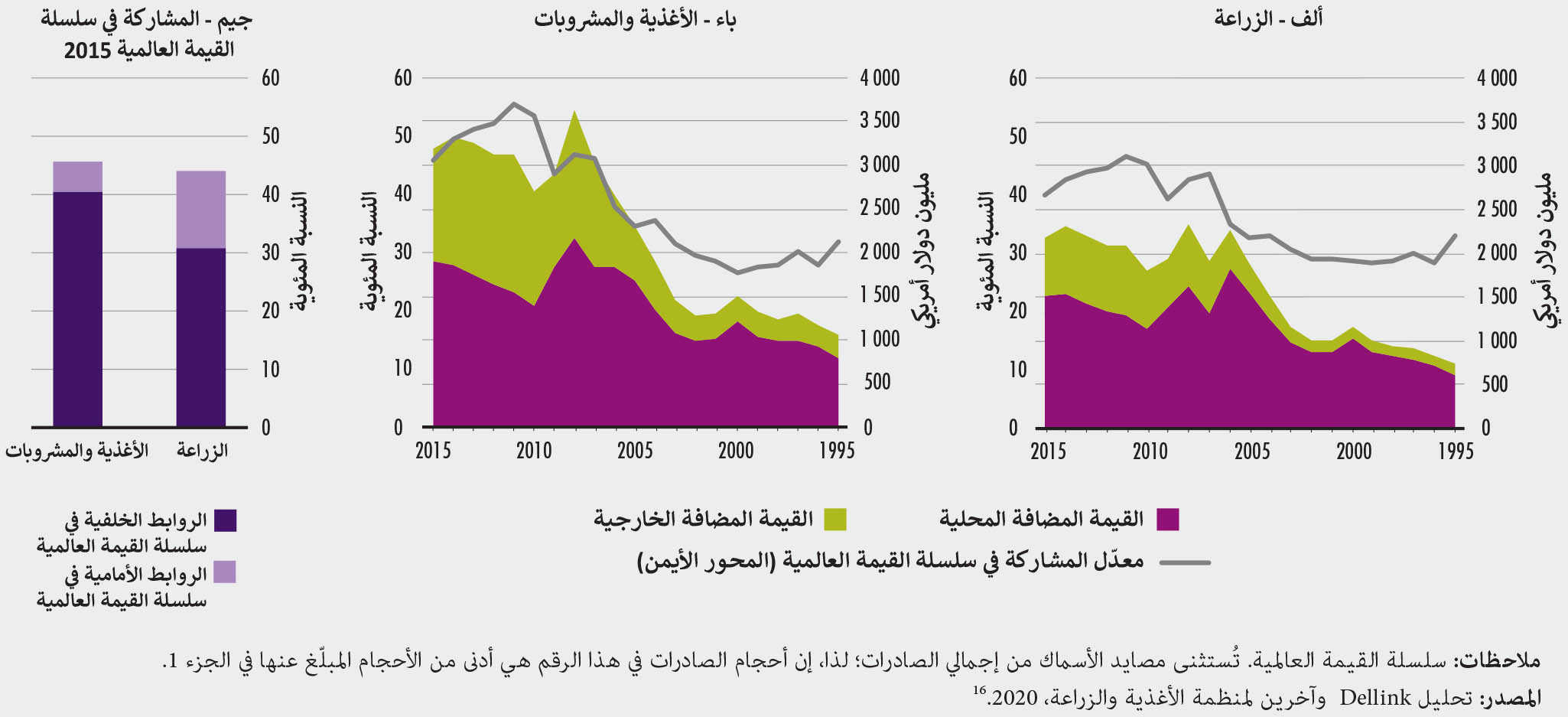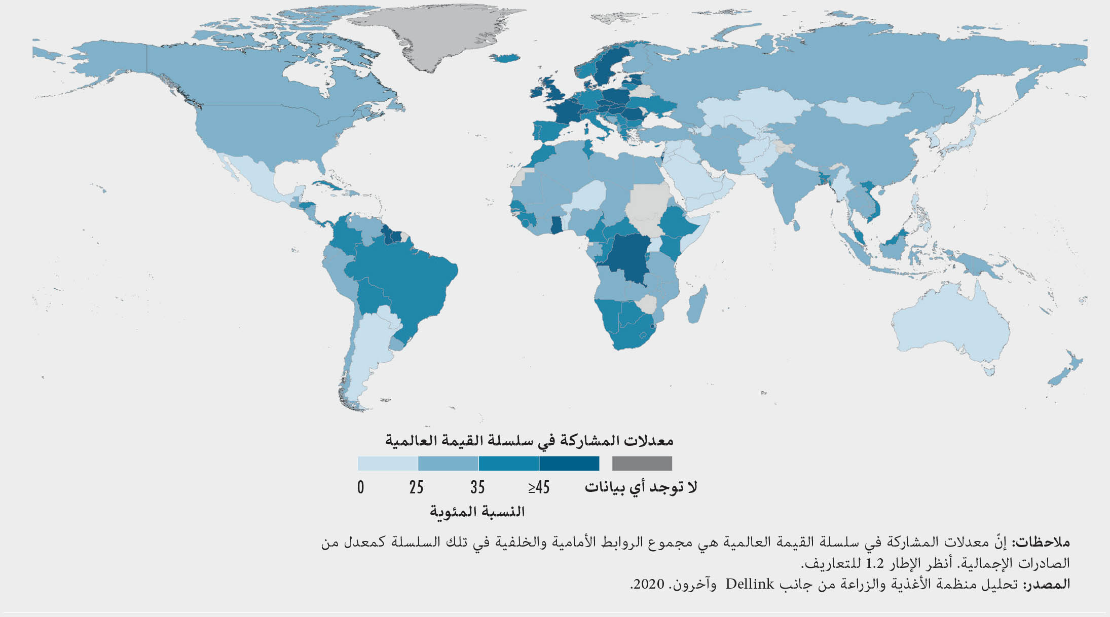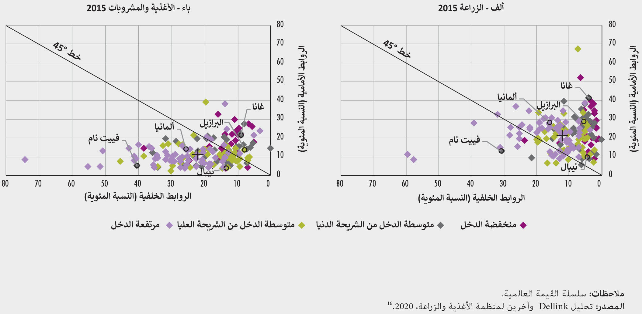2.2 معدلات المشاركة في سلسلة القيمة العالمية في قطاع الزراعة عام 2015