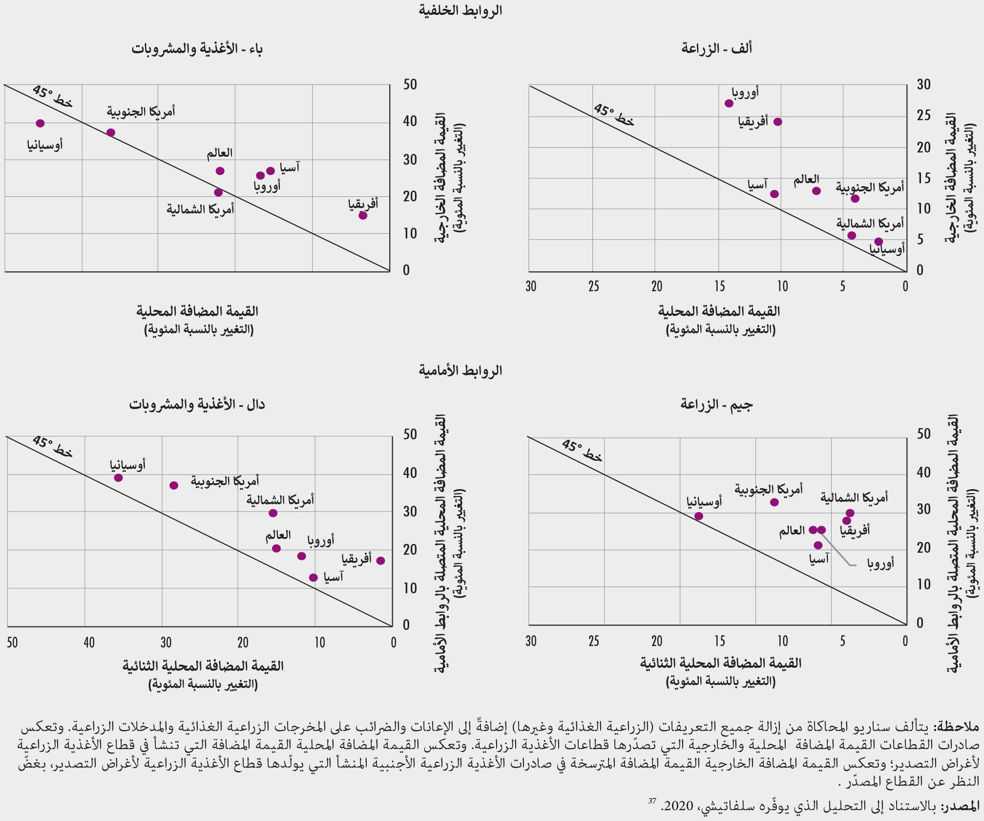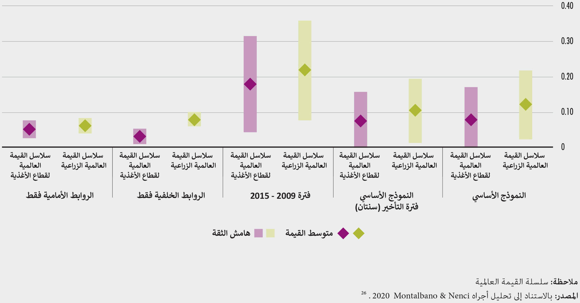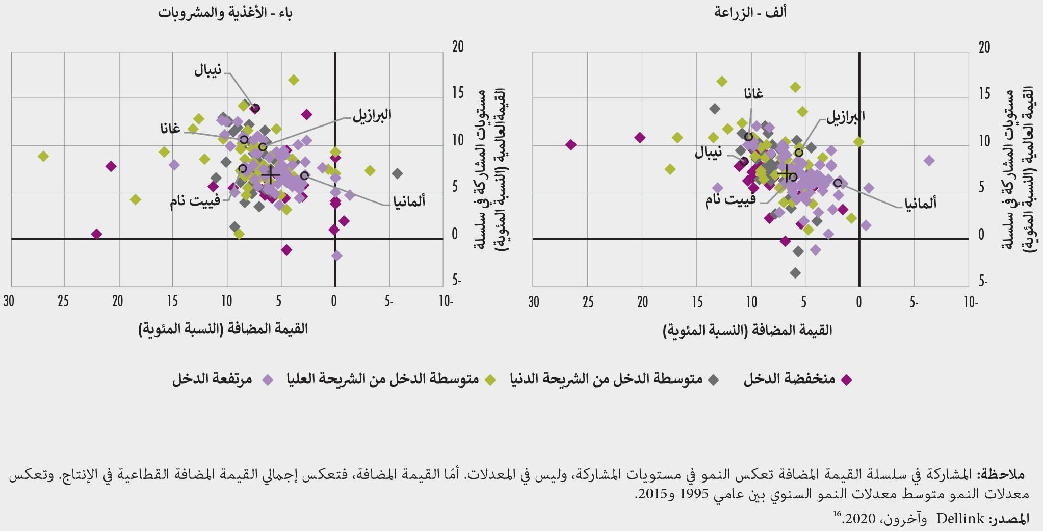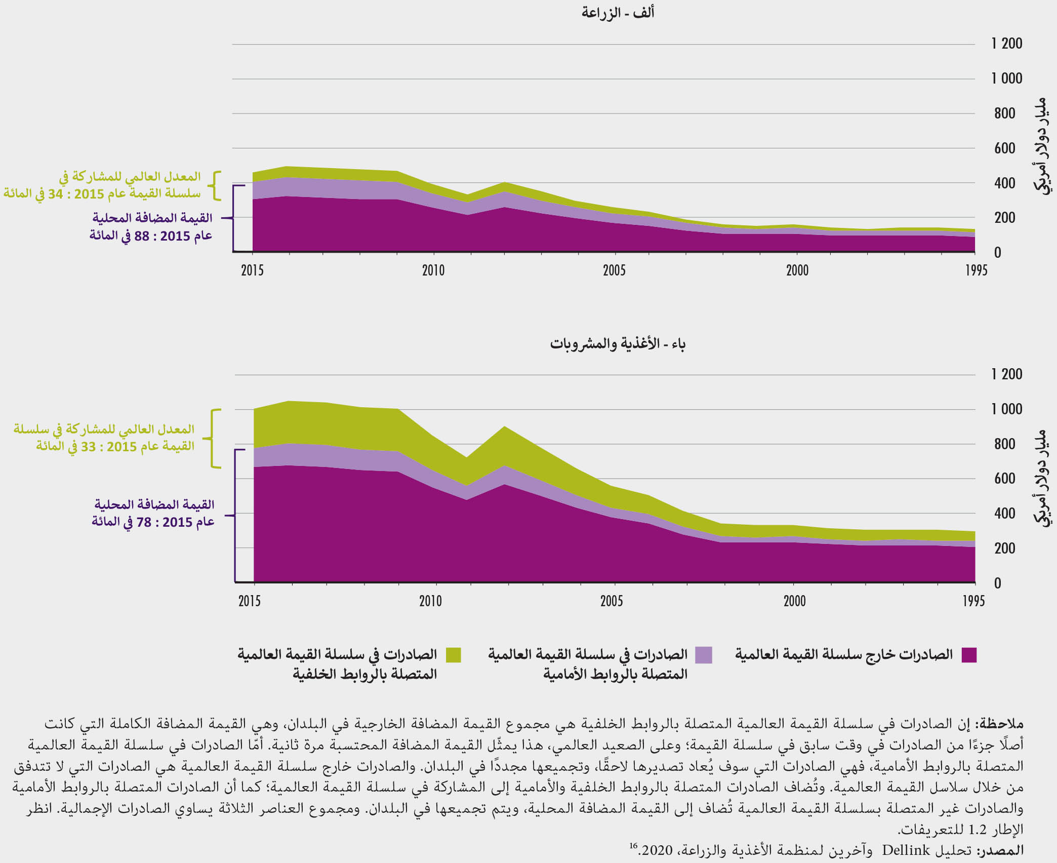 2.2 معدلات المشاركة في سلسلة القيمة العالمية في قطاع الزراعة عام 2015