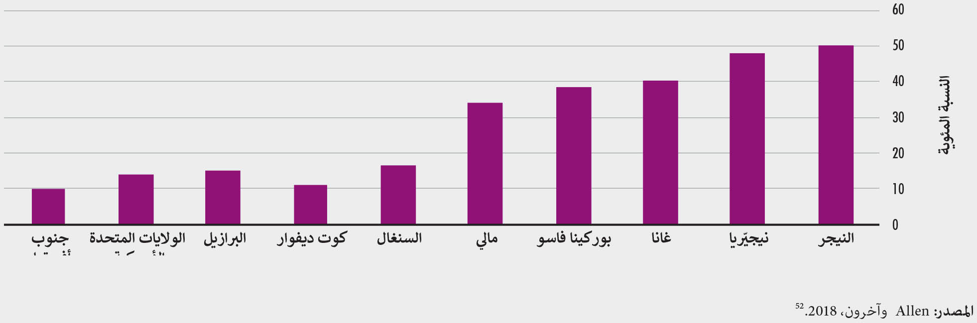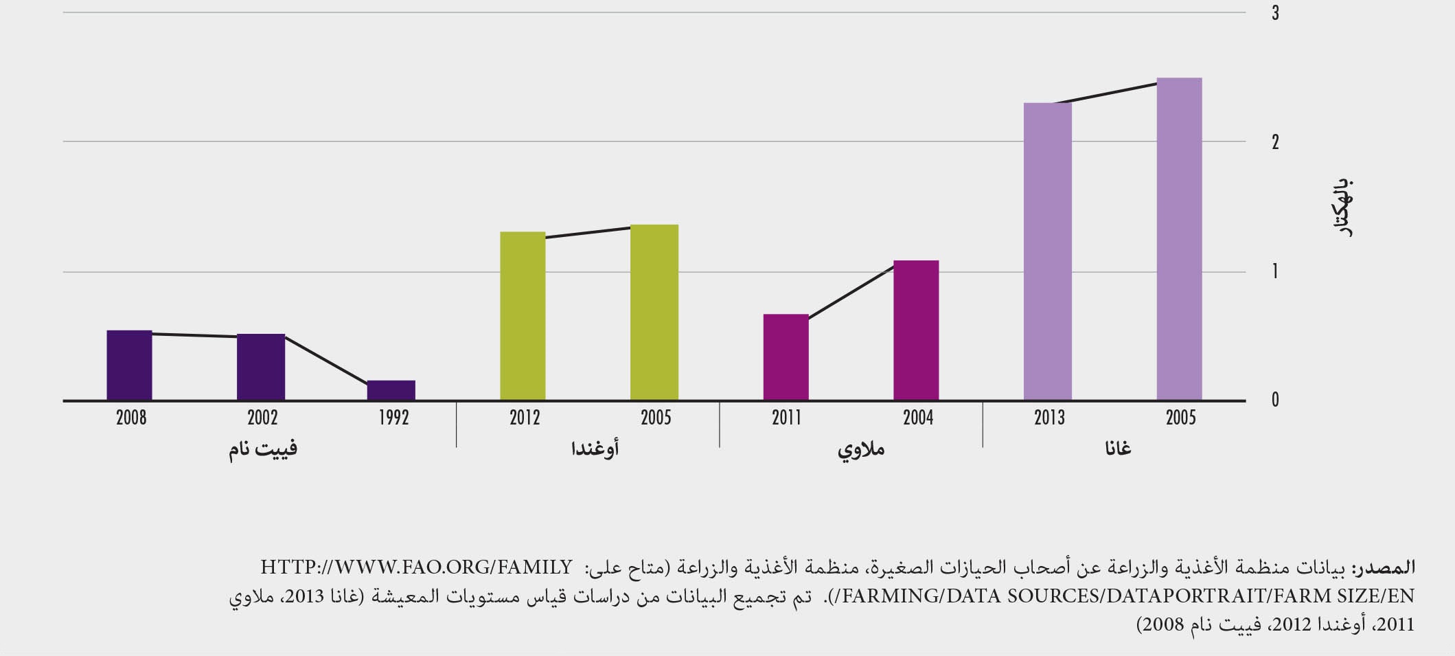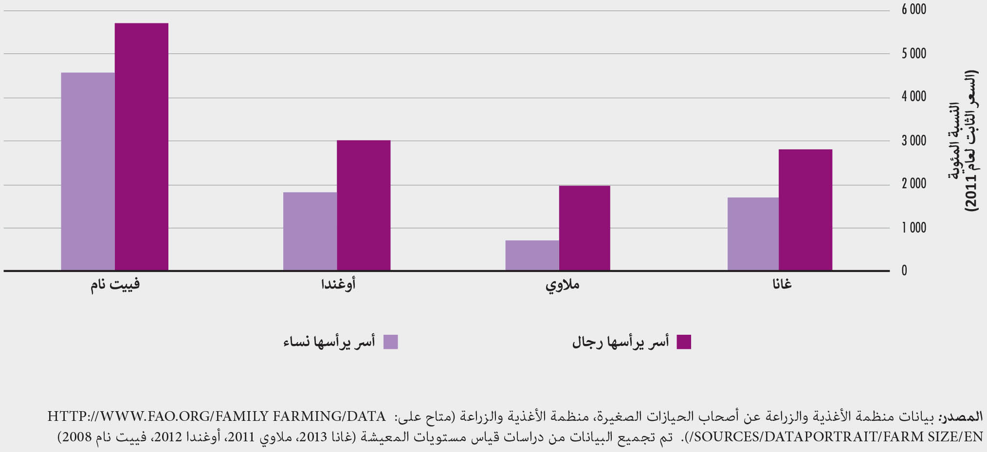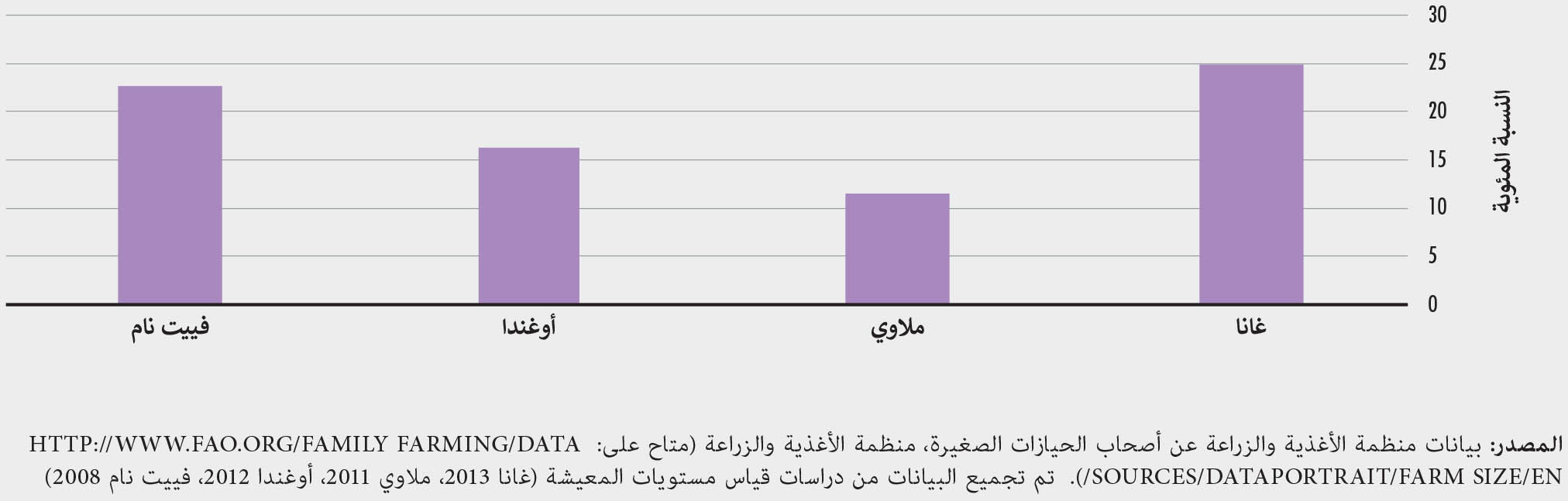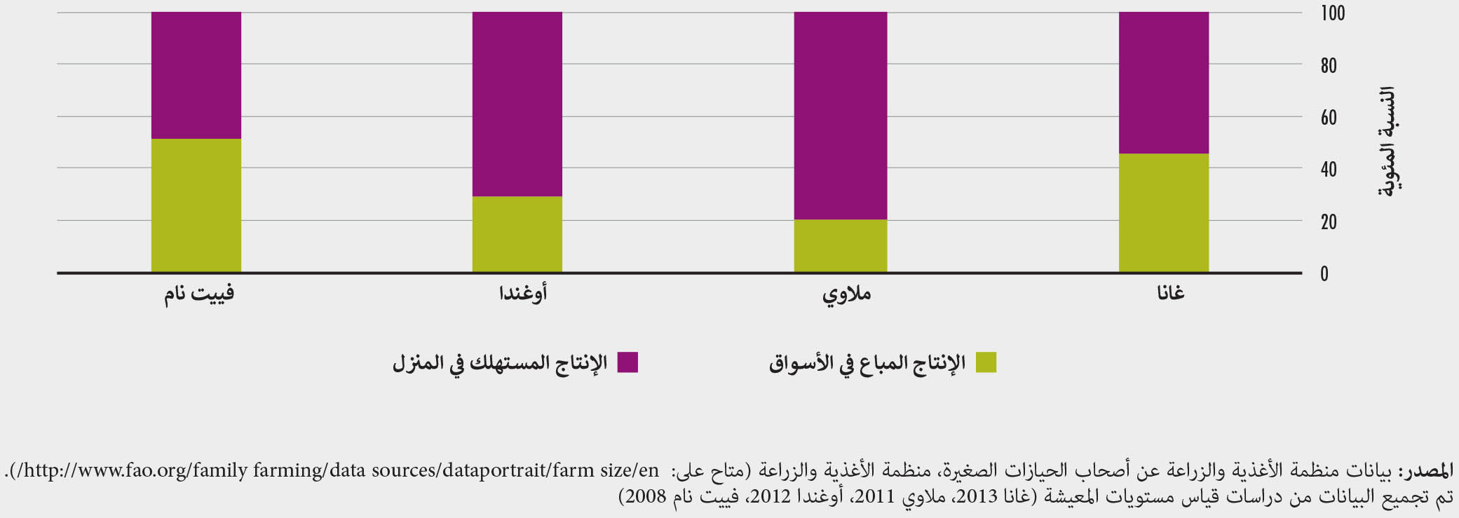 2.3 المشاركة في السوق: متوسط حصة الإنتاج الأسري المباع في الأسواق في غانا وملاوي وأوغندا وفييت نام