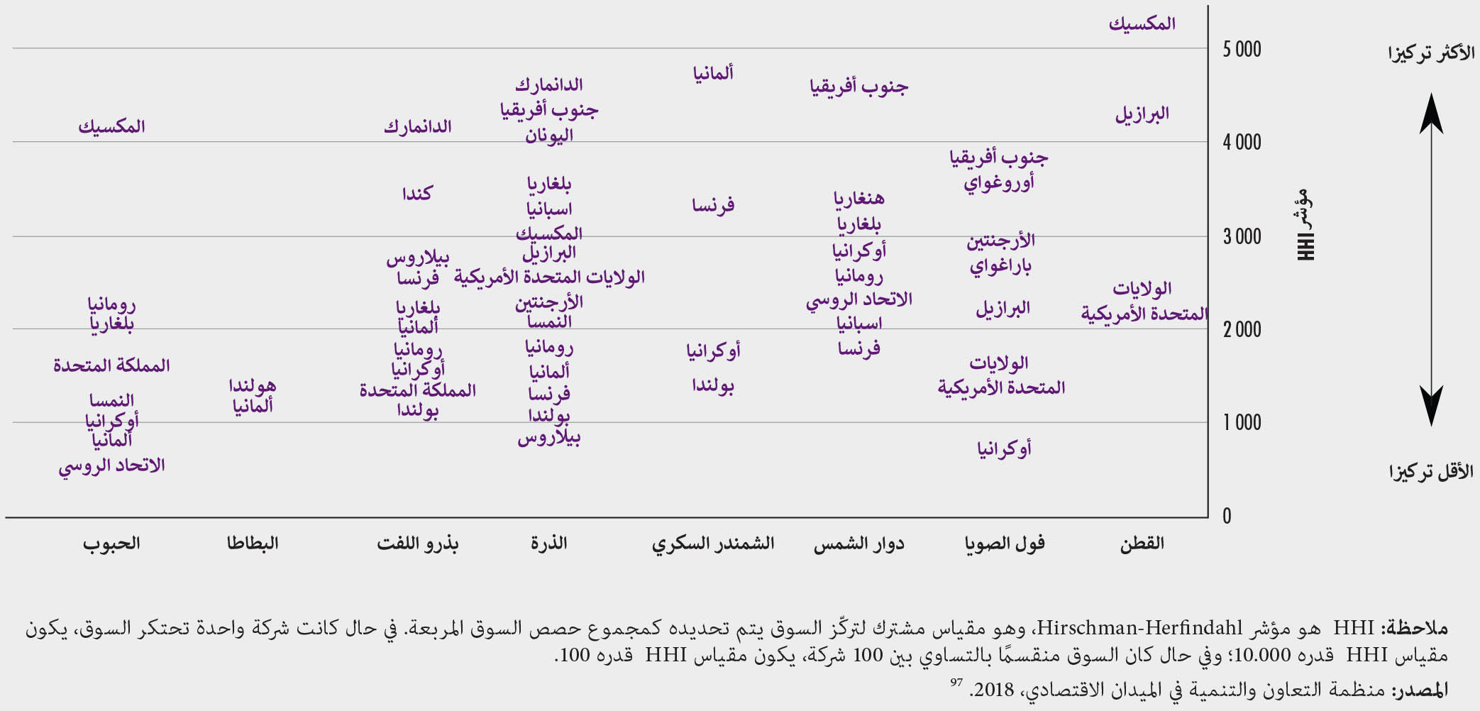 13.2 اختلاف درجة تركّز سوق البذور حسب المحصول والإقليم