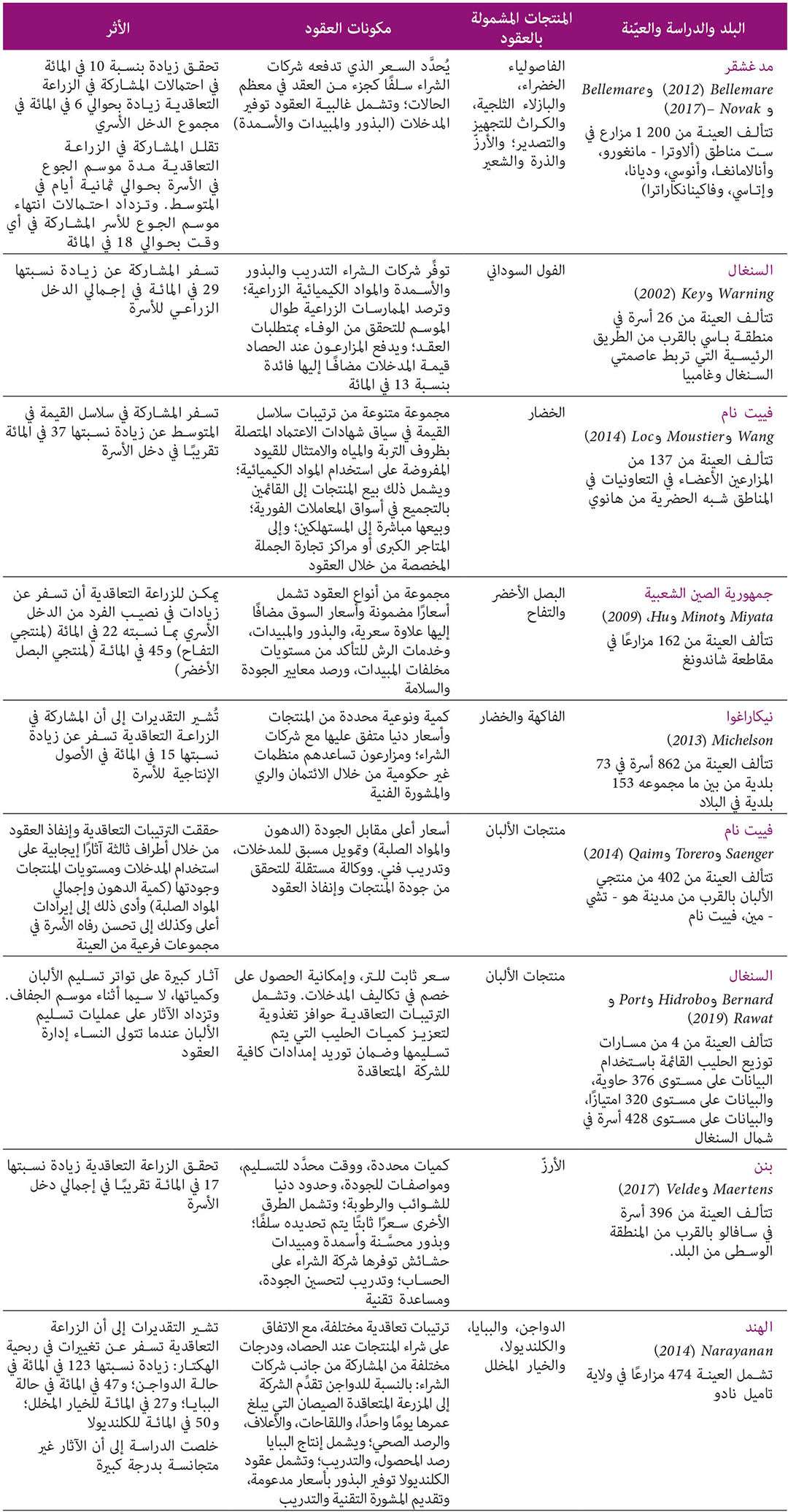 1.3 دراسات الزراعة التعاقدية التي استعرضها هذا التقرير