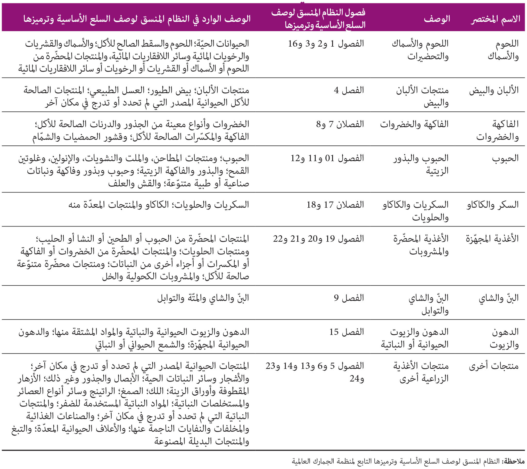 ألف.1 تعاريف مجاميع الأغذية على النحو الوارد في الجزء الأول، التجارة بحسب مجاميع الأغذية
