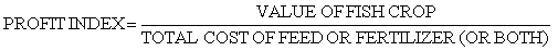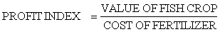 PROFIT INDEX VALUE OF FISH CROP PROFIT INDEX COST OF FERTILIZER